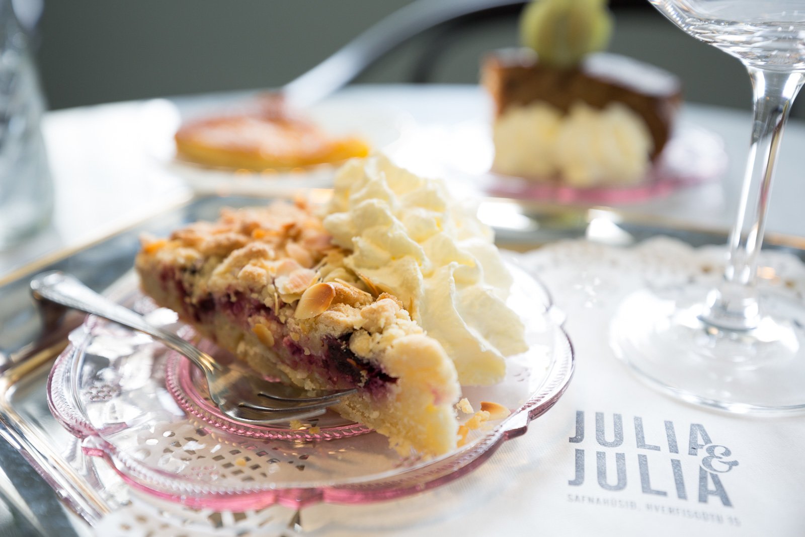 Follow Julia & Julia on Facebook. Wednesdays are special offer “bubbly days”, and on Saturdays, cake and bubbly are on offer for 1450 ISK.