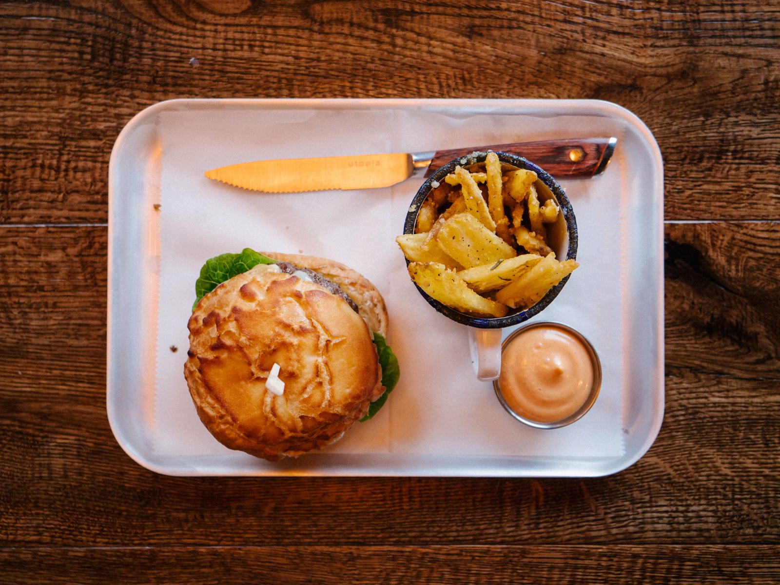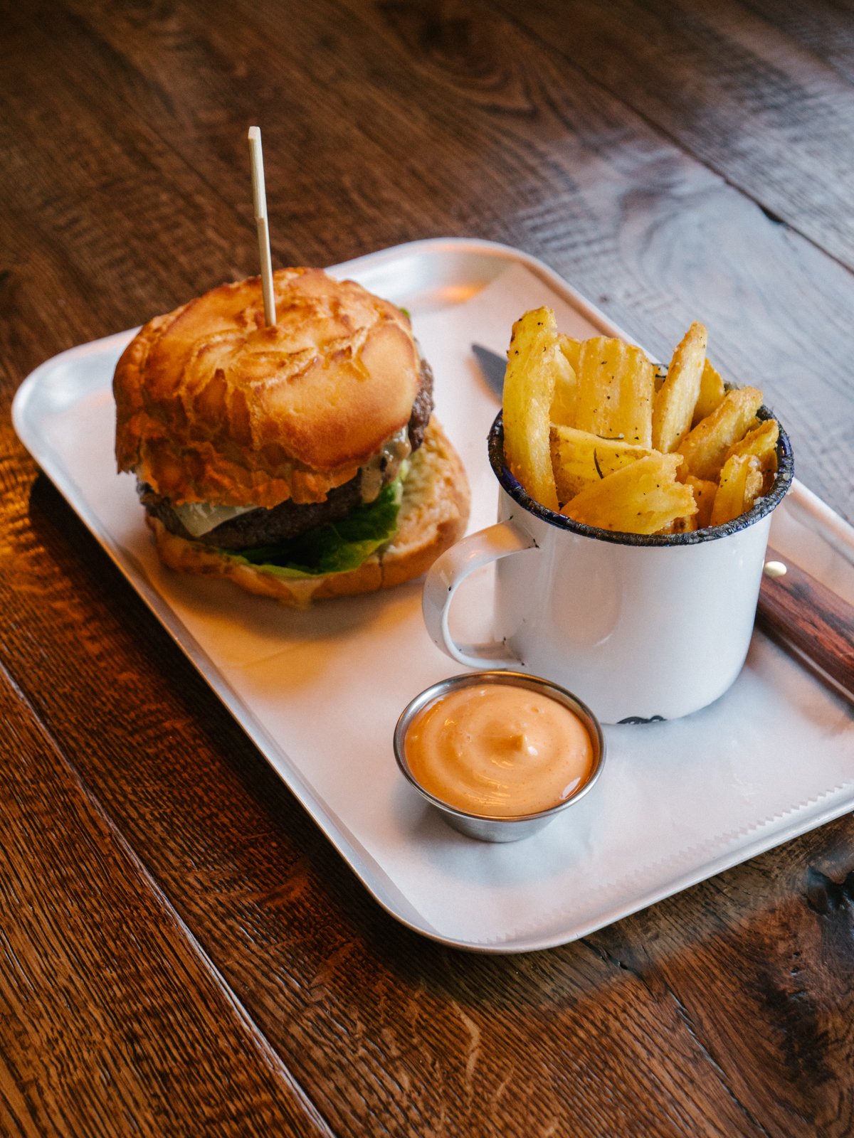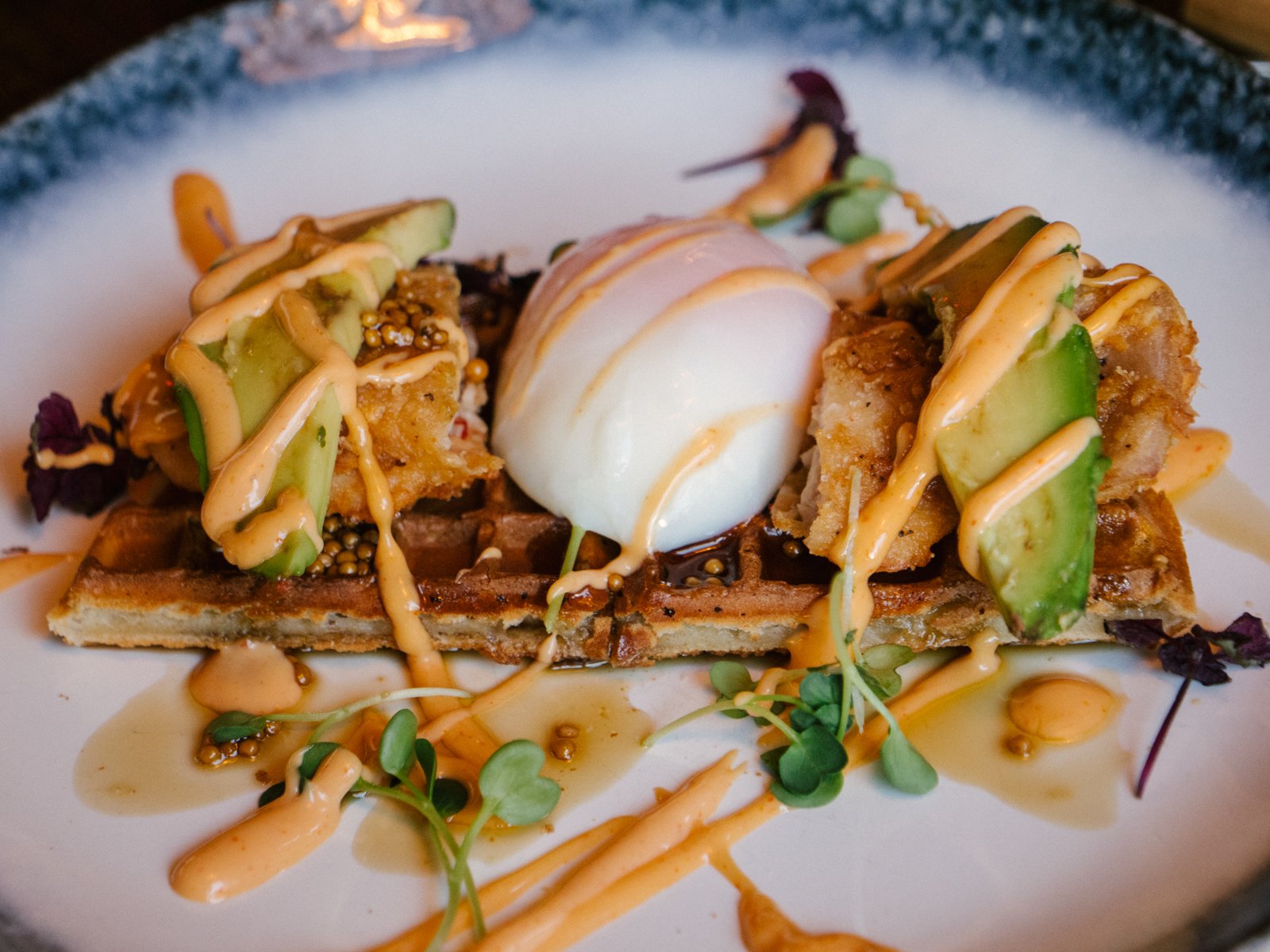 And that’s just the starters. There are several burgers options, such as the buffalo chicken burger with blue cheese and crispy baby gem lettuce, and a perfect, medium-rare dry-aged beef burger in a crunchy bun. The other mains are just as enticing: particularly, the on-point chicken and waffles with a thin, sweet waffle, an expertly poached egg, spicy deep-fried chicken, sliced avocado and chilli mayo. The quality was such that after our tasting session, we vowed to come back and try the duck, beets, mussels and steak mains another time.