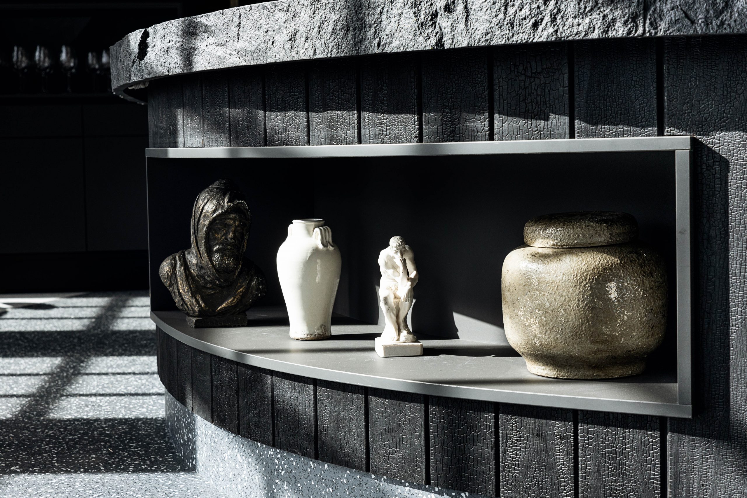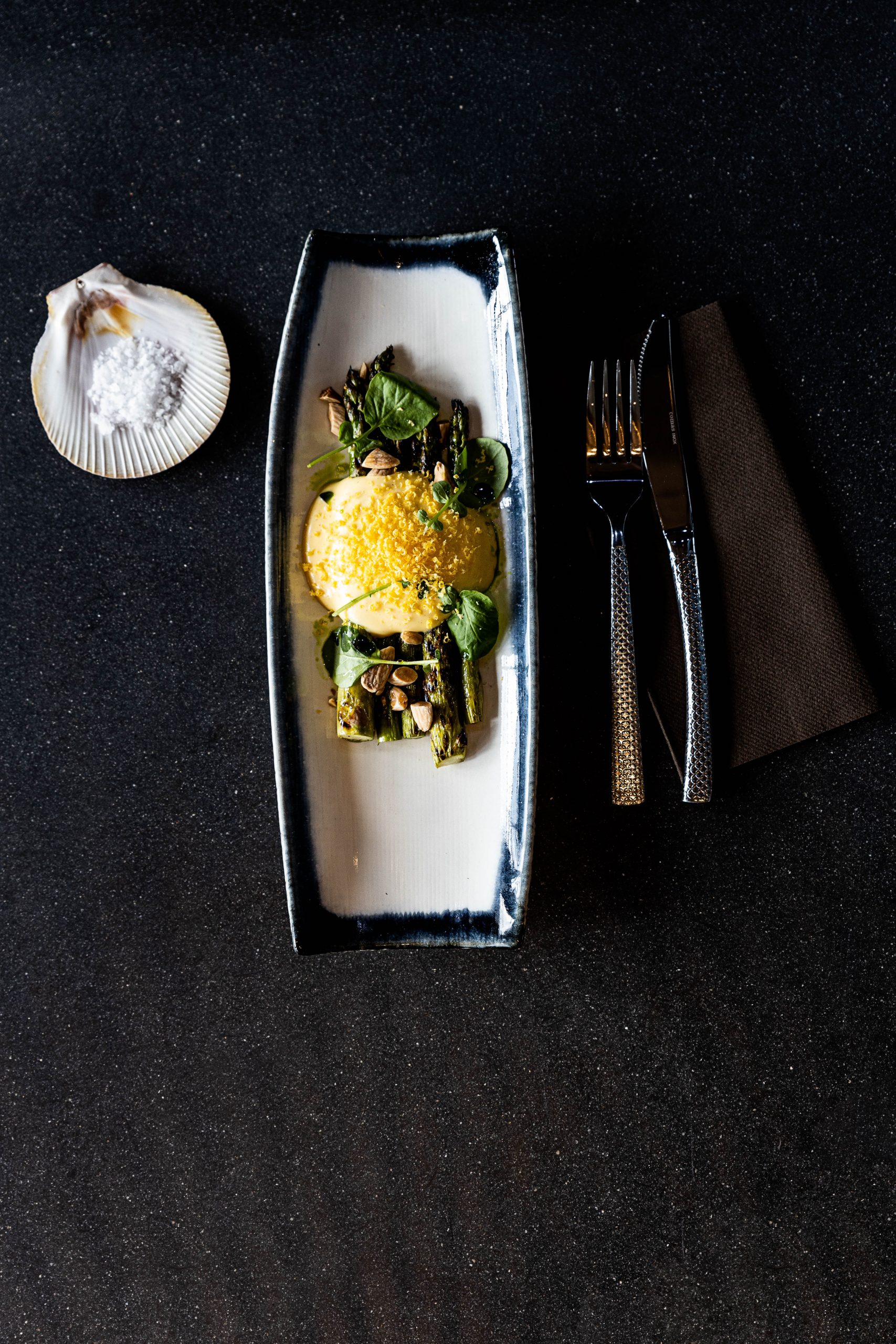Planning efforts in recent times have made room for mixed use development that I expect will serve the restaurant well. Hotel guests are expected to enjoy full breakfast services while local residents (300 apartments are underway in and around the area) can enjoy a lunch menu distinct from its dinner offerings (they’re a proofread away from being guest-ready, however). Architects Gláma Kím and interiors by I am Studio, London, have brought factory-cool forward with the chain mesh curtains floating above the kitchen and bar creating islands of focus.