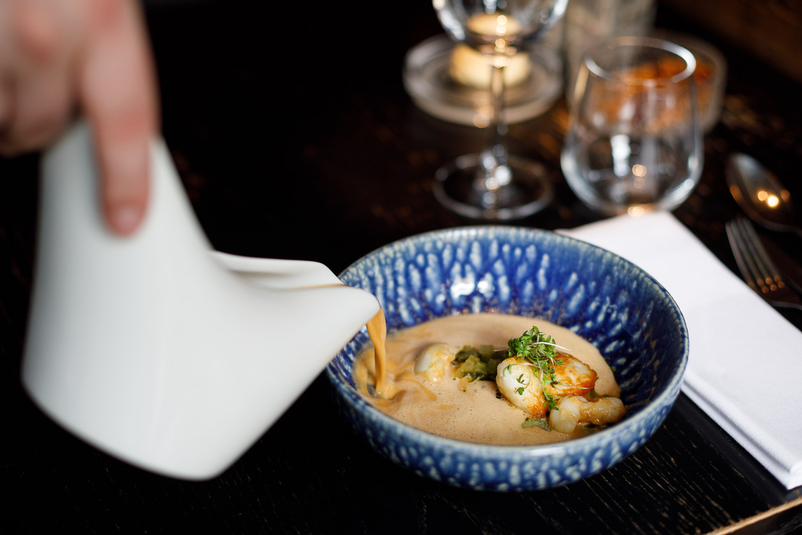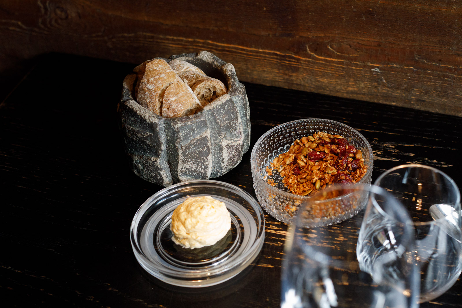Where foam has been villainized off menus, one even Fiskfelgið was accused of in the past, today they lean towards frozen flourishes in a successful play of textures and temperatures as proven by their take on graflax. Instead of thin slices of fish, the salmon is served as hefty ribbony wedges almost, piled over a celeriac slaw. A quenelle of Icelandic cucumber and wasabi ice cream is meant to be scooped up with the mussel broth, the bright lovage oil adding a touch of spring to the ensemble. Eaten together with the rye crumble, it is a fun, and original take on a treasured classic.
