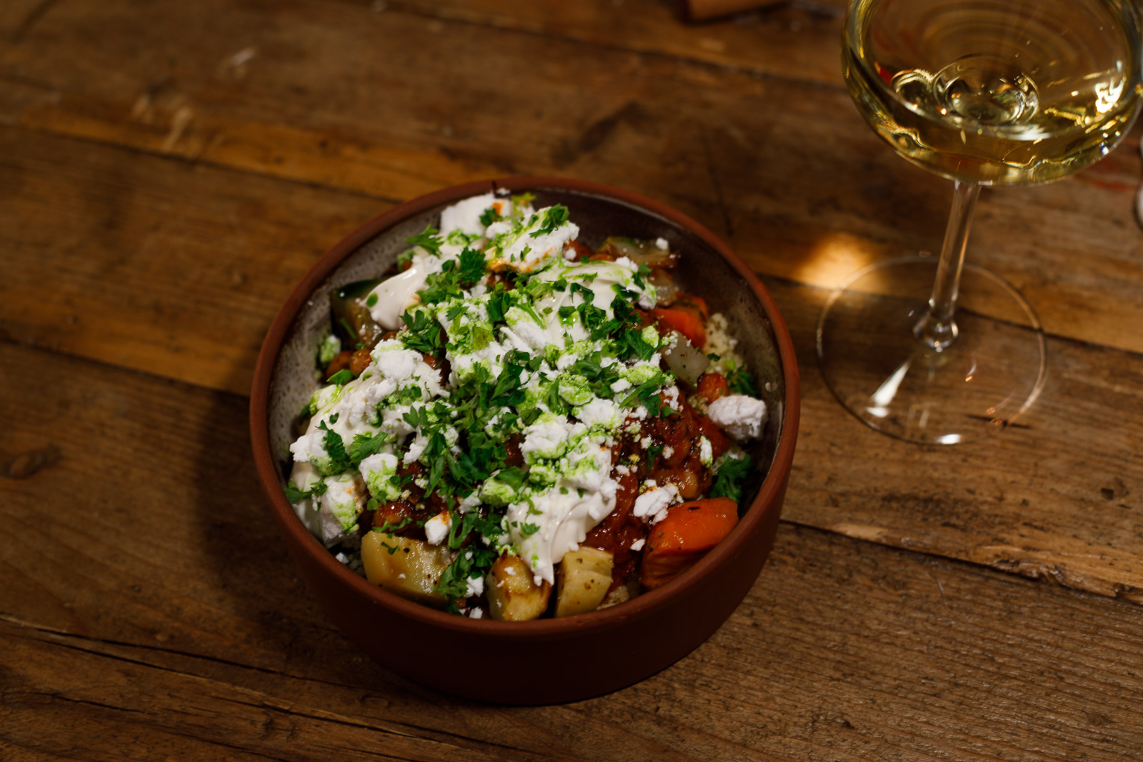 The Middle Eastern-Levant influence is strong on the menu, continuing with the shakshuka. This one borrows from seemingly everywhere and is made heartier with the addition of chickpeas. It also happens to be vegan – no, you don’t really miss the eggs.