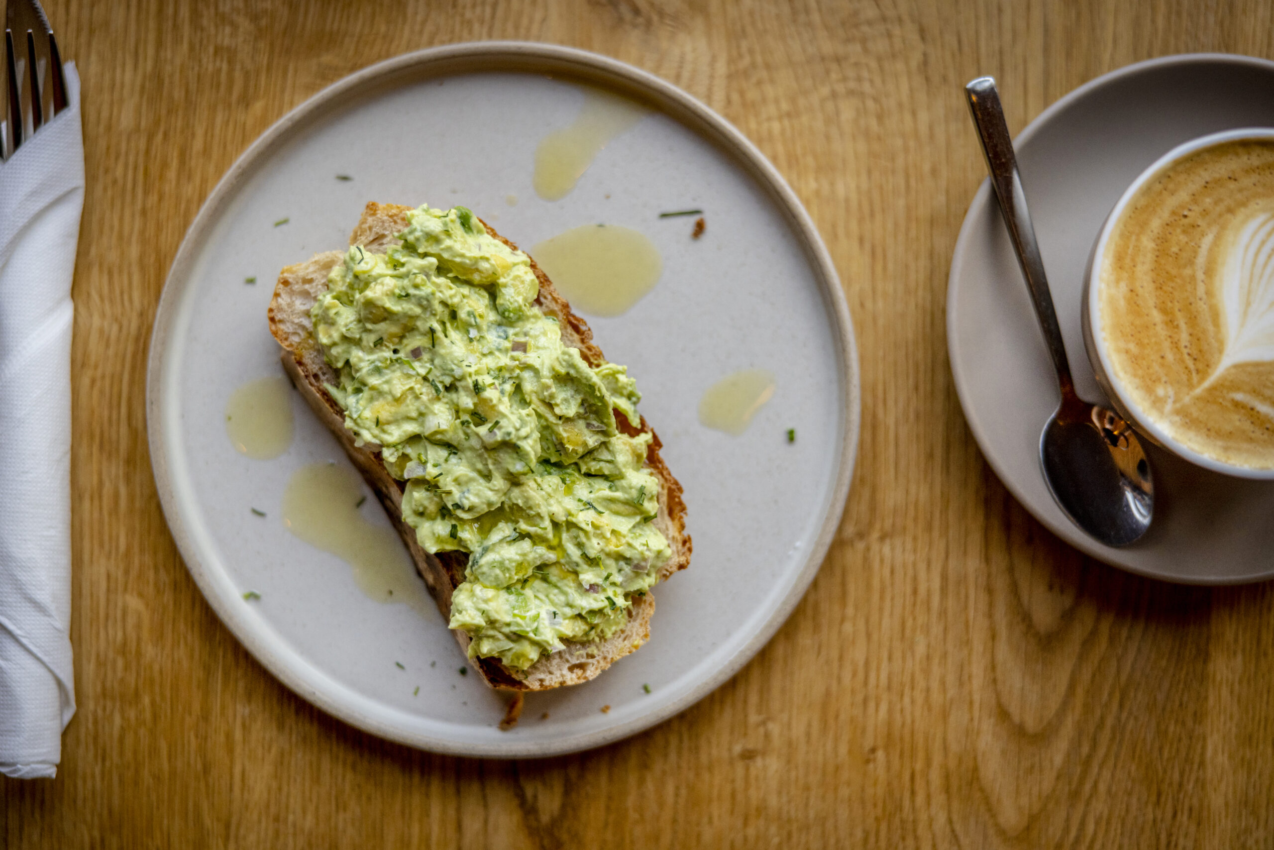 With brown-red brick floors and its concrete walls, walking into Ketil Kaffi instantly transports you somewhere far away. There is almost a sacred air around, the kind one finds in libraries. The simple menu here spans eggs multiple ways, alongside filling smoothies and an iconoclastic lemon cake that warrants a visit just for its pared down beauty. Tall and bare, it is crowned by a creamcheese stabilised crown of fluffy frosting. To sit by the window and quietly watch the world go by, slice by your side, is meditative indeed.