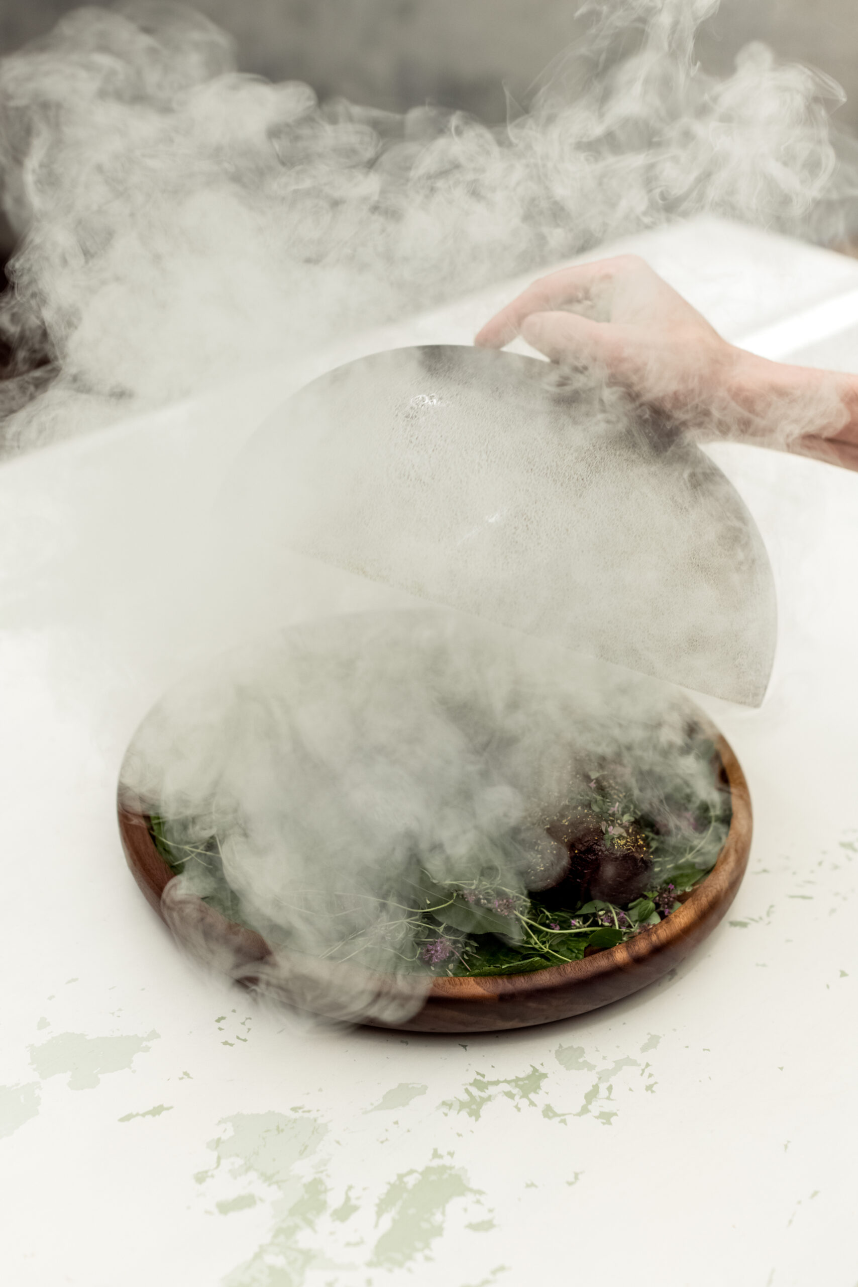 A tomato consomme with shrimp and habanero was so bright and fresh I held myself back from drinking every last drop directly from the bowl. The salmon was so delicately smoked it melted on the tongue. The lamb, smoked for two hours before resting beneath its cloche with arctic thyme and dried birch, parted at the sight of a knife. The dessert incorporating locally-grown wasabi was an herbaceous and not-too-sweet bridge away from the savoury courses and toward the chocolate cake and toffee that ended the meal.