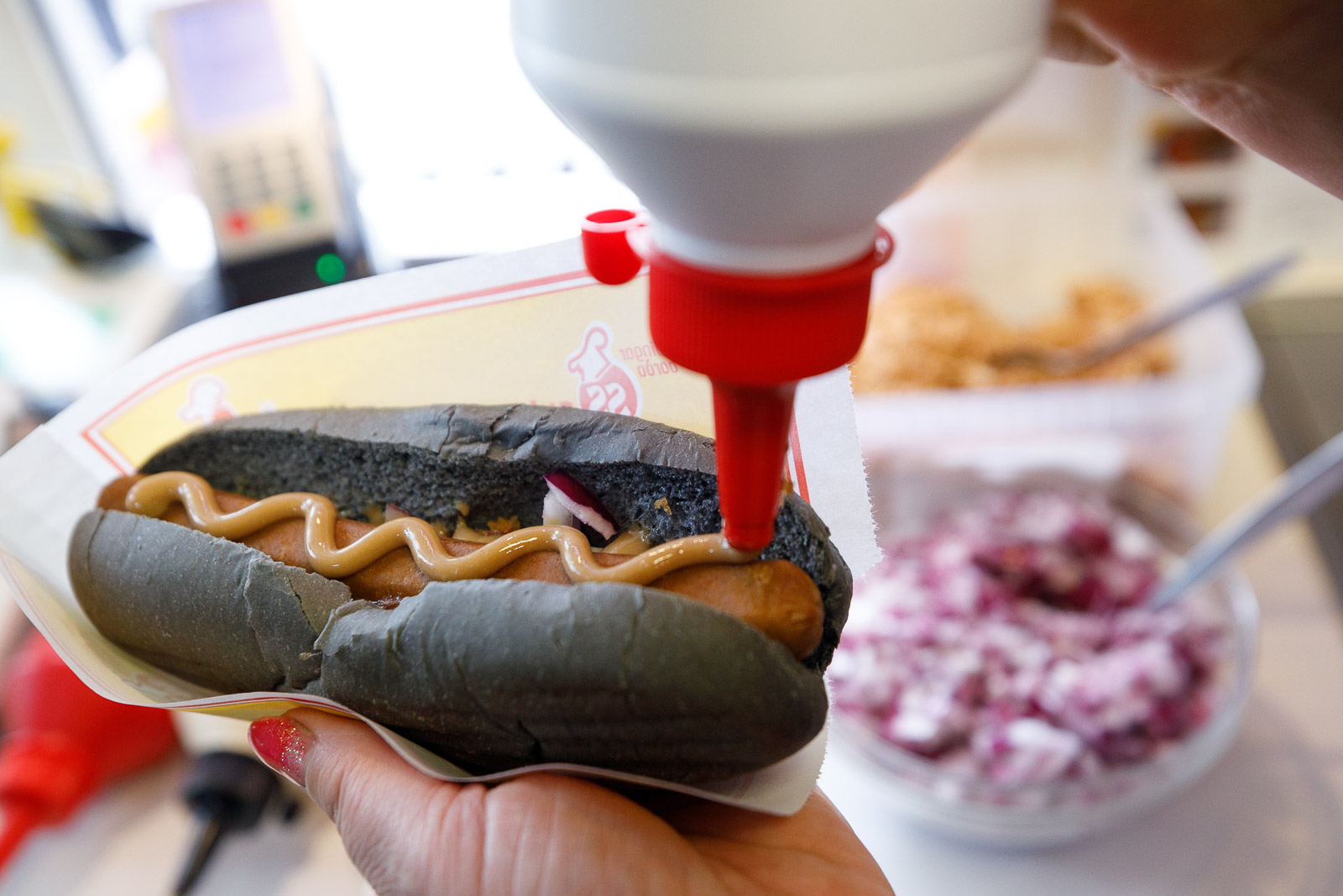 The tuna hot dog stayed on the menu, but 100% vegan options were added. In addition to classic hot dogs (plant-based sausage, onion, ketchup and mustard), Pylsuvagninn á Akureyri offers a vegan hot dog with pickles, a summer-only offer with fresh vegetables, a popular after-party bite with baked beans, a hot dog with pickled red cabbage and two options that come in a black bun — the vegan black sheepdog and the vegan volcanic dog with onions, sriracha, jalapenos, ketchup and mustard.