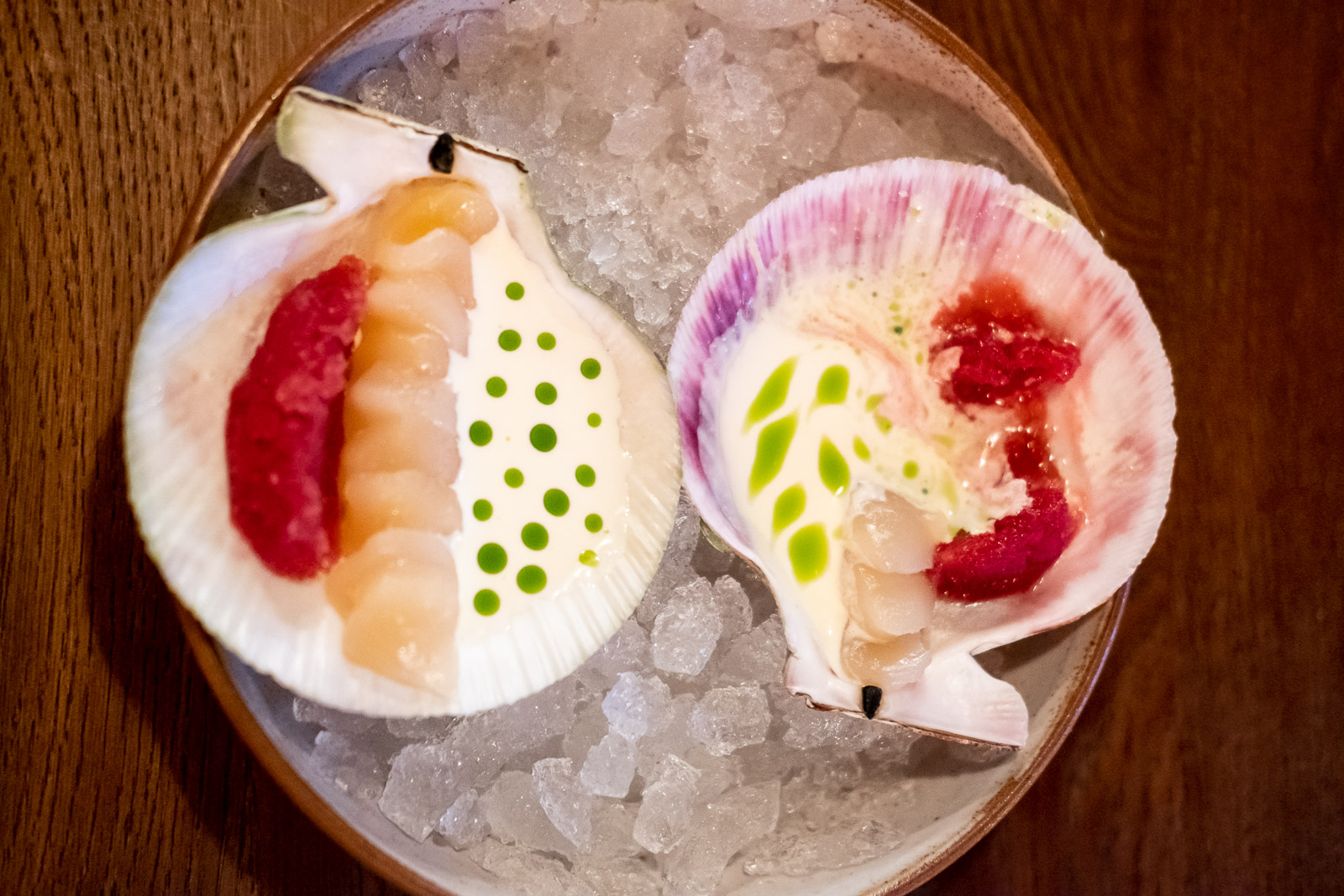 The renovation also extends to the menu, which has been reworked by head chef Thomas Lorentzen. Regulars will recognise many of the staples, delivered here with new twists. The raw scallops (3.950 ISK) are served on the half shell in a dish of ice, with redcurrant granita on one side and creamy horseradish sauce on the other. The horseradish is festooned with neat green dots of dill oil that change shape as soon as they’re touched, the spoon becoming a paintbrush that warps the shell’s graphically presented contents with every bite.