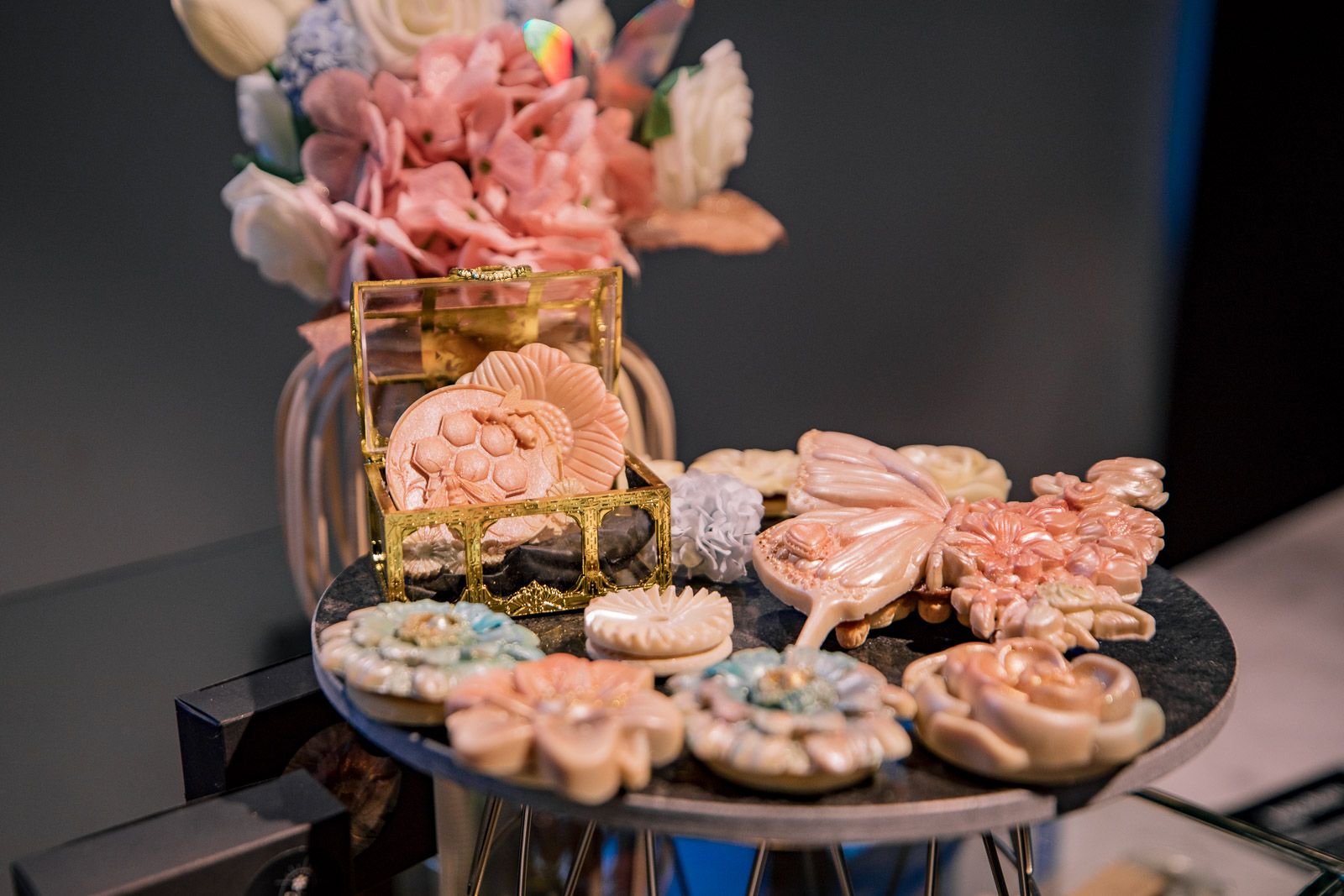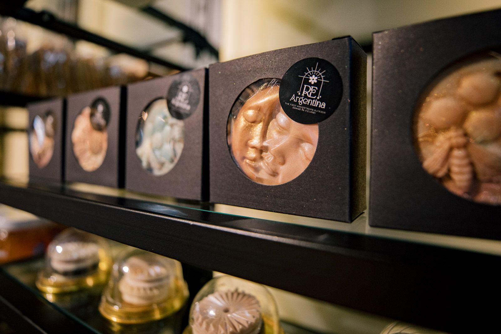 Carla was working at Omnom when her foray into alfajores began and after just three months, she was receiving enough orders to quit and focus on her side-hustle. “But the amazing thing,” she remembers fondly, “is that they gave me 12 kilograms of chocolate to help me out, like a kickstart.” With Omnom’s gift and new silicon molds, she began designing Re’s signature alfajores with their glossy, iridescent white chocolate tops in detailed, elegant shapes of flowers, suns and moons. “That was my idea: because I’m a fashion designer, I tried to combine art and something sweet with the traditions of my country.”