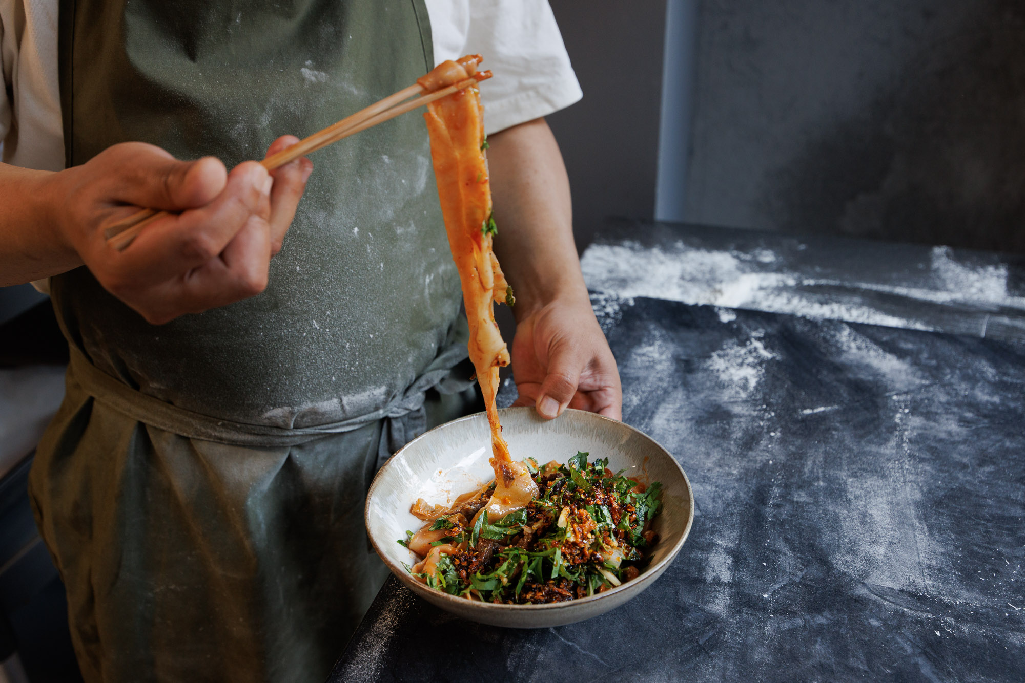 The process of creating Biang Reykjavík involved a lot of travelling around Europe, the US, and Asia. They first tried biangbiang noodles on one of these journeys, somewhere in the middle of Europe — and the idea stuck. “We couldn’t stop thinking about it,” says Mateusz. “We went to Paris, Germany, London, and New York to try this concept.” In fact, Xi’an Famous Foods was one such site of research. “I liked it, but I think their food is a bit too oily for the Icelandic market,” he says. “So we tried to find the balance between respecting the traditions, and being a bit modern.”