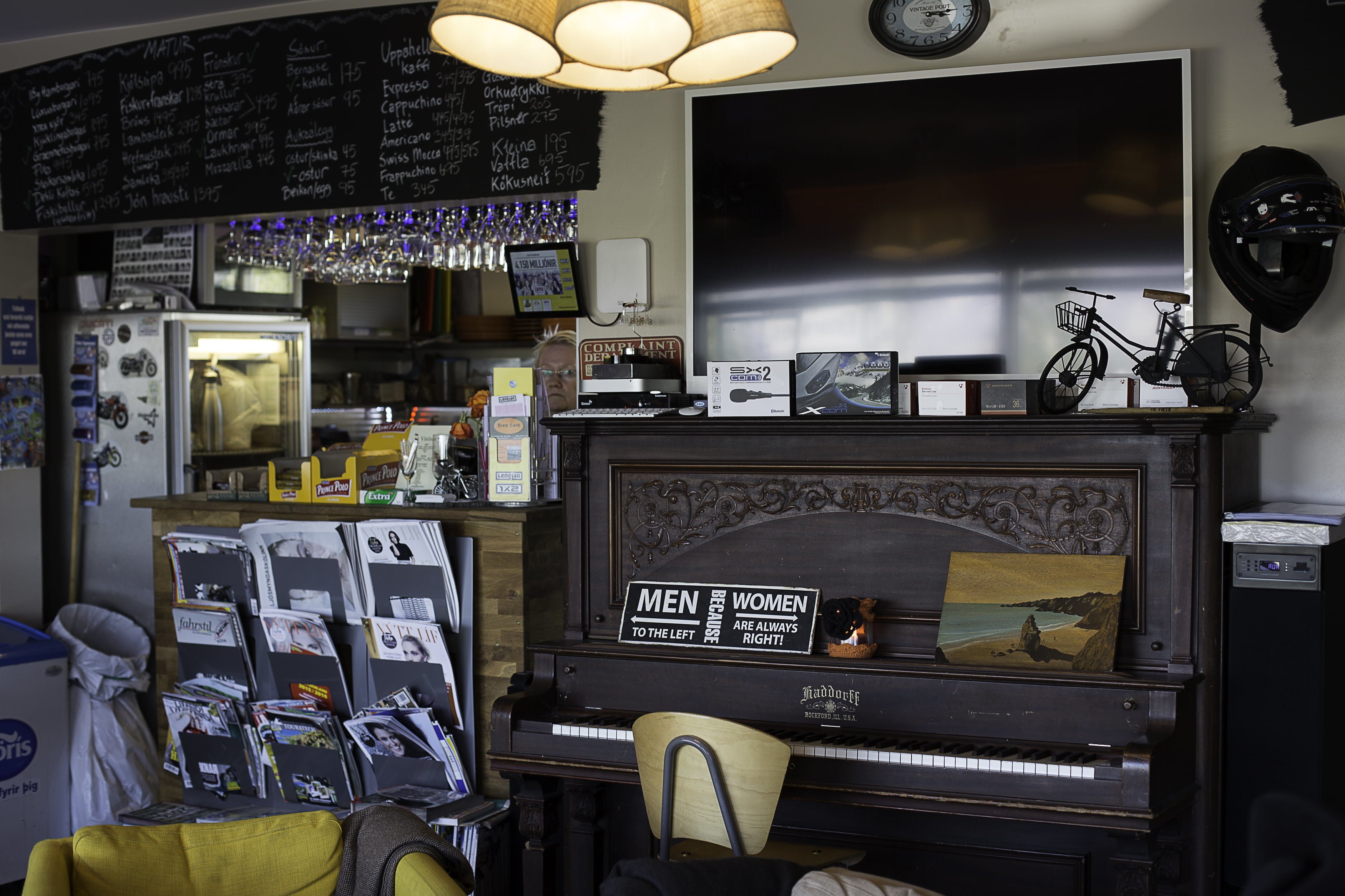 - Uncle Óli’s rec room: the décor’s a little nutty and there’s a bunch of random stuff piled in one corner