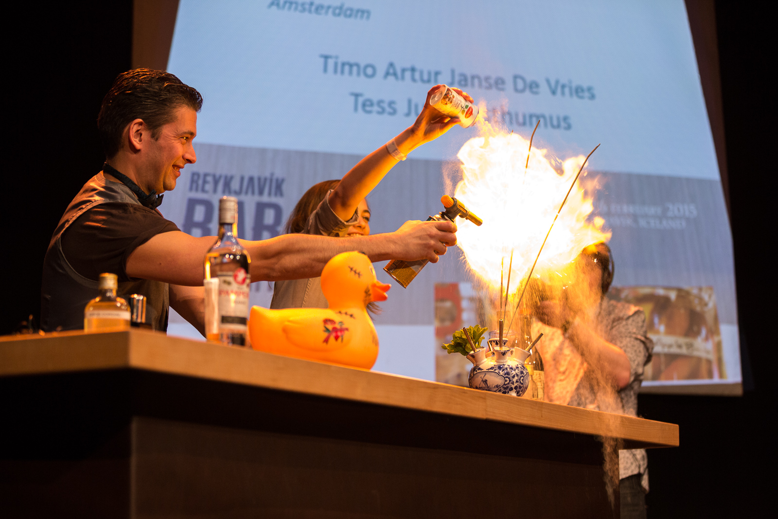 The judging panel consisted of Stanislav Vadrna Brand, brand ambassador at Nikka whisky; Dan Priseman, brand ambassador at Four Roses; Ólafur Örn Ólafsson, founder of Foss distillery and numerous restaurants; and Saga Garðarsdóttir a comedian and actress. Curiously enough, Saga hadn’t been a drinker until that week, but I guess three days of non-stop cocktails is as good of a way as any to get inducted into insobriety.