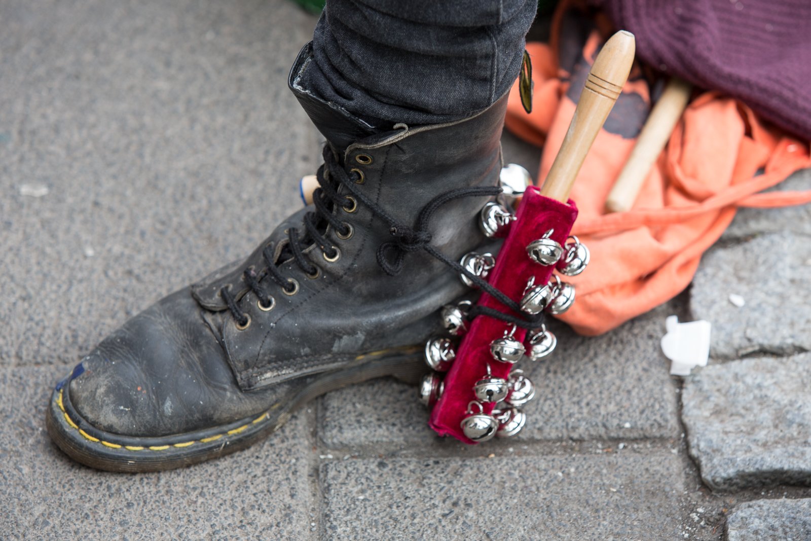 “I gotta wait twenty-one more minutes,” says Paddy Hanna, checking the time on his phone. The Belfast-born street percussion artist has been temporarily silenced, after setting up shop earlier today on Austurstræti, across from Hressó. As it turns out, his spot was also in the line of fire of a local businessman’s wrath. “There’s a guy from these buildings who’s saying I was driving the twenty people working on the floor crazy,” Paddy continues. “He was very quick to let me know he could call the police.”