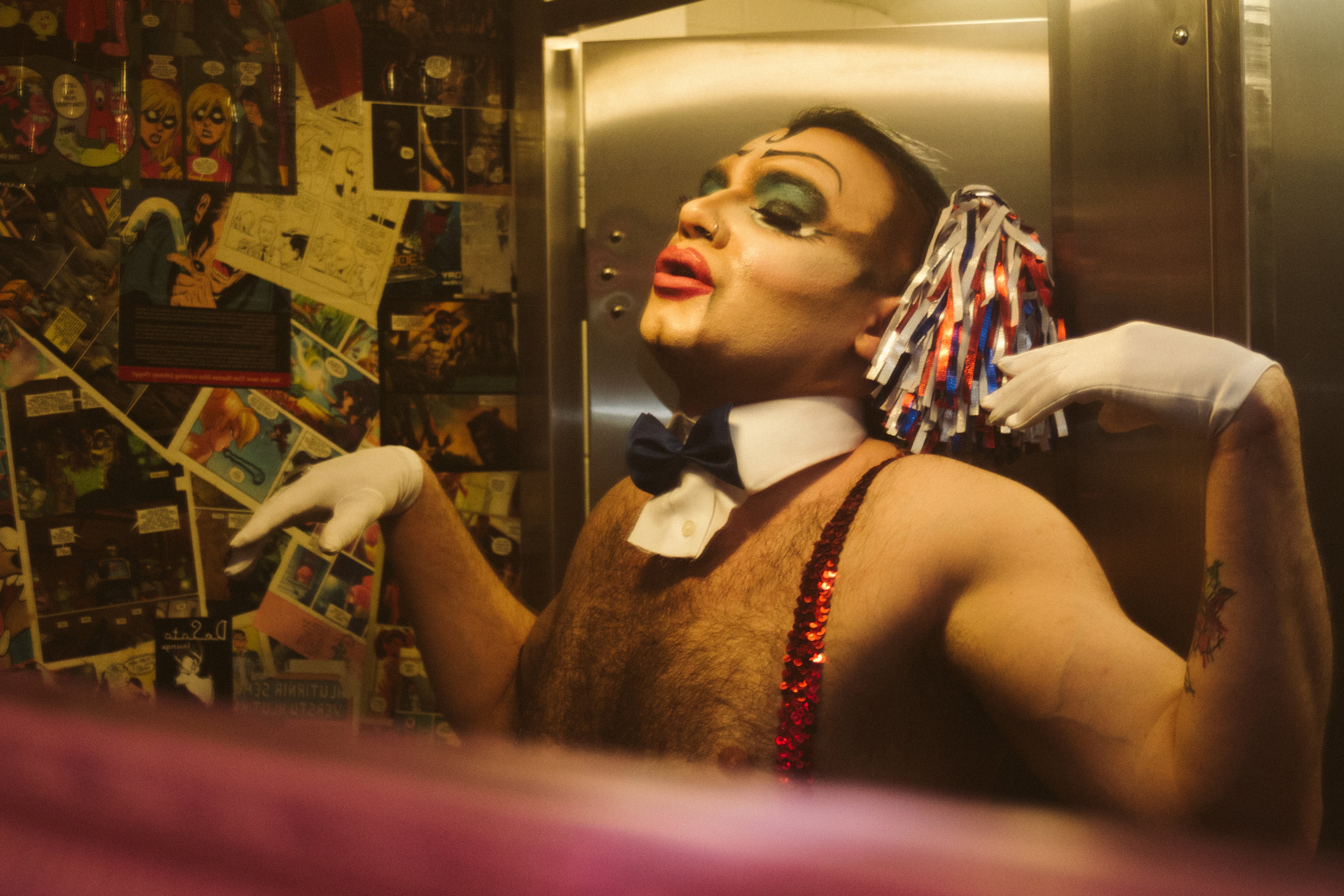 Turner Strait is a drag king who’s a regular on the Drag-Súgur scene, and particularly enjoys the diversity of styles and aesthetics. “One of the new queens, Deff Starr, is defining herself as a clown queen right now,” says Turner. “It’s a family. It’s like, if you wanna be a pageant queen, be one; and if you wanna be trashy, be trashy! Just as long as your act is good.”