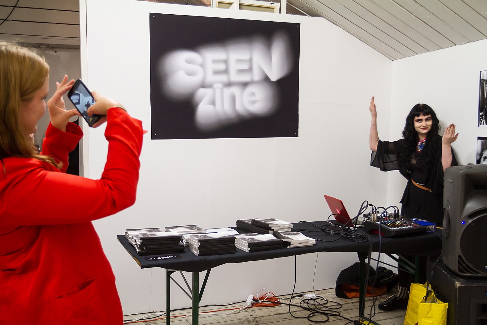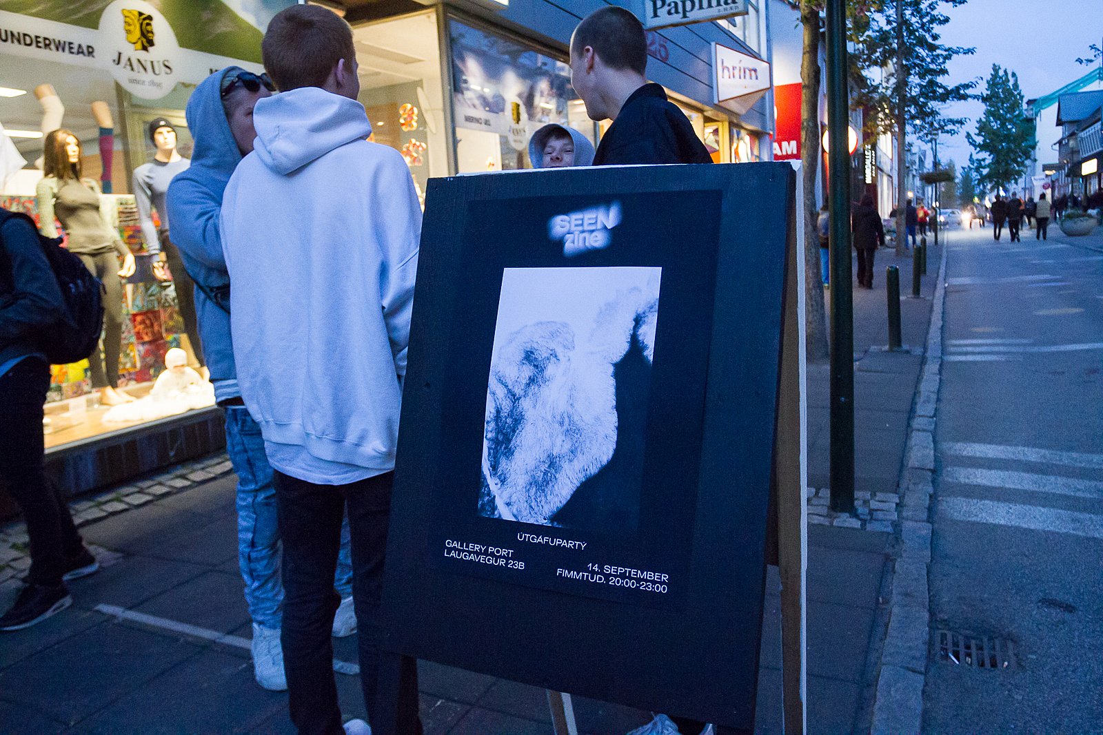 A new book was launched last night at Gallery Port by Seen Zine, edited by Anna Maggý & Júlía Tómasdóttir. A handsomely produced limited edition soft-back, the book is an eye-catching collection of multidisciplinary work by interesting young artists working in visual art, fashion, tattooing, photography, and more, and including work by Aron Frey, Alexander Hugo, Katrín Braga, Korkimon, Viðar Logi, Kjartan Hreins, Sigurður Ýmir & Margrét Landmark, amongst others. The launch was a roadblock event with the crowd spilling out into Laugavegur. We dropped by to take in the scene.