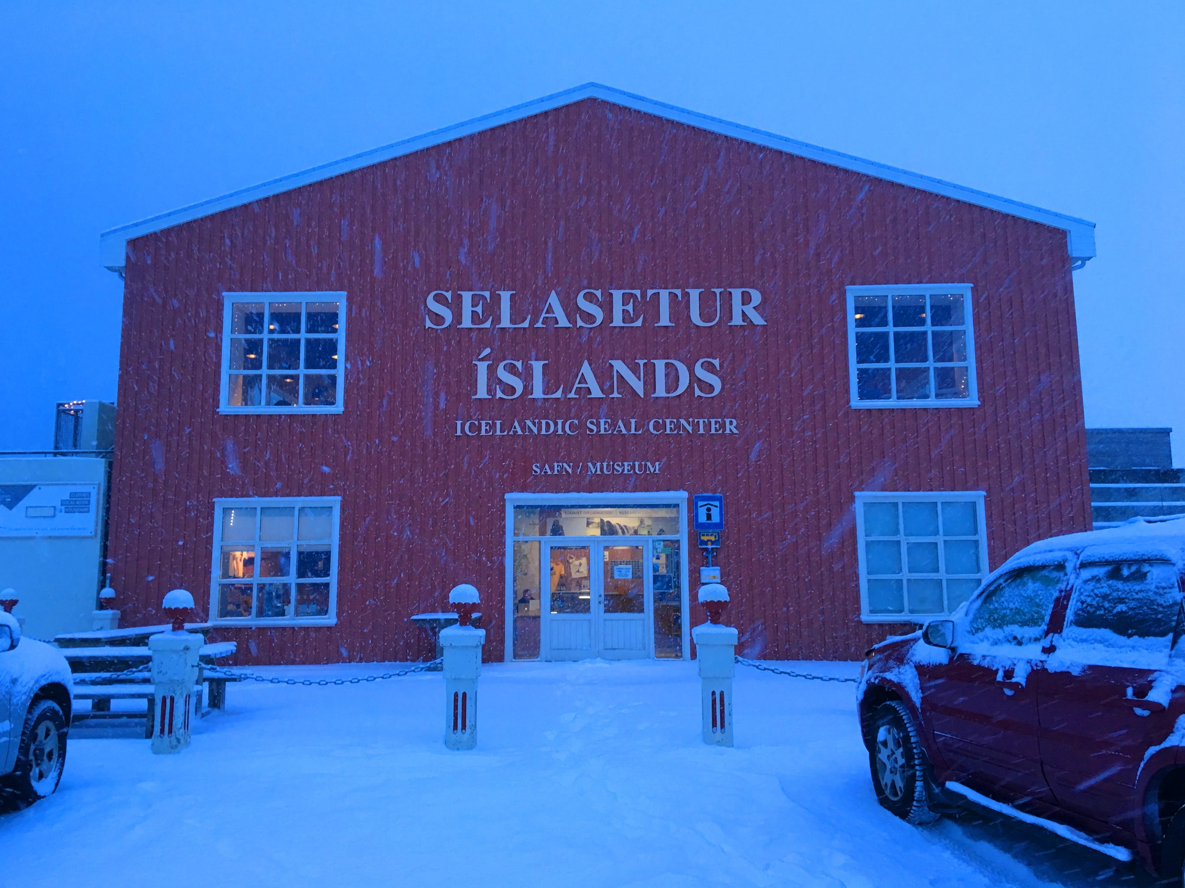 The dusk sky was a deep blue, striking against the fresh layer of snowfall, as I turned off the Ring Road towards the little harbour town of Hvammstangi. This was in the middle of that snowstorm that hit the Southeast and West a few weeks ago, and I had almost canceled my visit to the Seal Center to head straight back to Reykjavík. But the random nature of my appointment seemed like fate. I was in Akureyri getting a few recordings for the podcast—the only time I’ve planned to be north of Snæfellsnes before the summer—and just as I set out back to Reykjavík, I got a tweet from the head of the Seal Center, Sigurður, inviting me to come by and do an episode about their museum. “Excellent. How about in two hours?” I replied, silently thanking the scheduling Gods for how easy it is to connect with total strangers in Iceland (I often reach out to museums via Facebook since they are more likely to respond to that than an email).