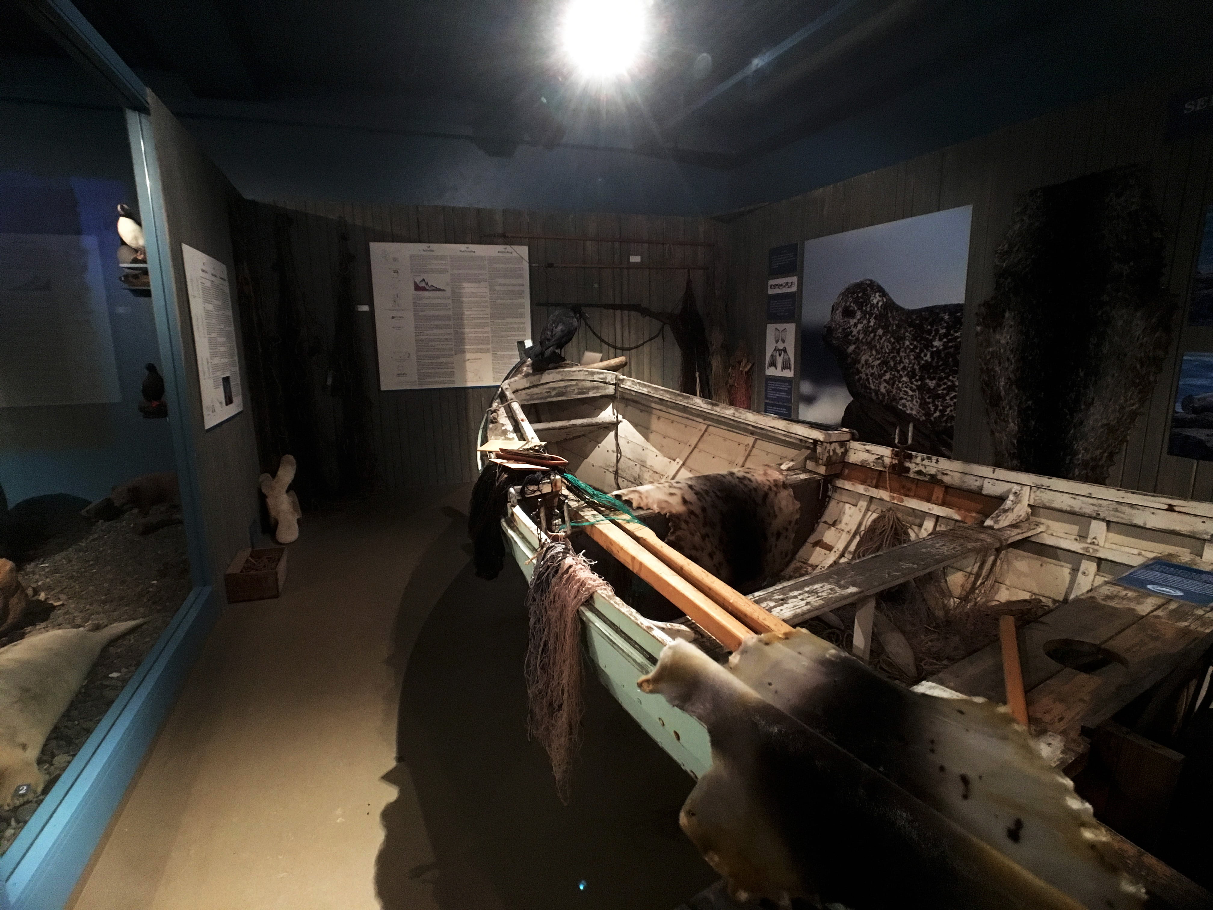 Inside the museum, the first thing that catches your eye is a lovely old boat in the middle of the space. As Managing Director Sigurður Líndal Þórisson explained to me, this boat is another powerful symbol of how Hvammstangi has changed. It was owned by a man named Eðvald Daníelsson, who used it to hunt seals. Seal hunting used to be a big industry in Hvammstangi. They would eat the meat and sell the skins. That industry collapsed in large part due to animal rights concerns. Today, that man’s grandson, who is also named Eðvald Daníelsson, also owns a boat and makes his living from seals. He runs a seal-watching business.