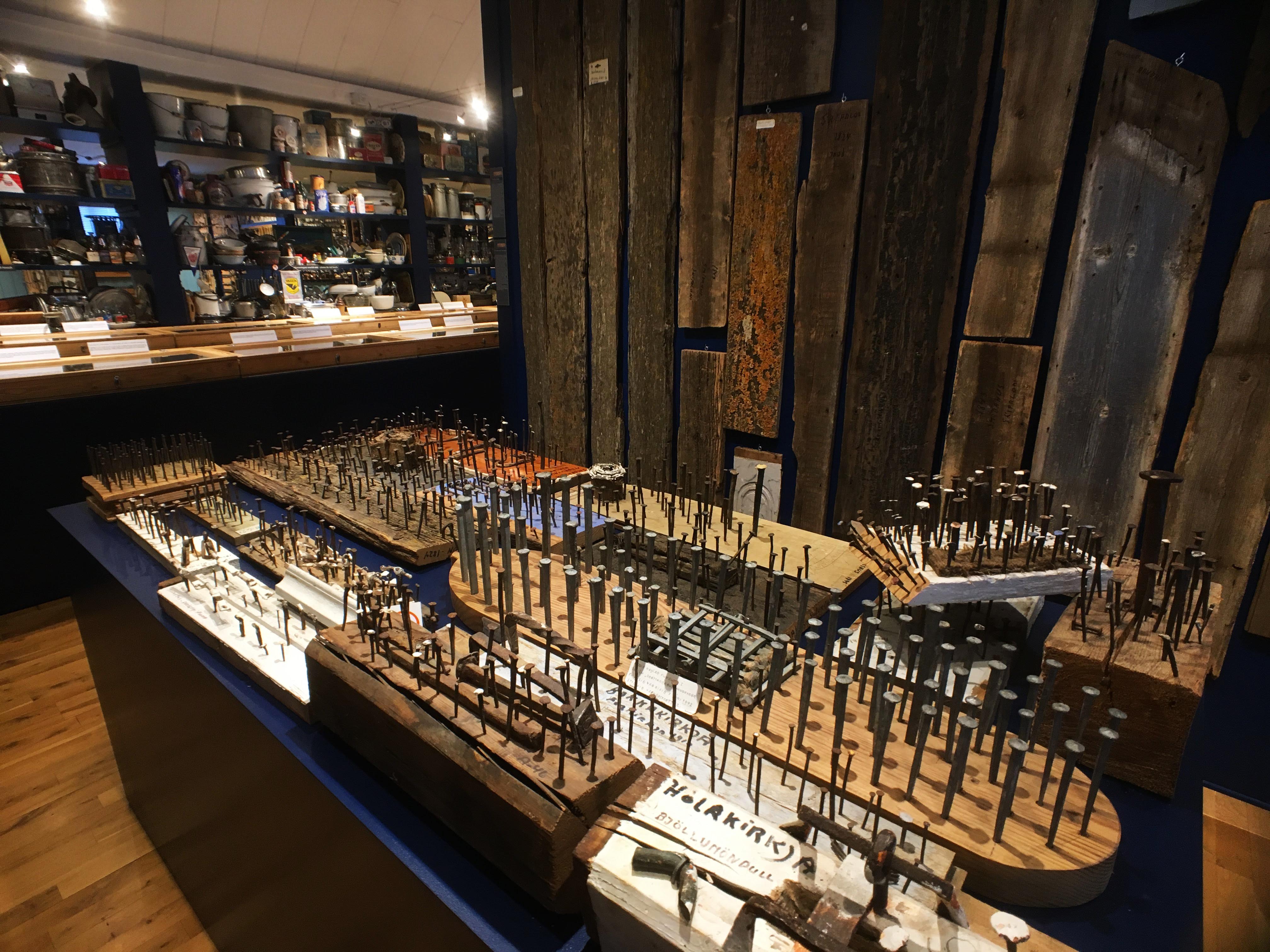 The moment you walk into the main gallery of the Smámunasafn, you stumble across rows and rows of beautiful displays filled with meticulously arranged nails, saws, doorknobs, keys, matchboxes, lightbulbs, pencil nubs, and every other kind of ordinary household thing you wouldn’t imagine to find in a museum. This is not the home of a hoarder. Instead, Sverrir’s beautiful organization and the work of the artists who set up the museum (his collection was in his home before that) has turned this into a truly modern museum.