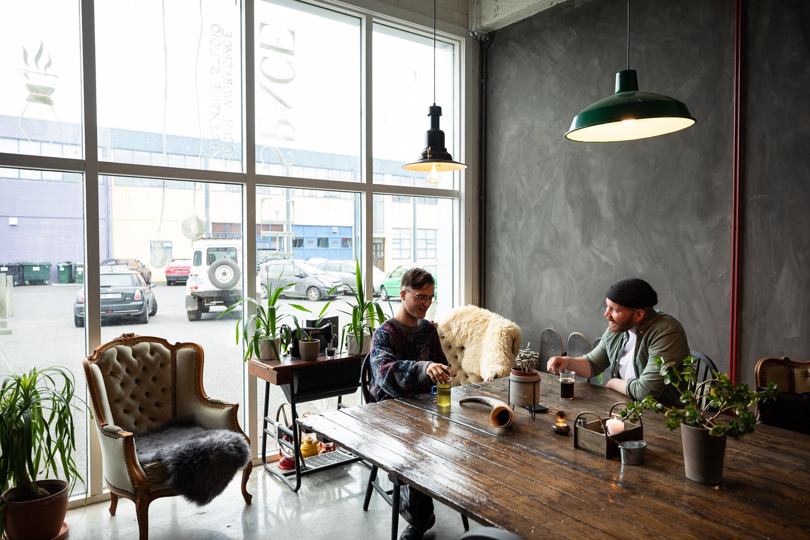 There is fresh air in Reykjavík’s ex-industrial area, Grandi. Right next to the celebrated Omnom chocolate factory, there’s a space that’s aiming to pioneer a new kind of creative environment that’s been missing in Reykjavík. Inside, you will find a table made of upcycled wood, small decorations that give the impression of being in a vintage shop, and the wonderful smell of freshly brewed coffee.