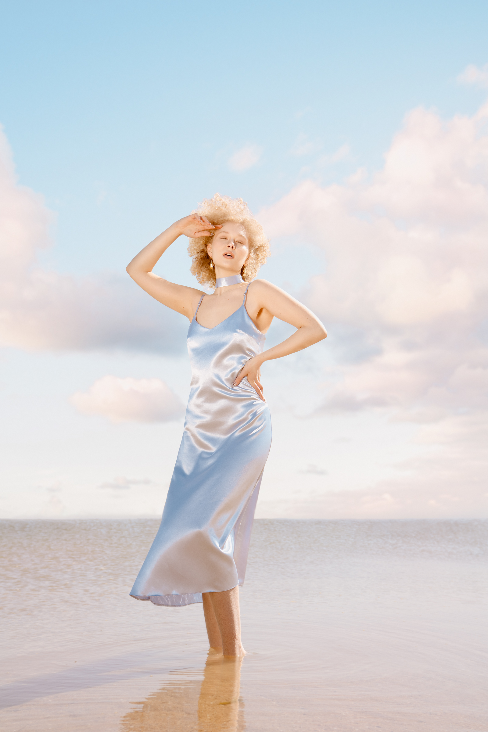 “It’s much more romantic than I usually do,” Lovísa says of the collection. “I usually use vibrant colours with a punk rock vibe, but it’s a different thing for the summer collection. It’s all the things I would want to wear. And it’s very comfortable—I’m not doing super tight no-stretch fabrics. It’s comfortable so anyone can wear them.”