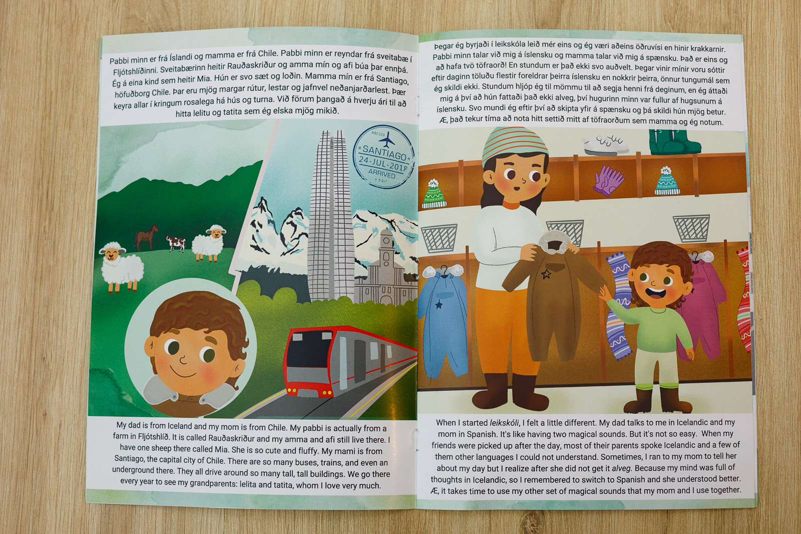 Determined to bring their story to life and not wanting to compromise on the message, Alondra and Helgi took the self-publishing route. They wrote the story, which is presented in both English and Icelandic, and brought on illustrator Verónica Pinto, who worked remotely from Colombia to bring Áki Taheil’s world to life on the pages.