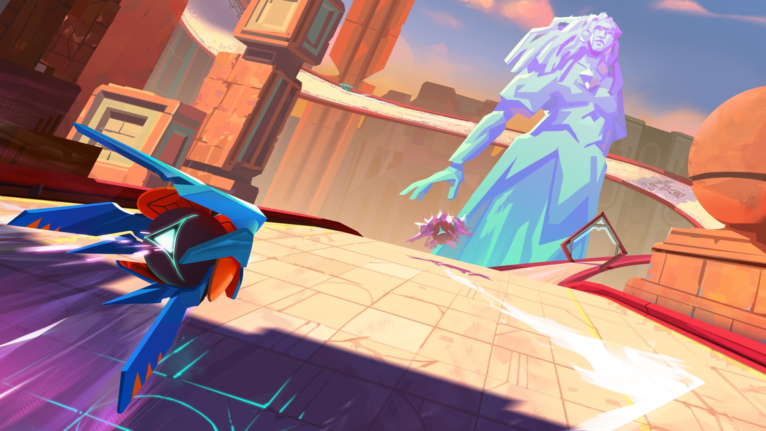 Joost’s dreamlike art, combined with the game’s silky, free-flowing movement, create a sense of lightness that permeates Phantom Spark. “I think ‘dreamy’ is a good way to put it,” muses Torfi. “The environments intentionally feel a little bit unreal, with all the castles and clouds.”