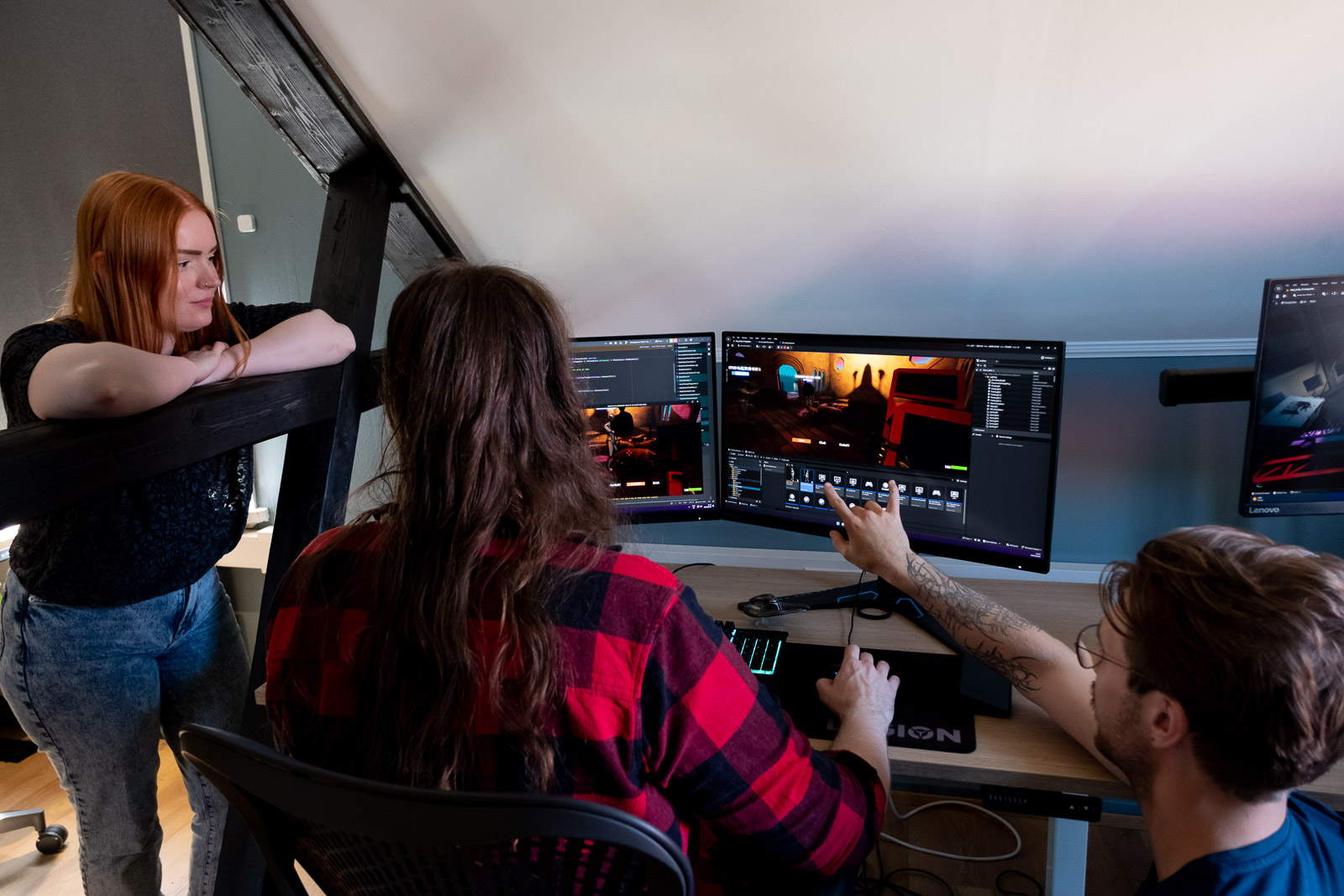 The studio was born from the ashes of Arctic Theory, as studio director and co-founder Ólöf Svala Magnúsdóttir explains. “That’s where I stumbled upon Matti in 2020,” Ólöf, referring to Bunkhouse co-founder Matthias Guðmundsson. “They’d just founded Arctic Theory and I was the first employee. We were working on a very ambitious MMO [massively multiplayer online] game at the time, called ‘Pioneers of New Dawn.’”