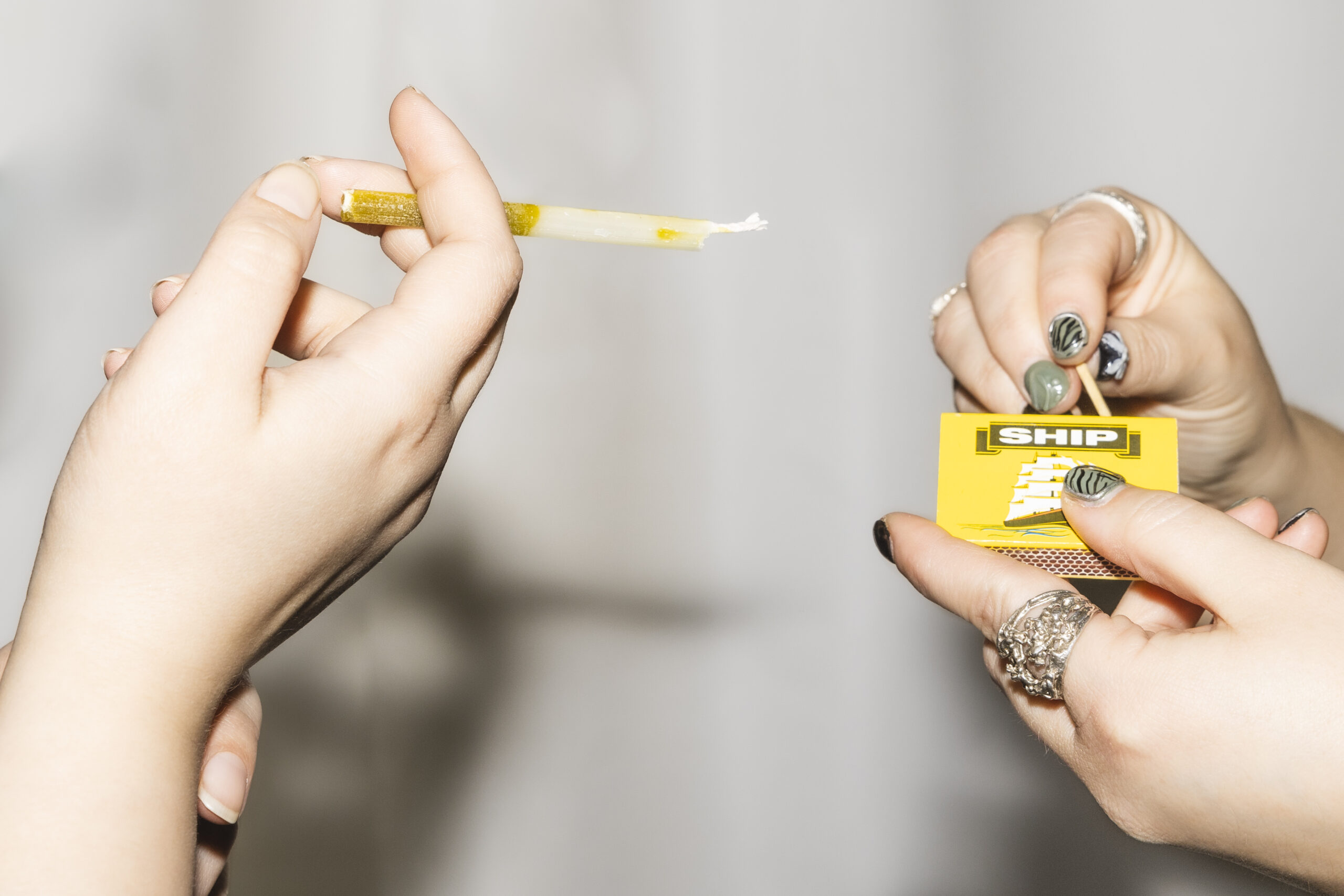 Berglind shows me their “inside smokes” — a pack of candles designed to look like cigarettes, laughing that they were a big hit at the restaurant pop-up. “We wanted to go back to the grandma, grandpa vibe,” she explains, “because at least we all connected with our grandparents having one smoking room at their house. We wanted to pay homage to that, without the smoking smell.”