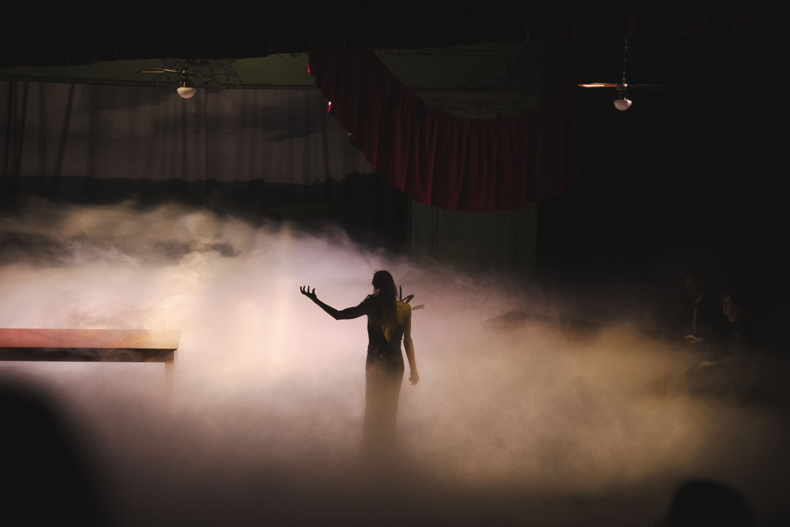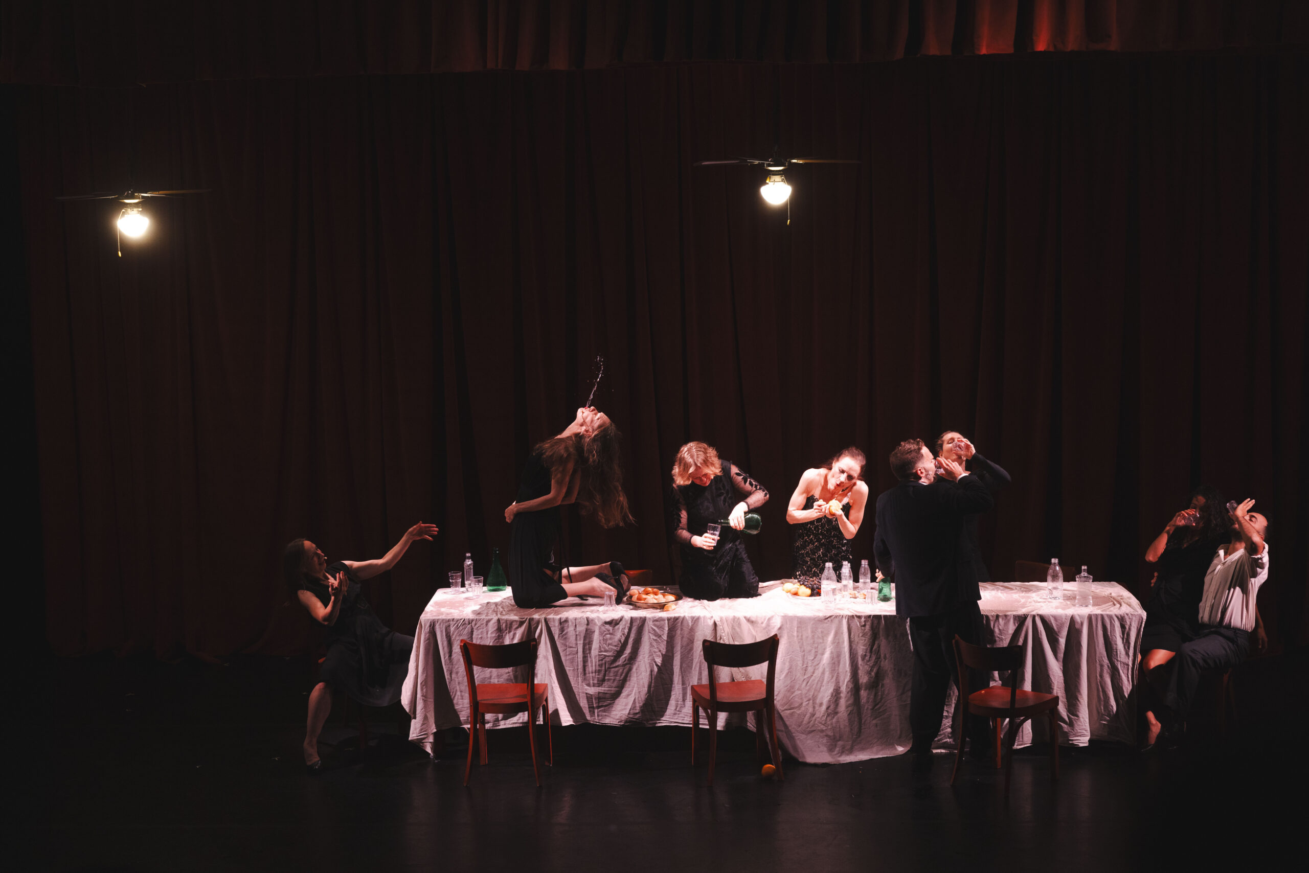 The piece is a tragicomic exploration of grief, one that questions the logic behind what happens when your future is suddenly shattered and your life is rewritten after someone close dies. Can you move forward? What does it take to move forward? Does part of you die in that moment as well? The story is told in fragmented sequences, each exploring the rawness of this feeling of loss and grief. In one scene, a group gathers around a big table, the next moment, the room is empty, and it’s just one person talking to, perhaps, the souls that are gone. It’s a signature move of grief — more often than not, it arrives all of a sudden. At times, the roles interchange, and I don’t quite understand whether the characters are mourners or the dead themselves. Later, Samantha tells me, “I try to make a space they can inhabit, and it doesn’t have to be fully consciously understood or interpreted, more like a wash of experiences that leave their echoes on your mind, body, and spirit. Perhaps when I read your question, I think of the times I have felt more or less alive, or closer or farther away from my vitality, the times I’ve mourned a part of myself, or a memory, or a person, or an idea that feels far away.”