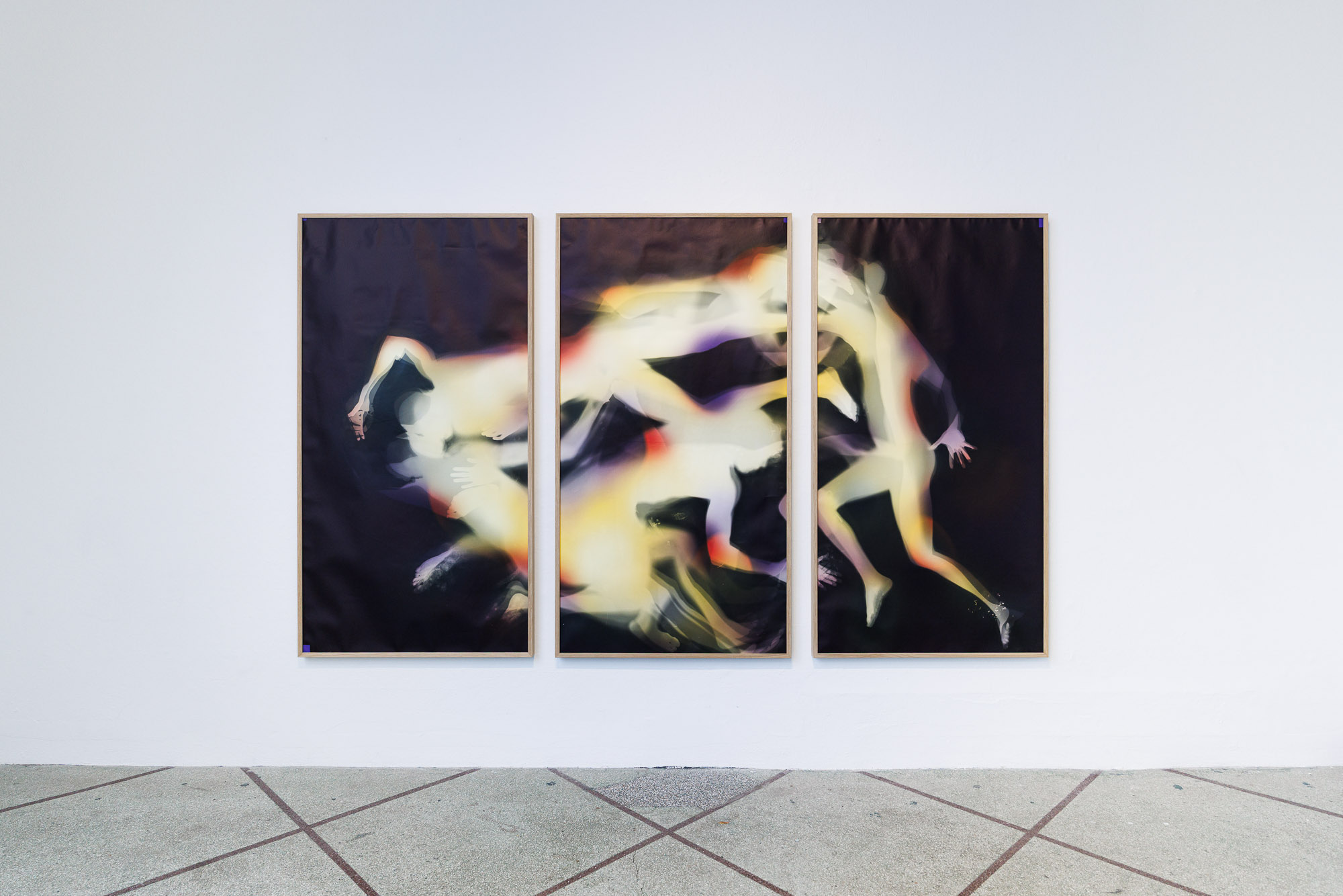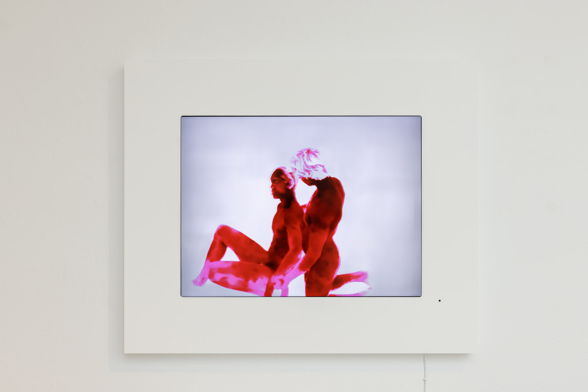 The third work in the exhibition is their sex tape, displayed on a screen in the gallery. The two used a thermographic camera that is often used by construction workers, specifically acquiring one that they had to ship from Texas to New York, which recorded in high quality. To Viðar, using a thermal camera “is stripping everything back.”