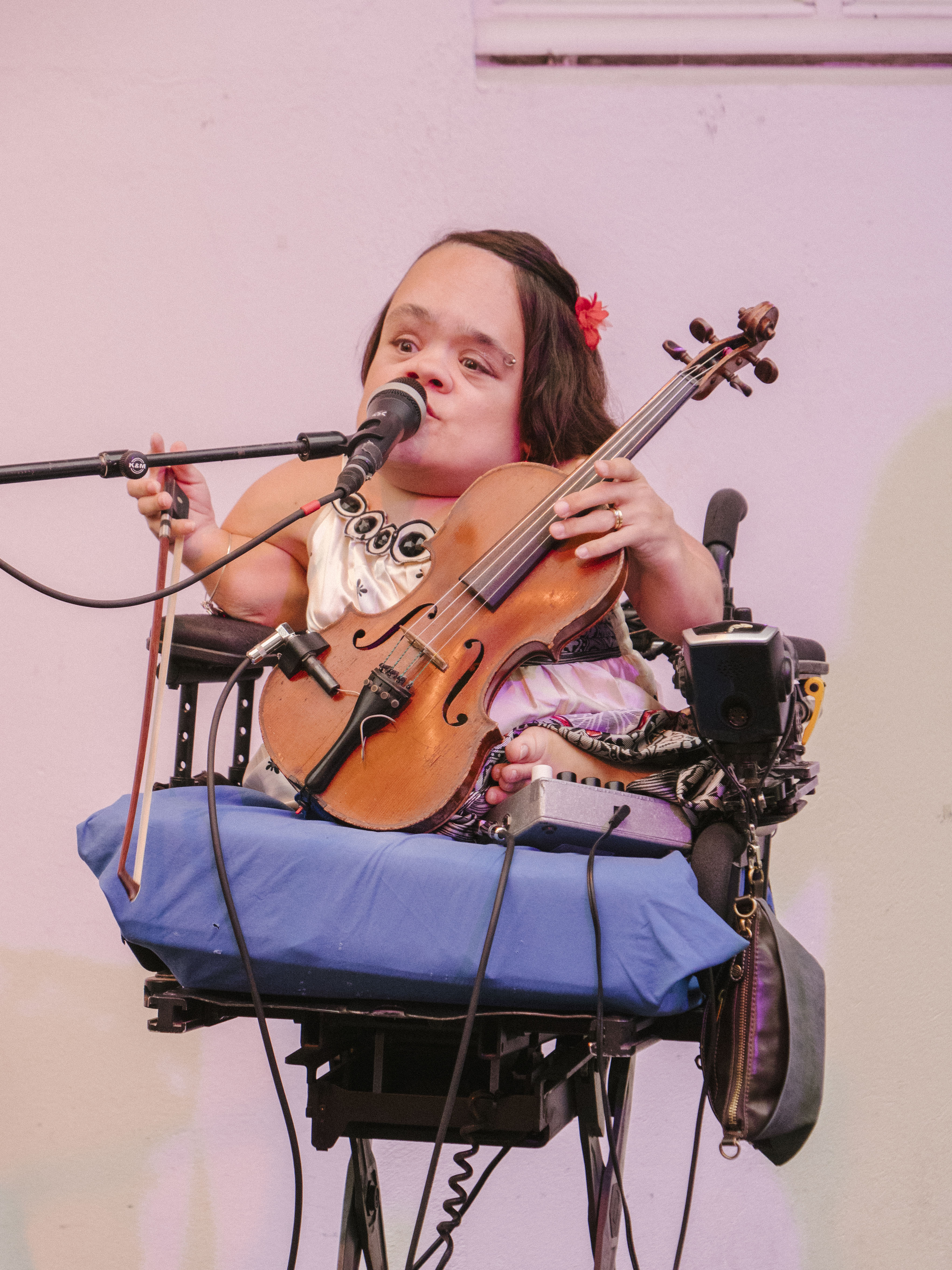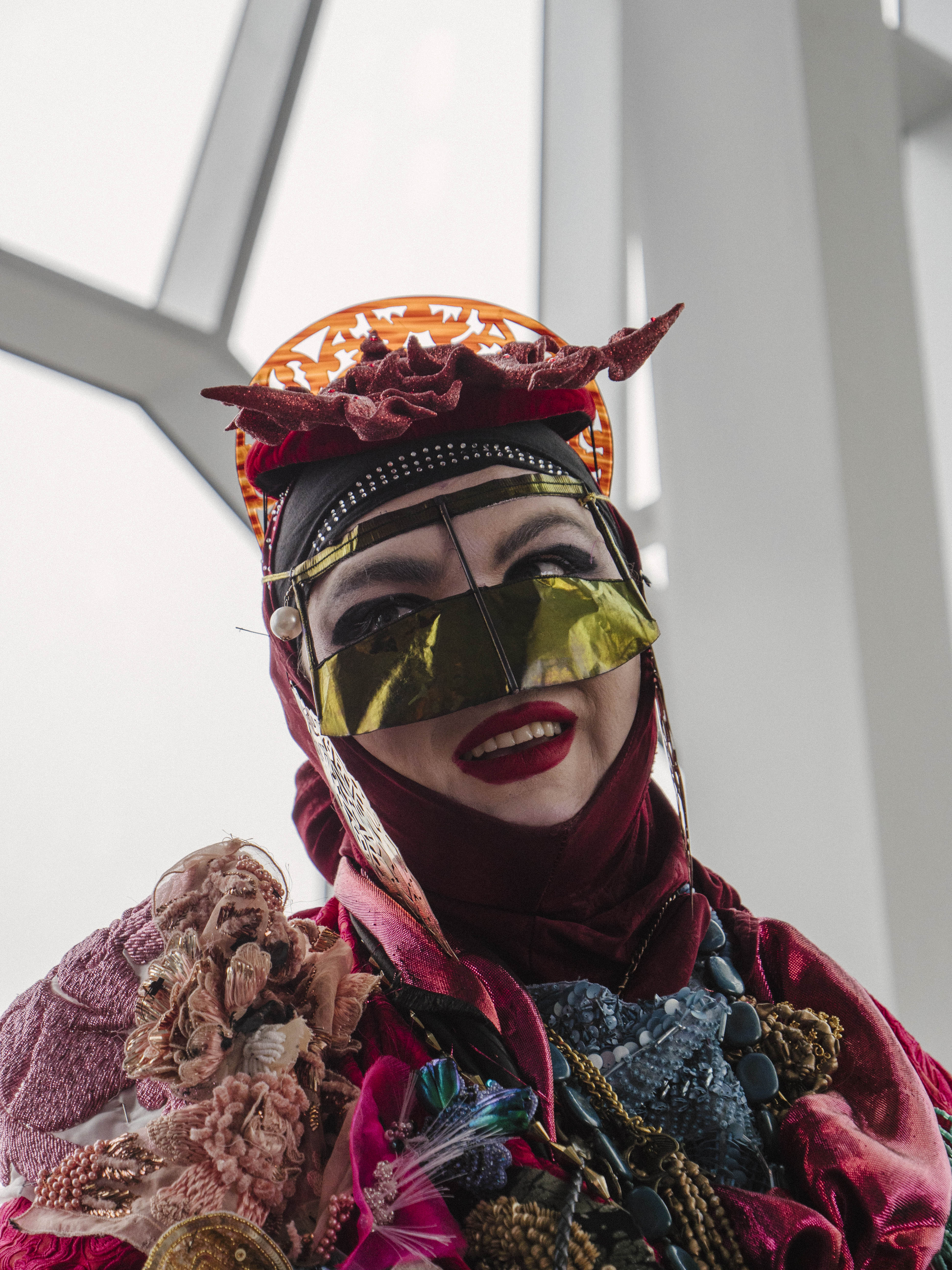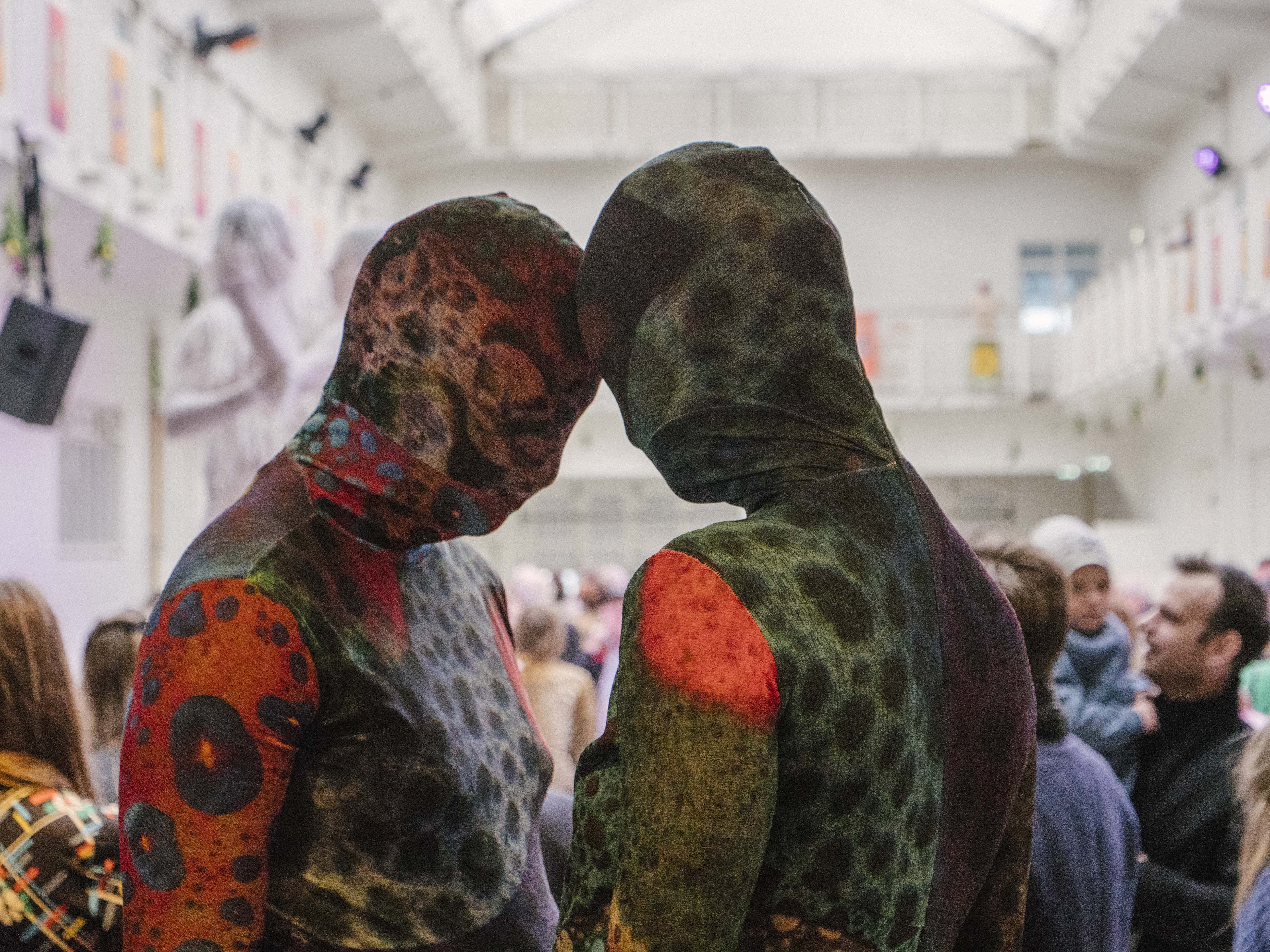The launch event is the festival hub at Hafnarhúsið. The space has been transformed, with flowers and plants decking the main hall, and masked dancers performing in the crowd. After some speeches from dignitaries, Gaelynn Lea performs a beguiling song. Born with the congenital condition Osteogenesis Imperfecta, Gaelynn plays a violin propped up next to her like a cello on her electric wheelchair. Her clear voice rings out and fills the room, leaving the audience murmuring about buying tickets for her full concert.