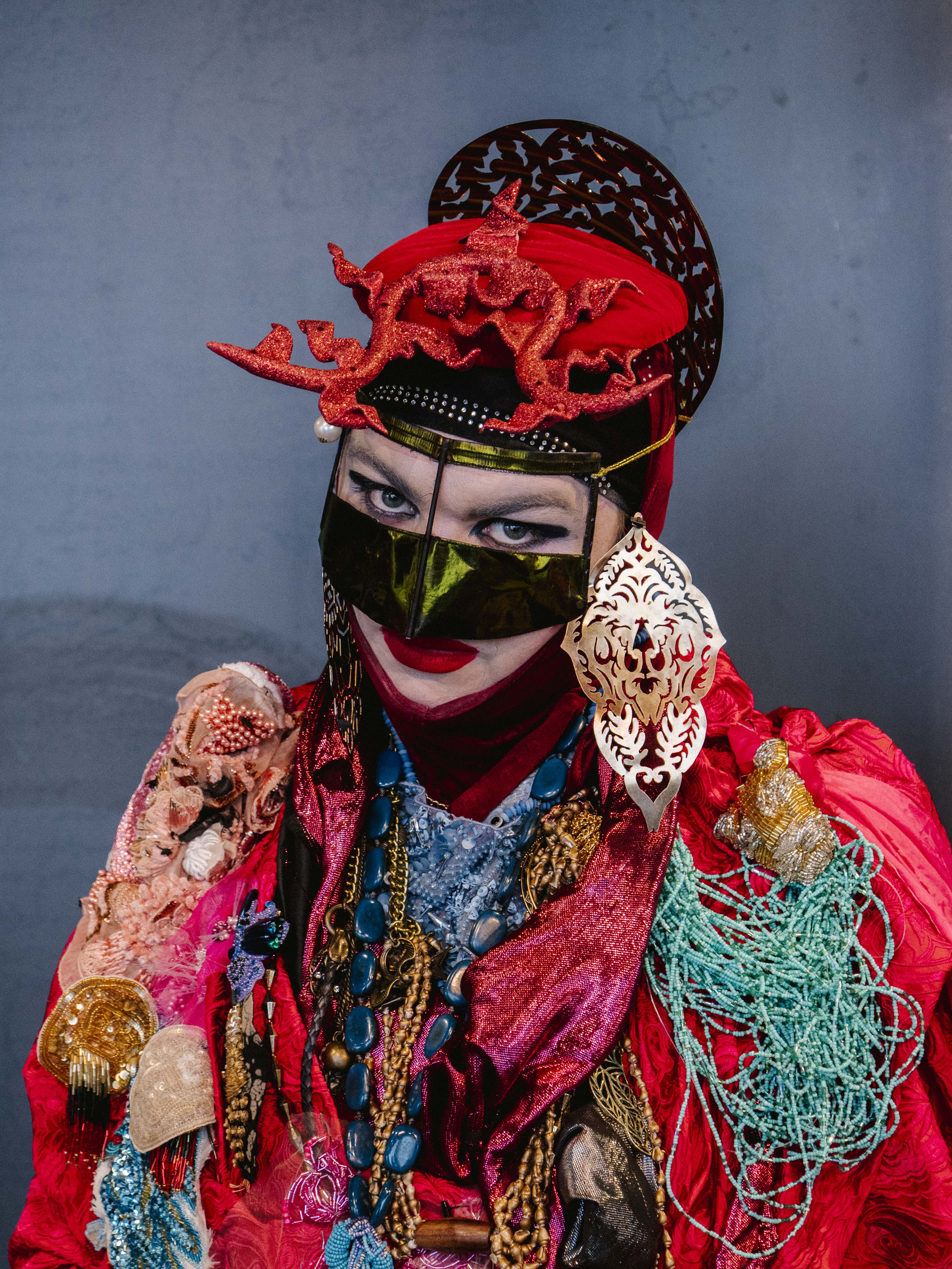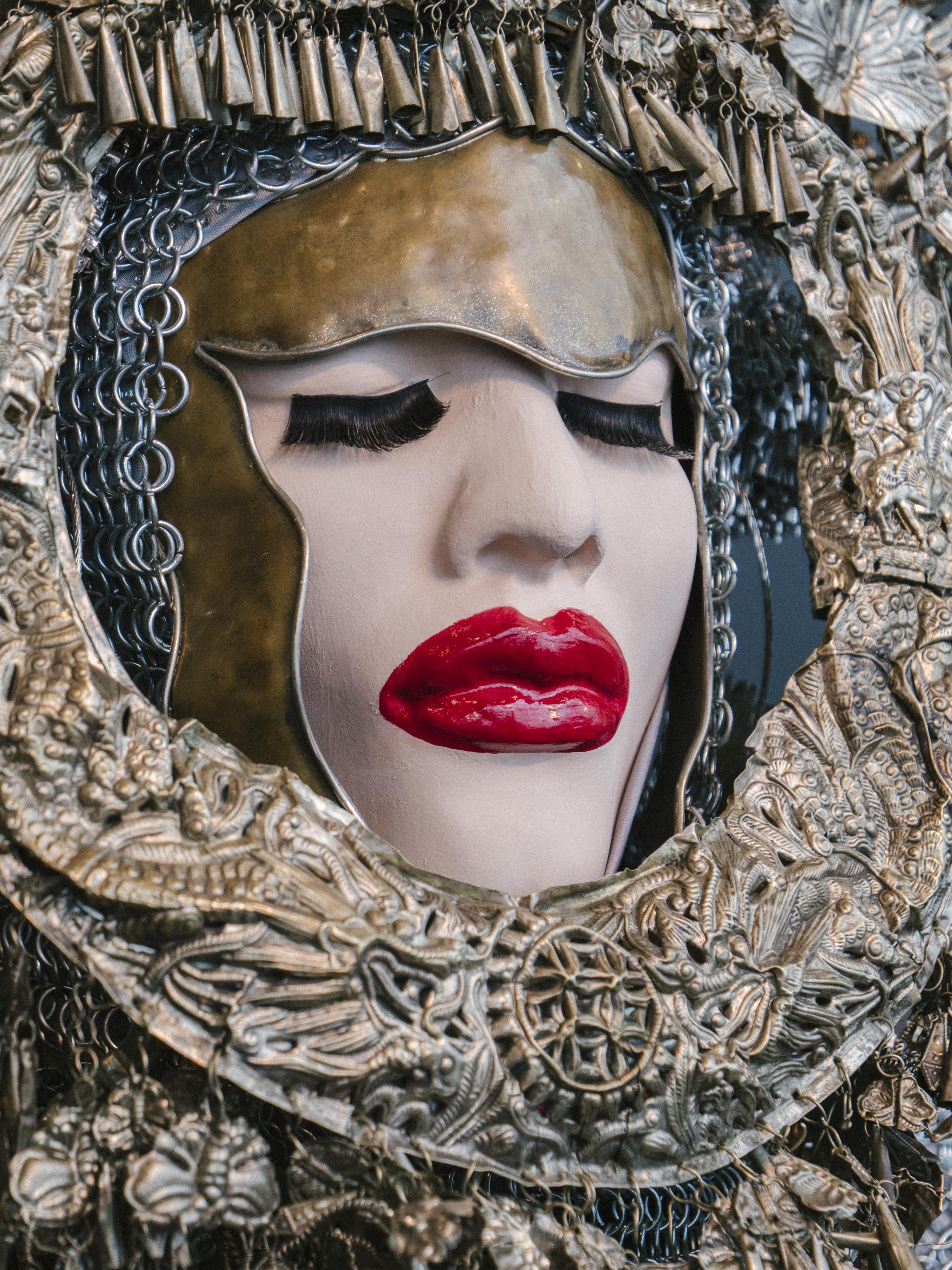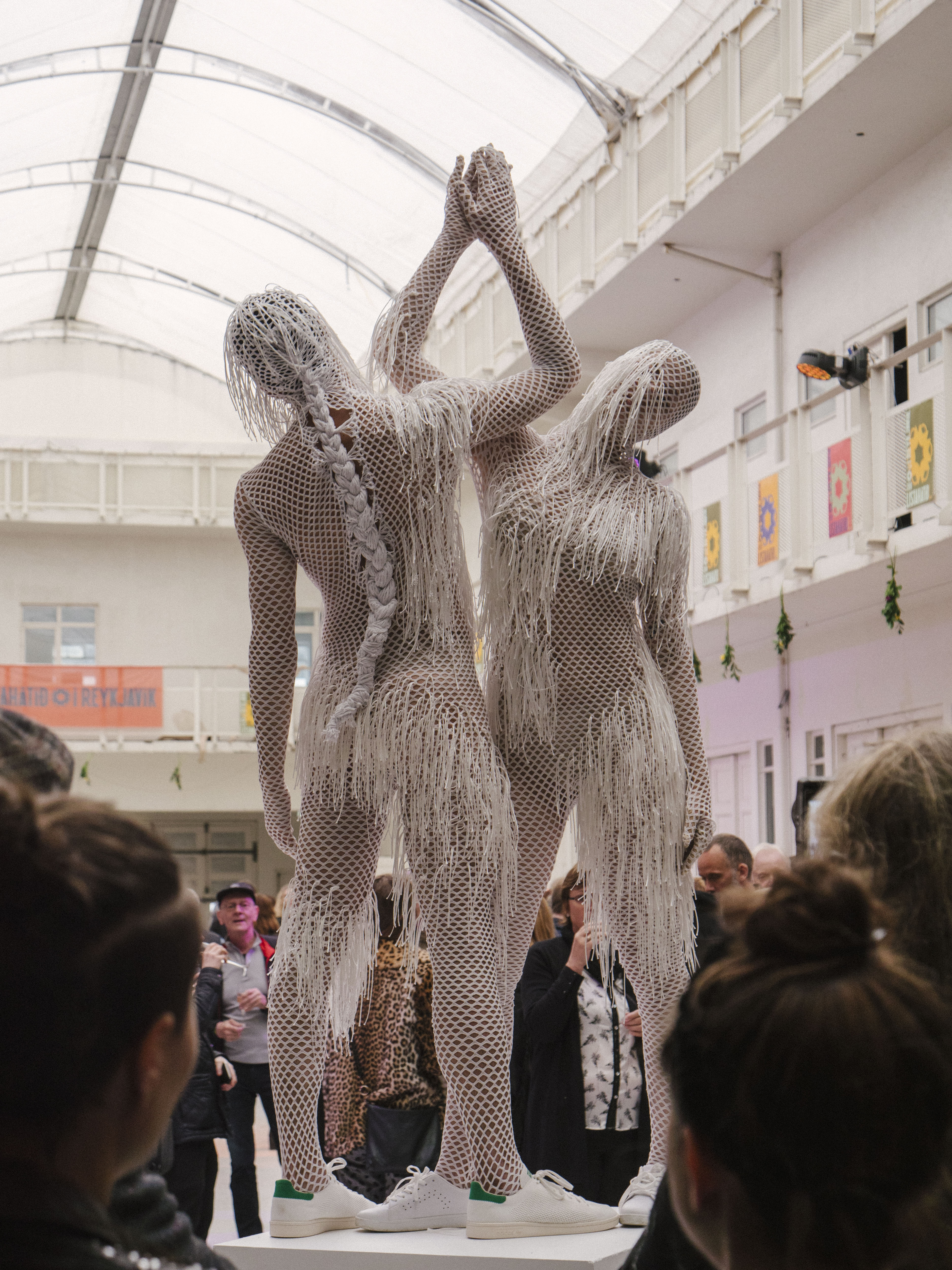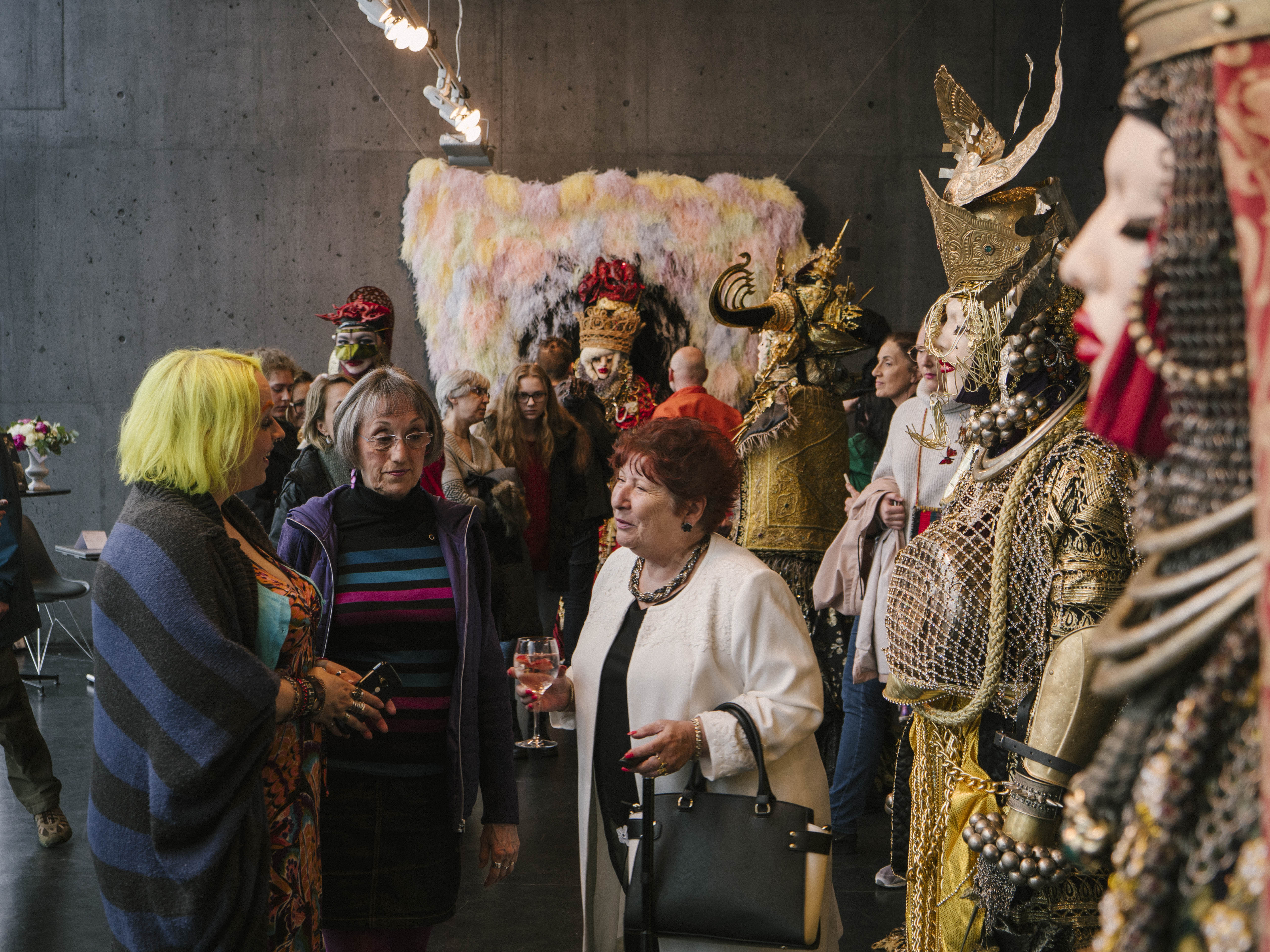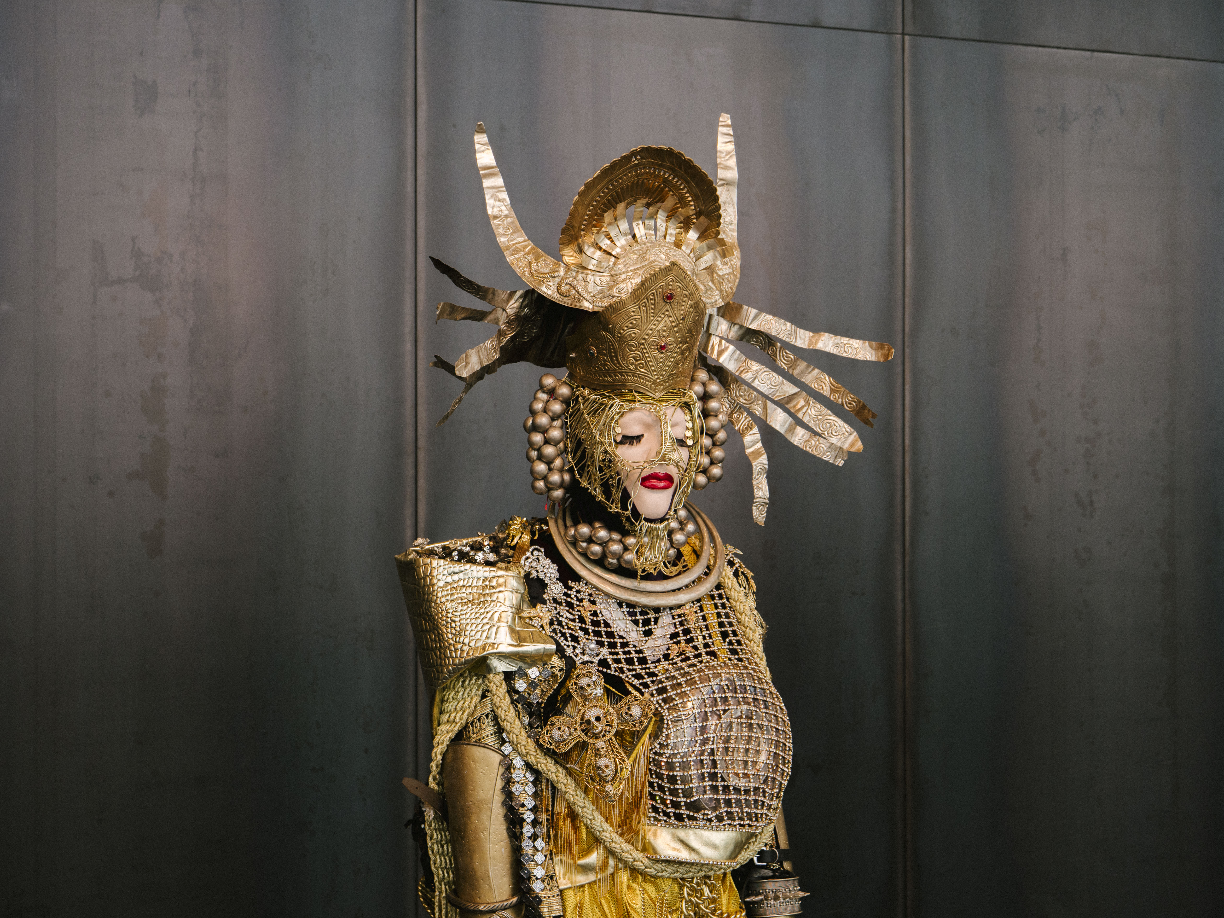 Will Ásta escape the Morphoclogs? Unfortunately, we aren’t able to find out, because it’s time to head to Harpa for the opening of Daniel Lismore’s exhibition at Harpa. Entitled “Be Yourself, Everyone Else Is Already Taken,” this handsome show comprises a series of life-sized mannequins wearing Daniel’s heavily layered and sumptuously accessorised “looks.”