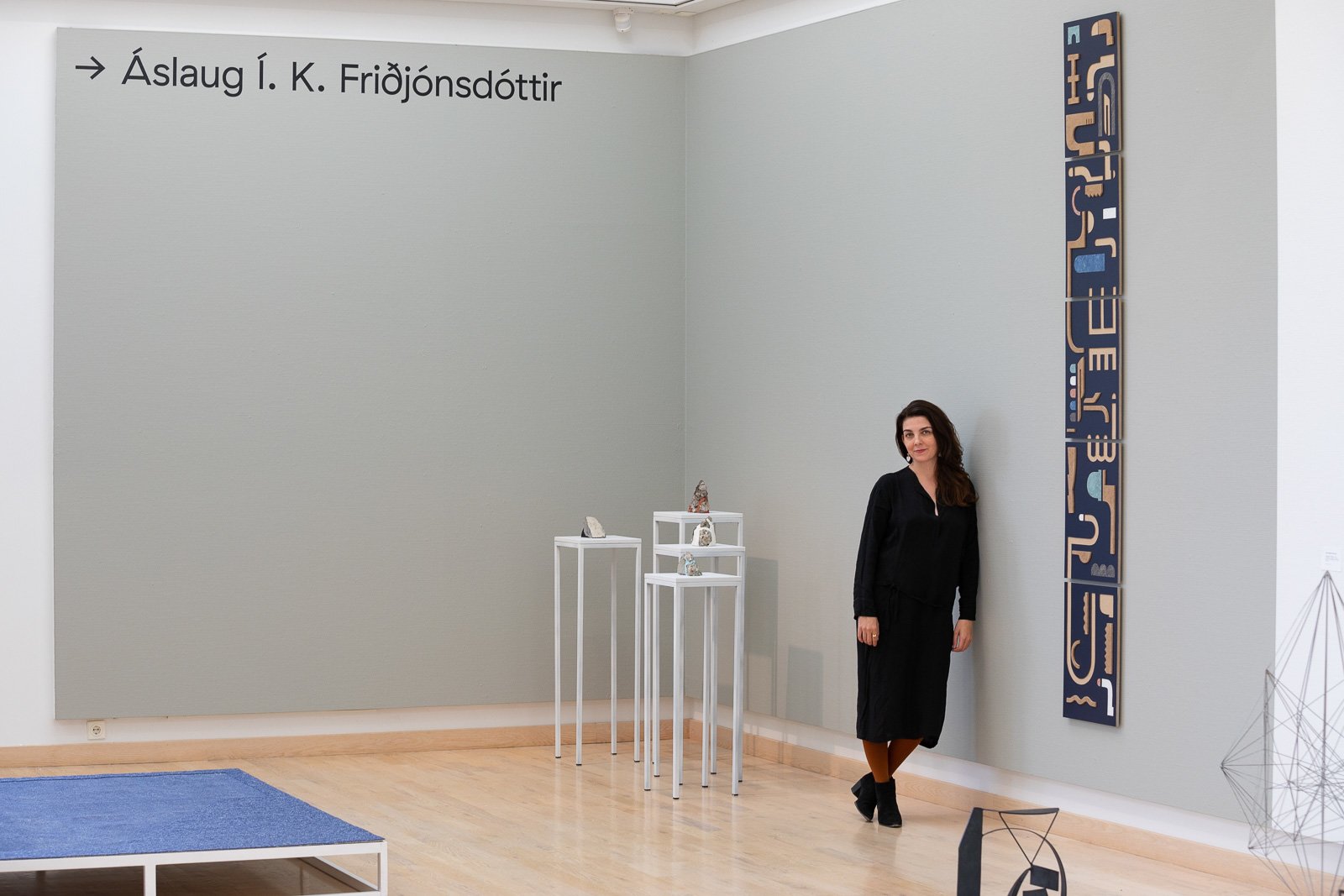Áslaug Friðjónsdóttir is another artist in the show. A distinctly calm character with large green eyes, Áslaug has participated in exhibitions around Iceland, Europe, and the United States over the past decade. With a focus on abstract three-dimensional art, her work evokes images of urban landscapes and construction sites.