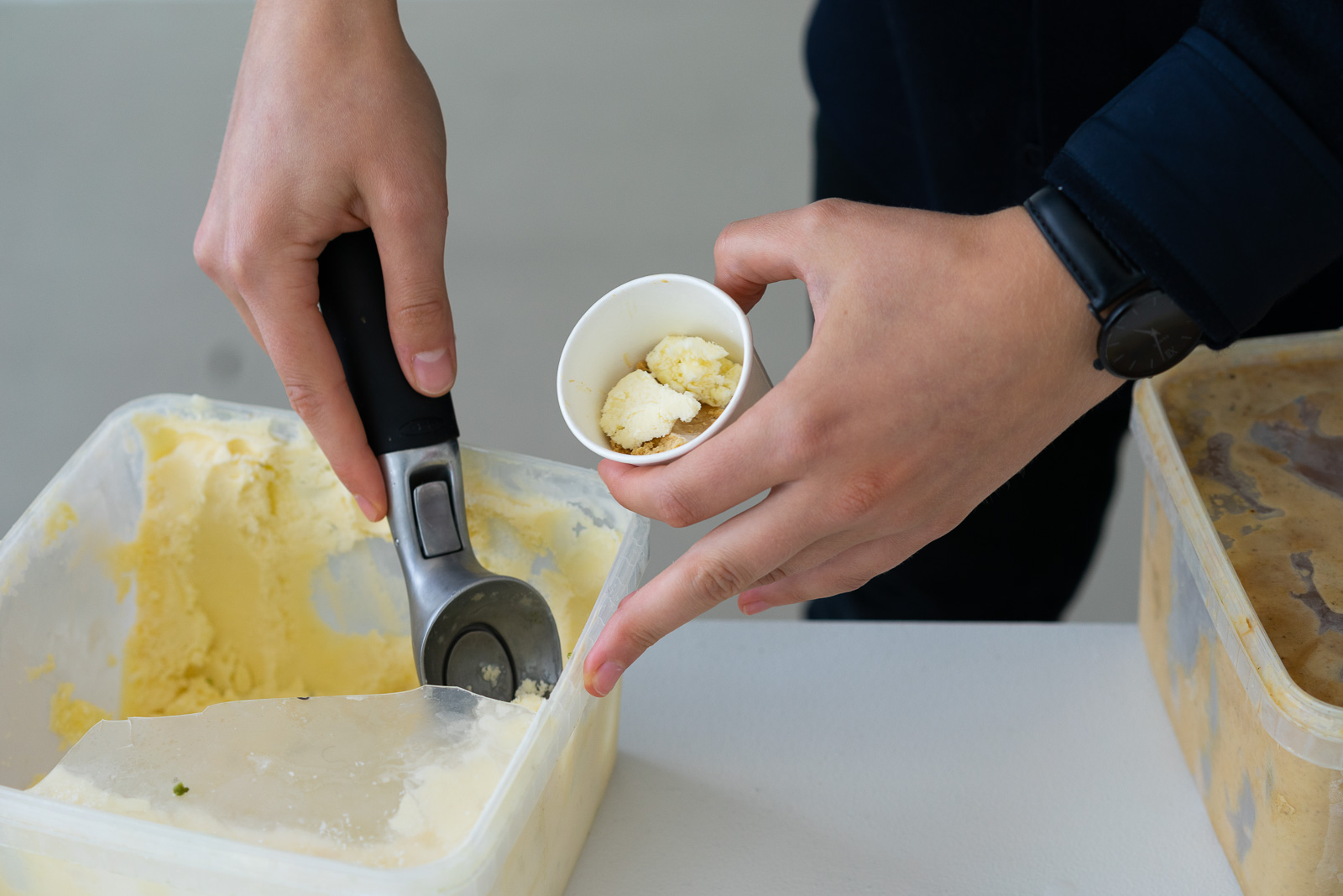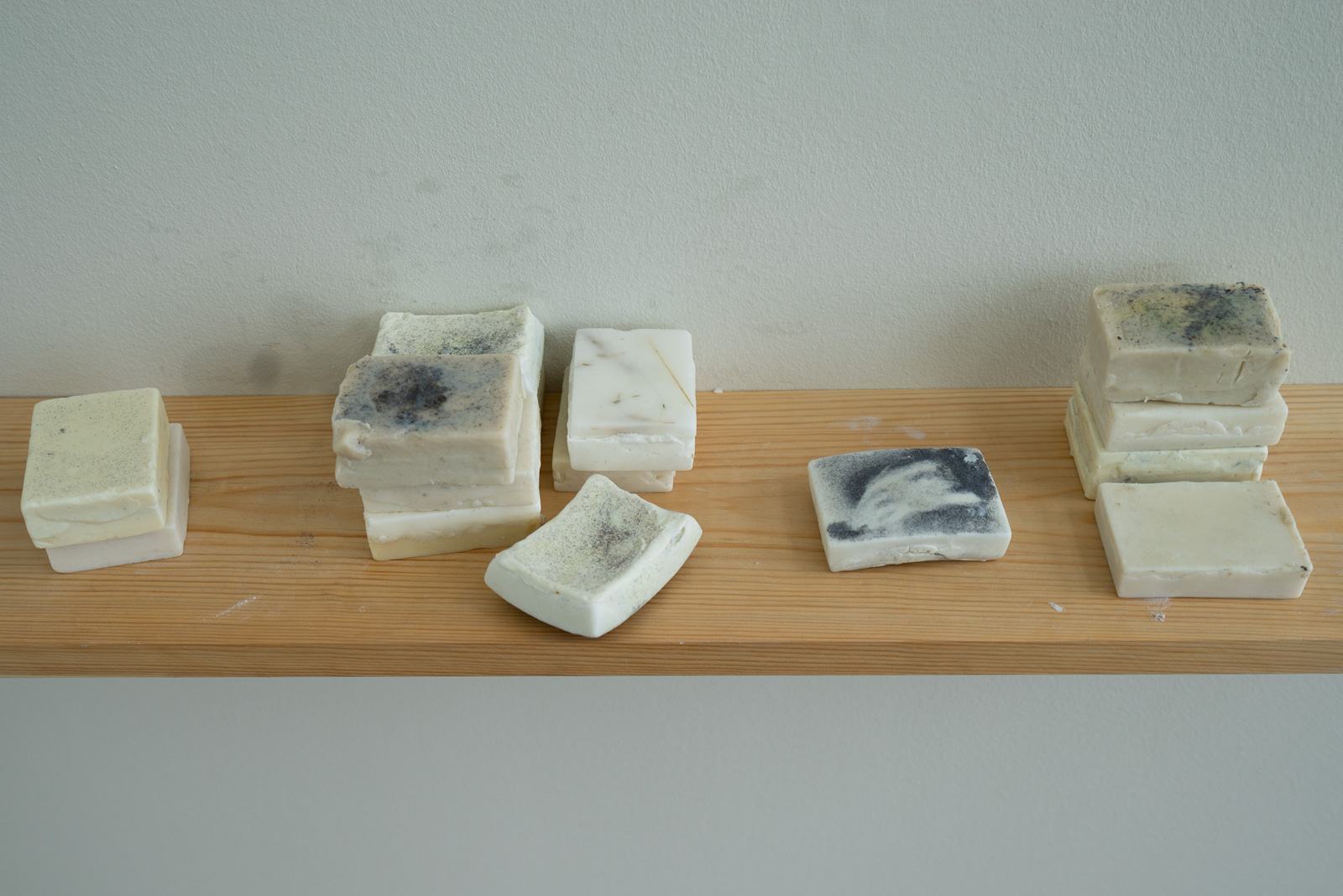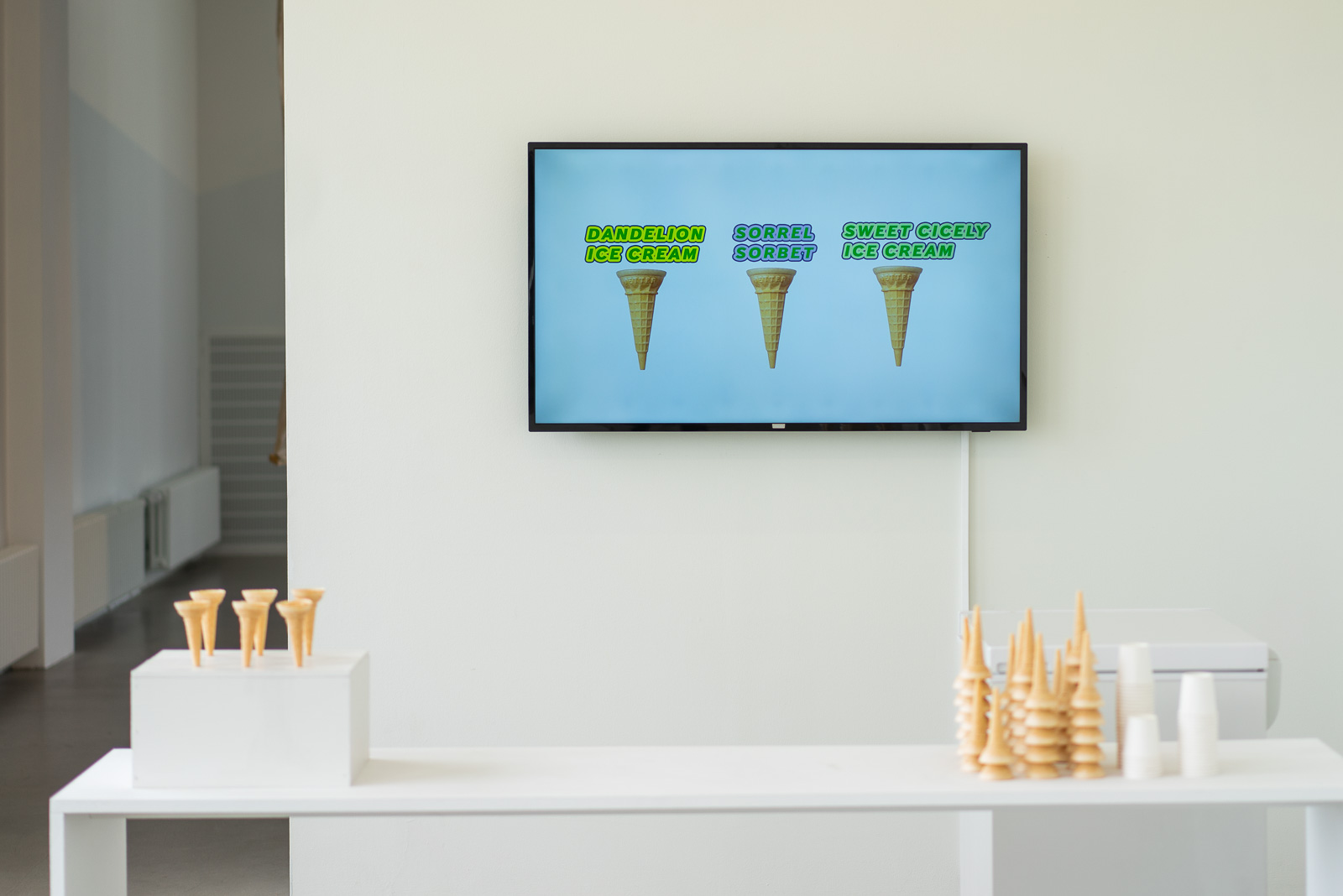 Many of the works in the show have interactive elements, and play with our senses—such as in the ice cream of Ieva Grigelionyté, which is flavoured with common roadside weeds. In ‘Scent of Summer’ by Svanhildur Halla Haraldsdóttir we’re invited to handle small soap-like bars made from sunscreen that function as time capsules of summer. We listen to a soundtrack that tunes us in to the smells and environs of The Marshall House and its surroundings. There’s something strange and exciting in this mixture.