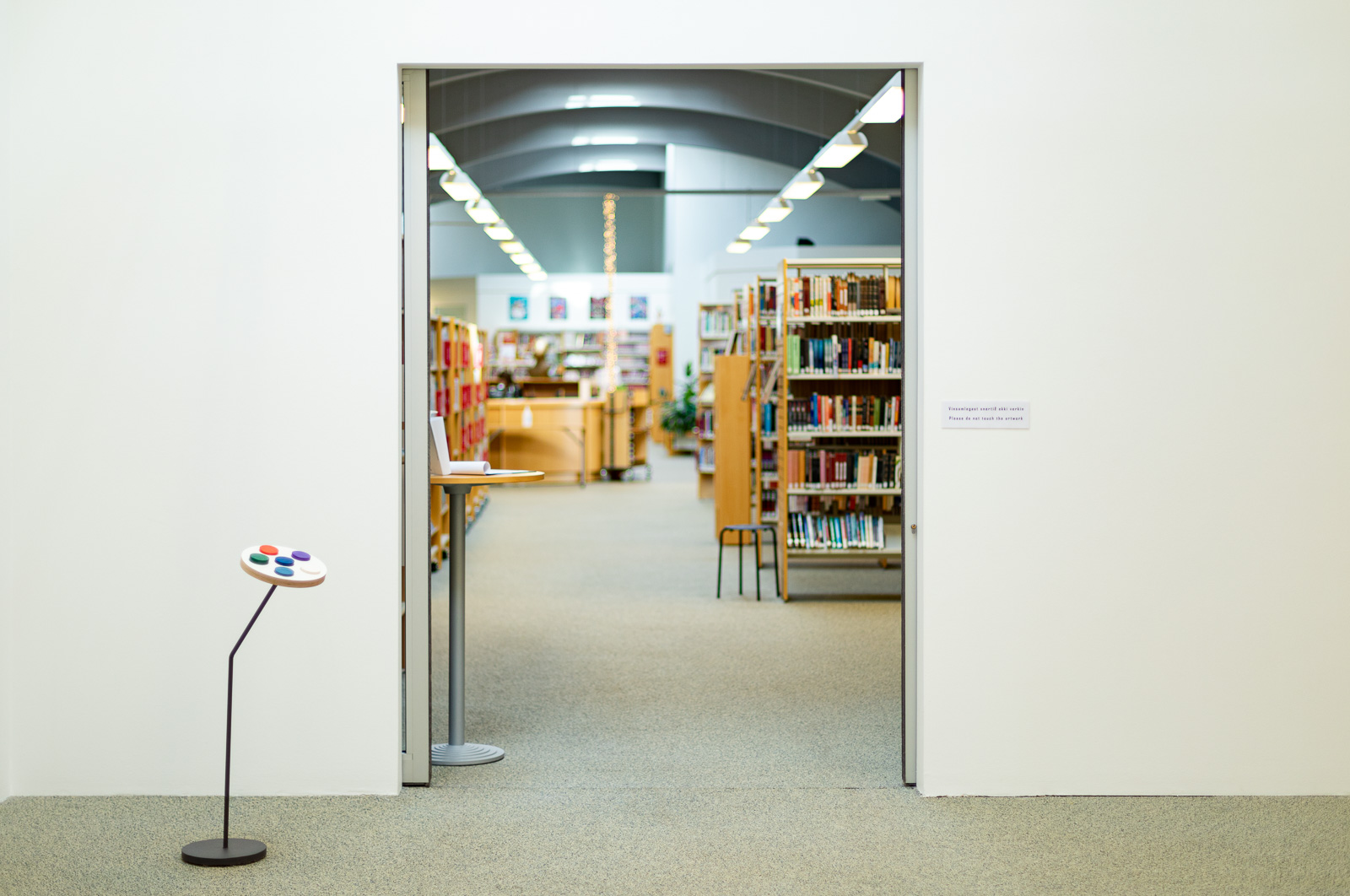 Though Guðlaug takes her inspiration from everyday objects, she concedes that her ideas often start more abstractly: with an atmosphere or space. This particular exhibition started with the idea of a library, the very one she’s exhibiting in. Guðlaug’s early idea suggested a series of objects — a shelf, drawers — and once placed in the exhibition space, those objects would construct their own new meaning in relation to one another. One viewer, she explains, might look at them and see a library; another, a bedroom. That’s why Guðlaug doesn’t, or perhaps can’t, explain where each piece of inspiration came from, even as she walks around the exhibition: it’s more fun for the viewer to have to figure it out for themselves.