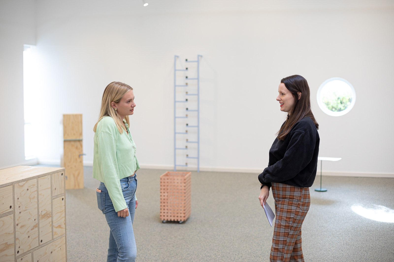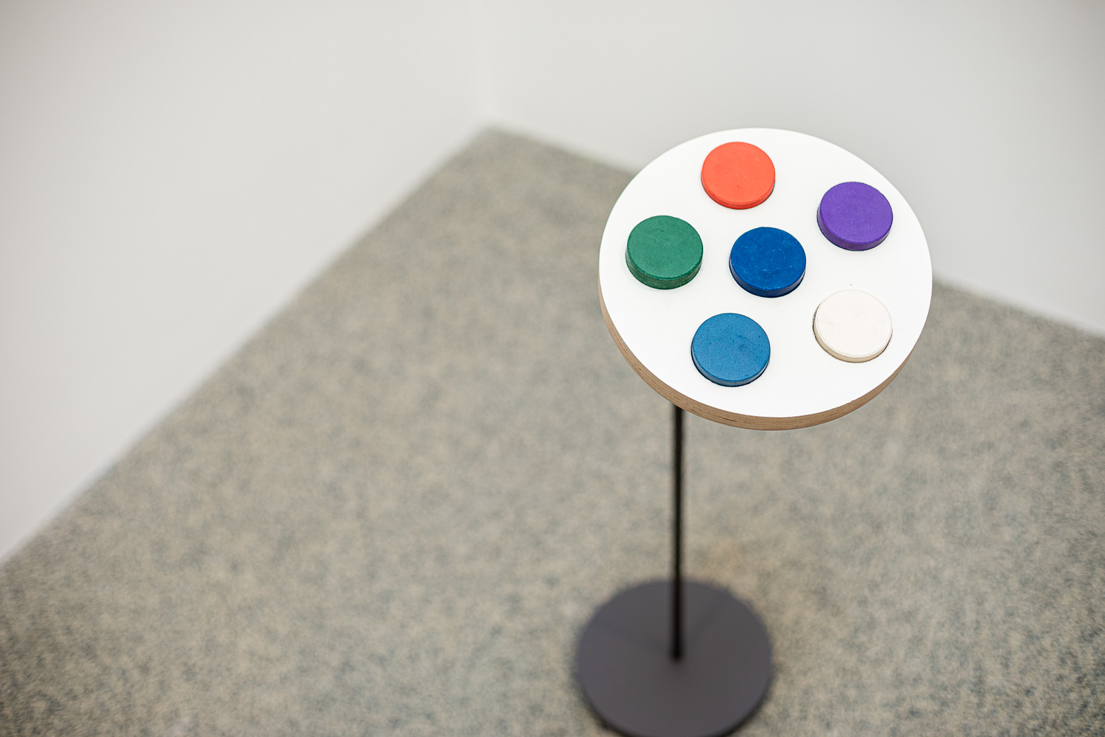 “You construct the meaning with your presence in the space,” Guðlaug answers. “My starting point is the forms that surround us everyday: a texture, a form, a material. And I take those forms and I reshuffle them — try out different colours or scales. You could come here and see what looks like a cabinet, and then what looks like a shelf and you decide that it’s an office space. You develop your own meaning out of the familiar objects that surround you.”