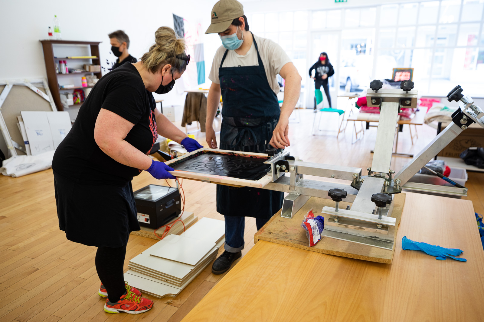 “And we are still using them like that,” Libia continues proudly. “We can take one down and go into the street. So then [the banner] is activated, [serving] another role and another function, and then we put it back in the installation.”