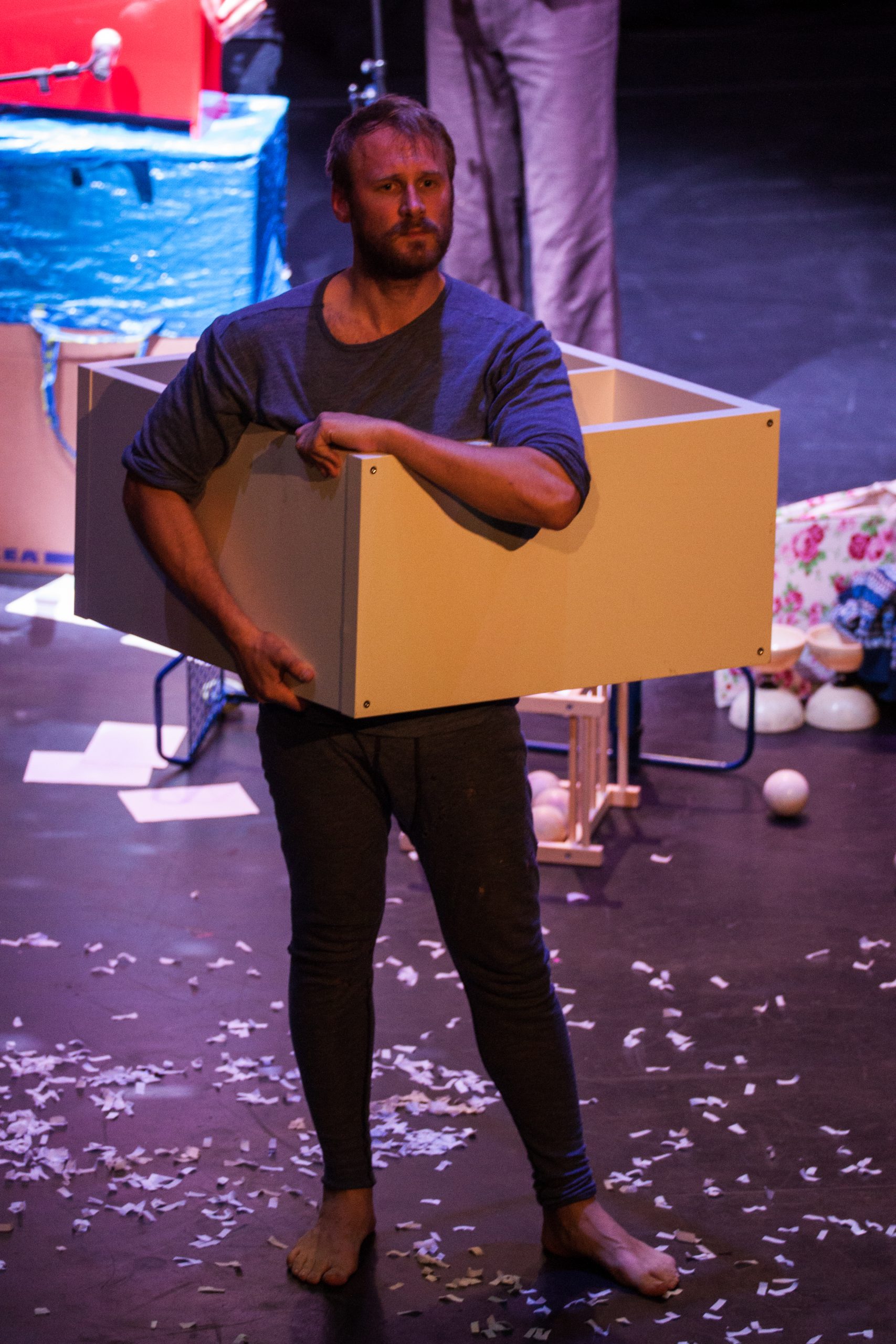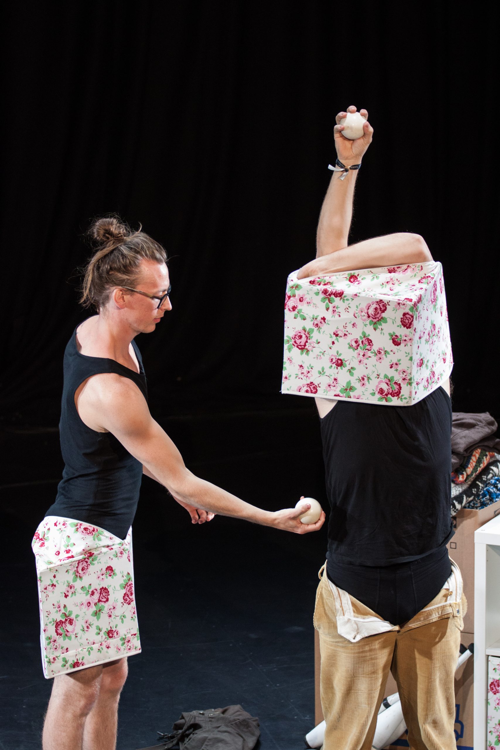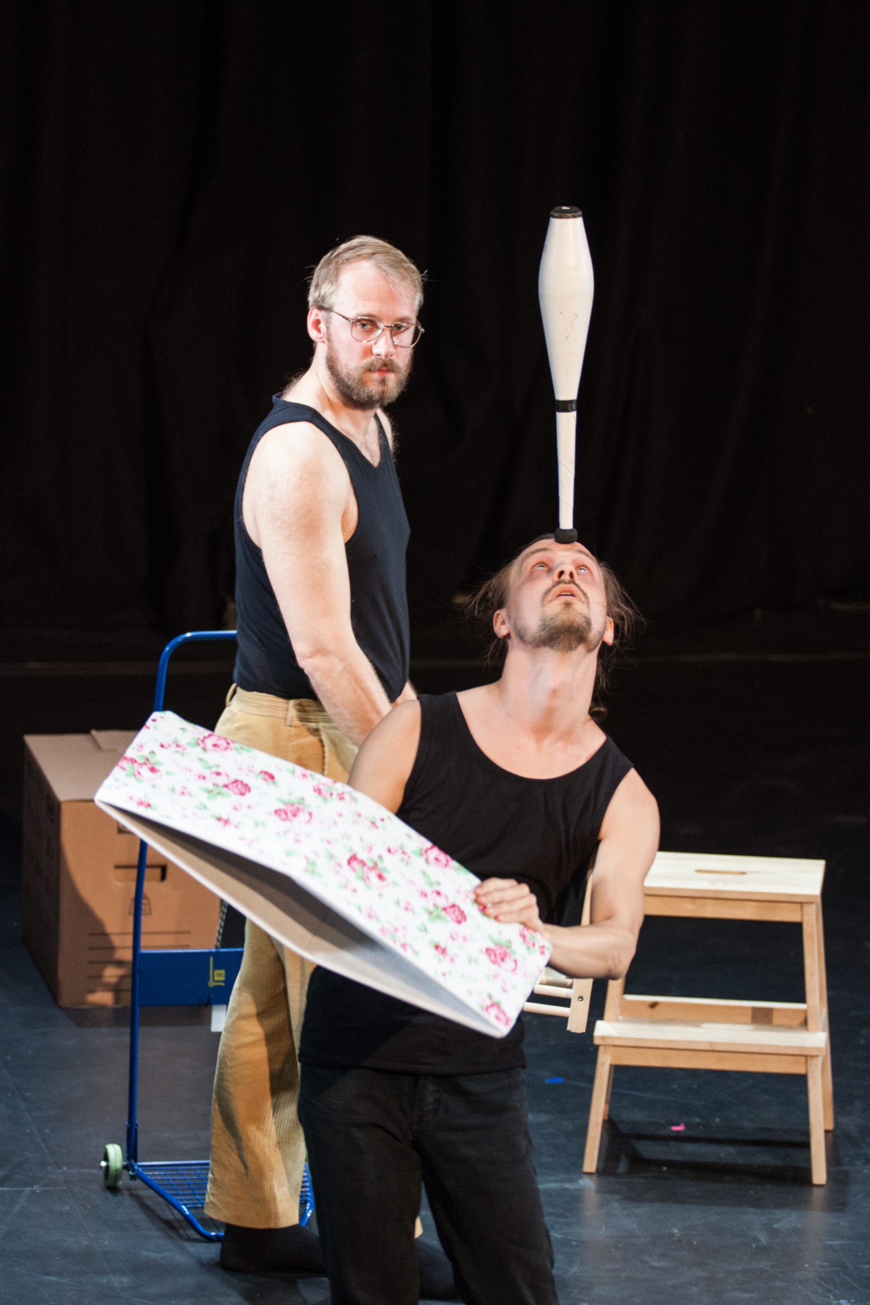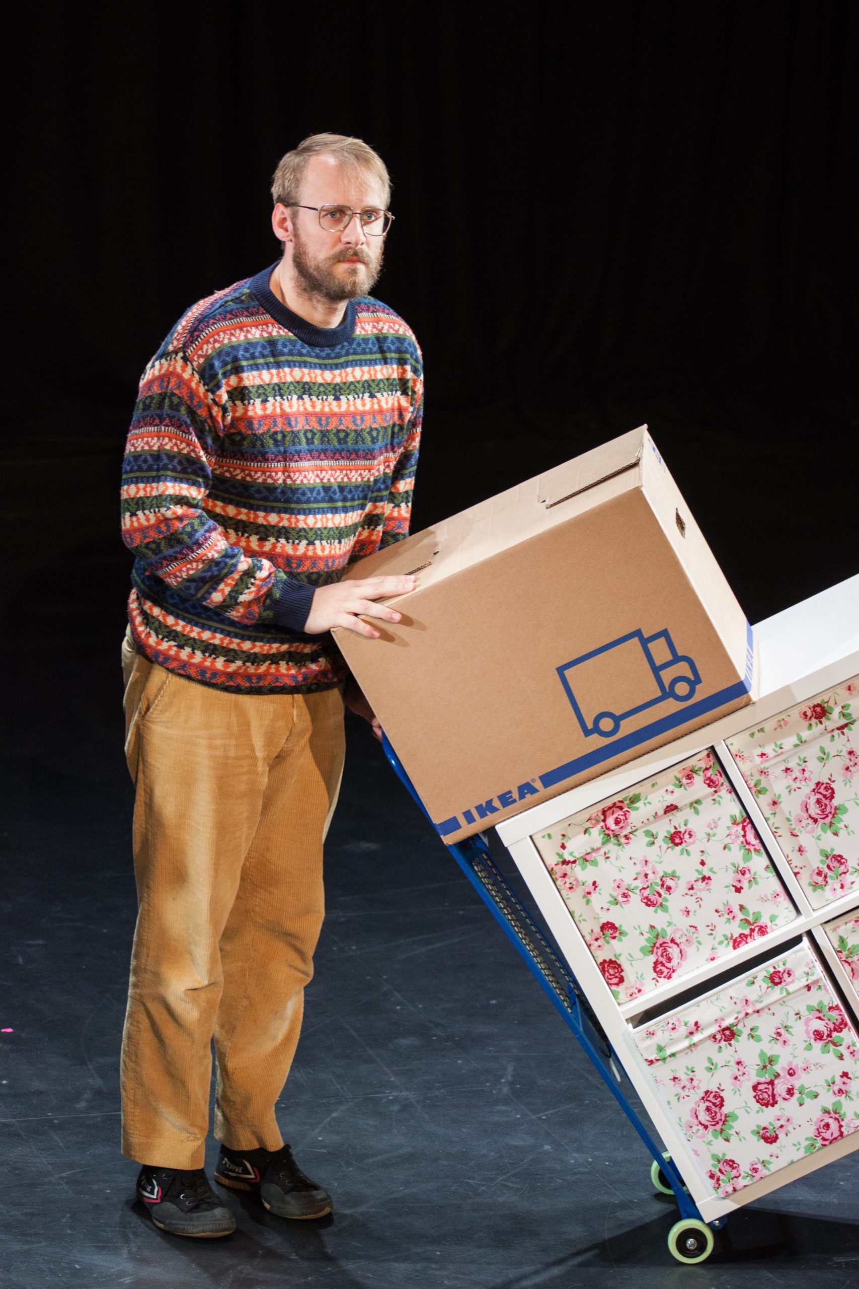 The IKEA KALLAX shelving unit stands at 77 centimetres high. With four square shelves and a variety of muted colours, it’s one of those IKEA pieces you’ll find at probably every single house in Scandinavia. That said—it usually holds books and knick-knacks. You probably haven’t seen it used for acrobatic stunts and ballet choreography, but that’s exactly what audiences found at “Three Men From The North”—one of the biggest hits of this year’s Reykjavík Fringe Festival.