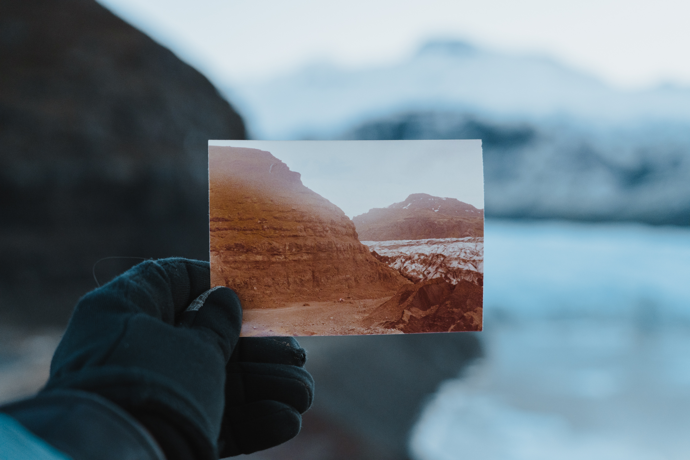 While In a State of Change provides some scientific information, it was never meant to unload all the heavy facts on the viewer, but rather to make an emotional connection through beautiful visuals and personal stories. For Donal and Frank, it all started with one photograph. In his first years in Iceland, Donal lived in Þórsmörk, in the Volcano Huts area in the mountains. “There is a photograph on the wall in the Volcano Huts of a view of Steinsholtsjökull, one of the glacial outlets from Eyjafjallajökull. That photograph shows the glacier 100 years prior,” shares Donal.
