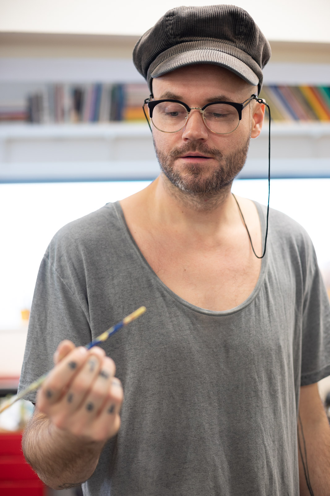 Halldór explains that he has not long moved into this new studio. “It’s so funny how space decides the size of your paintings,” he says. “I’m doing more landscape stuff, just because of what the shape of this space is.”