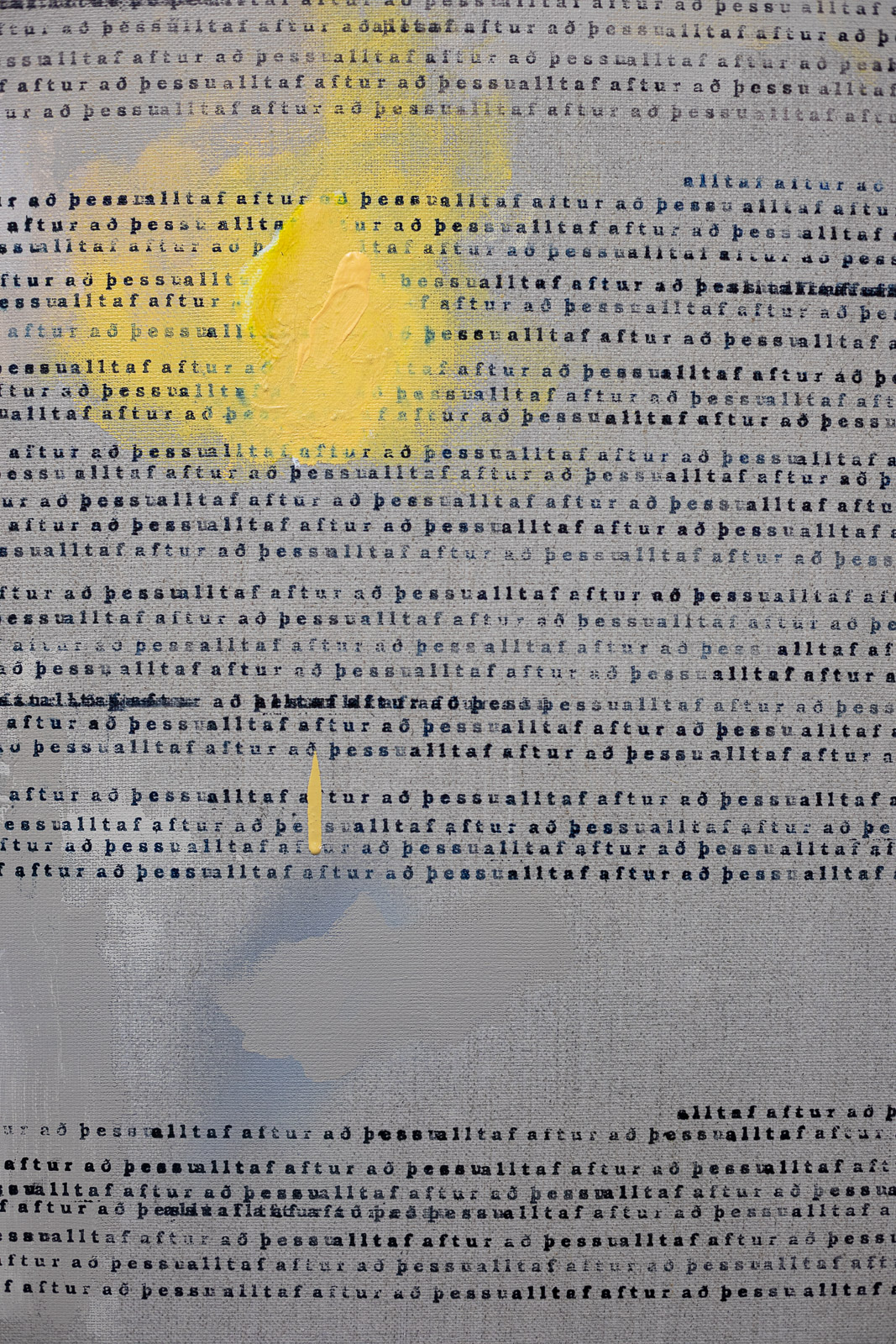 Halldór’s pieces are varied but complimentary, incorporating different textural elements, from layered wood to thickly applied paint. Significantly, they all incorporate text in some form. The new exhibition, ‘Here, Now & Maybe Later’ covers pieces made over the last 12 months. “But in a way this has been a continuous theme in my works since maybe 2010,” Halldór says. “This period where I have been working with the meaning of language.”