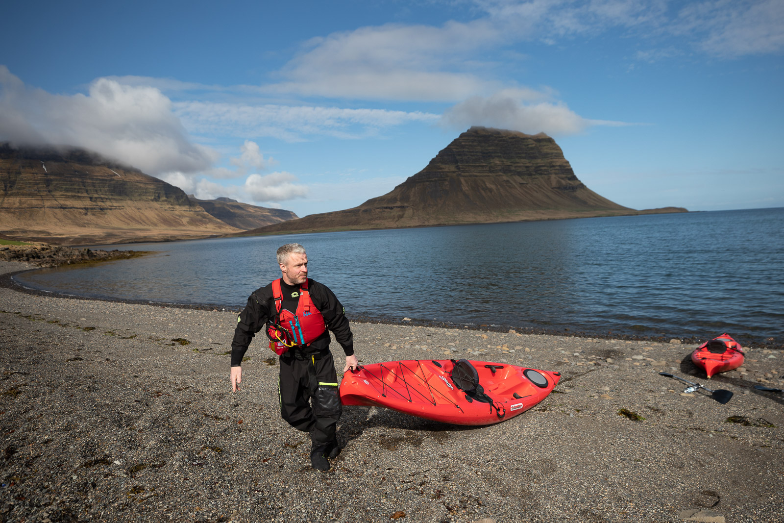 While most people prefer to go to Kirkjufellsfoss to take photos of Kirkjufell rising like a magnificent fin in the background of the falls, I won’t stop there today. The starting point for my kayaking tour is the small town of Grundarfjörður, so that’s where I head to meet with Garðar, the founder of Vestur Adventures.