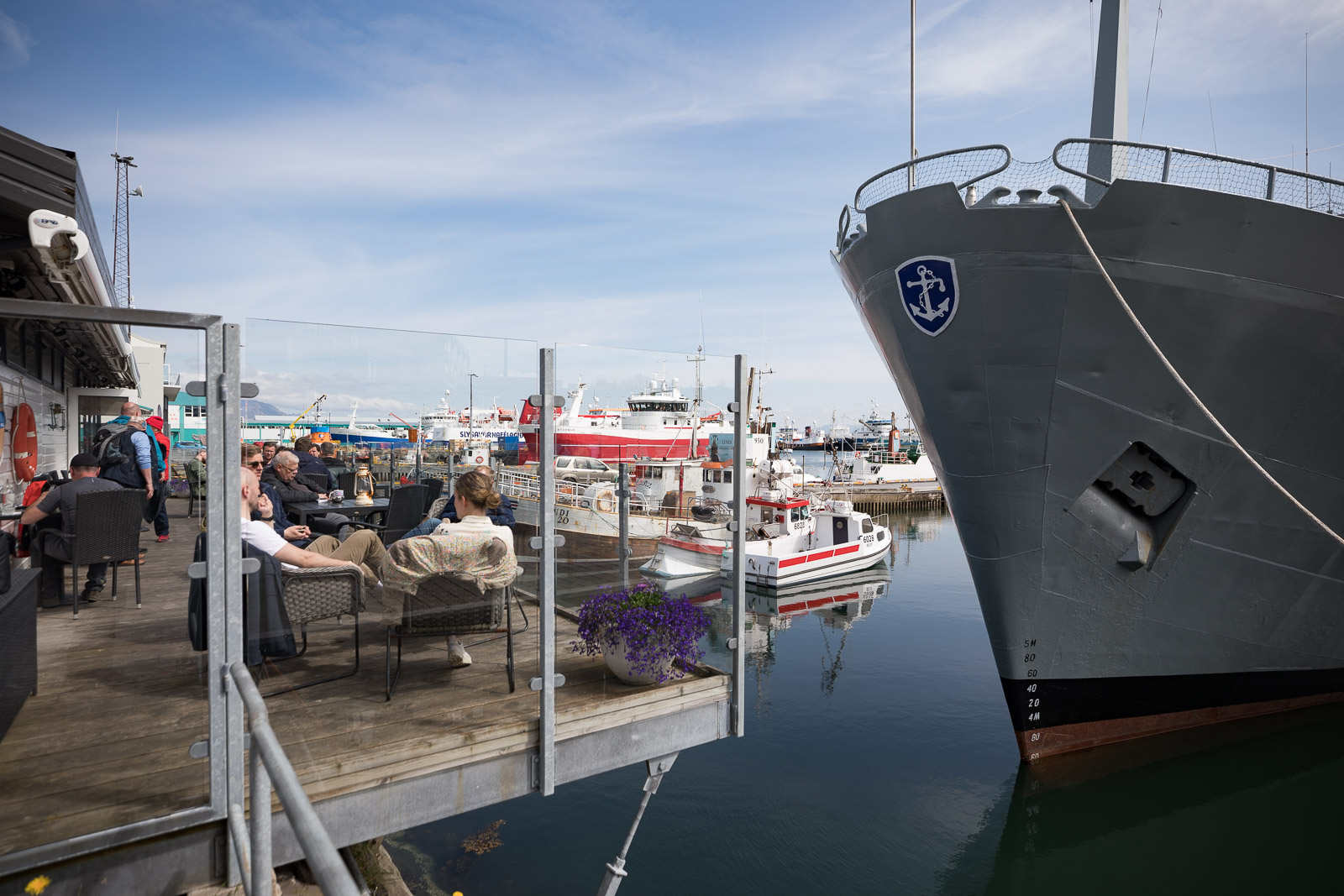 Our morning would start at Kaffivagninn. Opening in 1935, it claims to be Iceland’s oldest restaurant. We haven’t corroborated that fact, but we can attest to it having an epic patio. Clinging to the rocky harbour wall and overlooking the docked boats, Kaffivagninn is the ideal spot to start the day with a strong cup of coffee. Order from their breakfast menu if you get there before 11:00 or jump right into the main menu to enjoy some classic Icelandic staples while breathing in the crisp sea air.