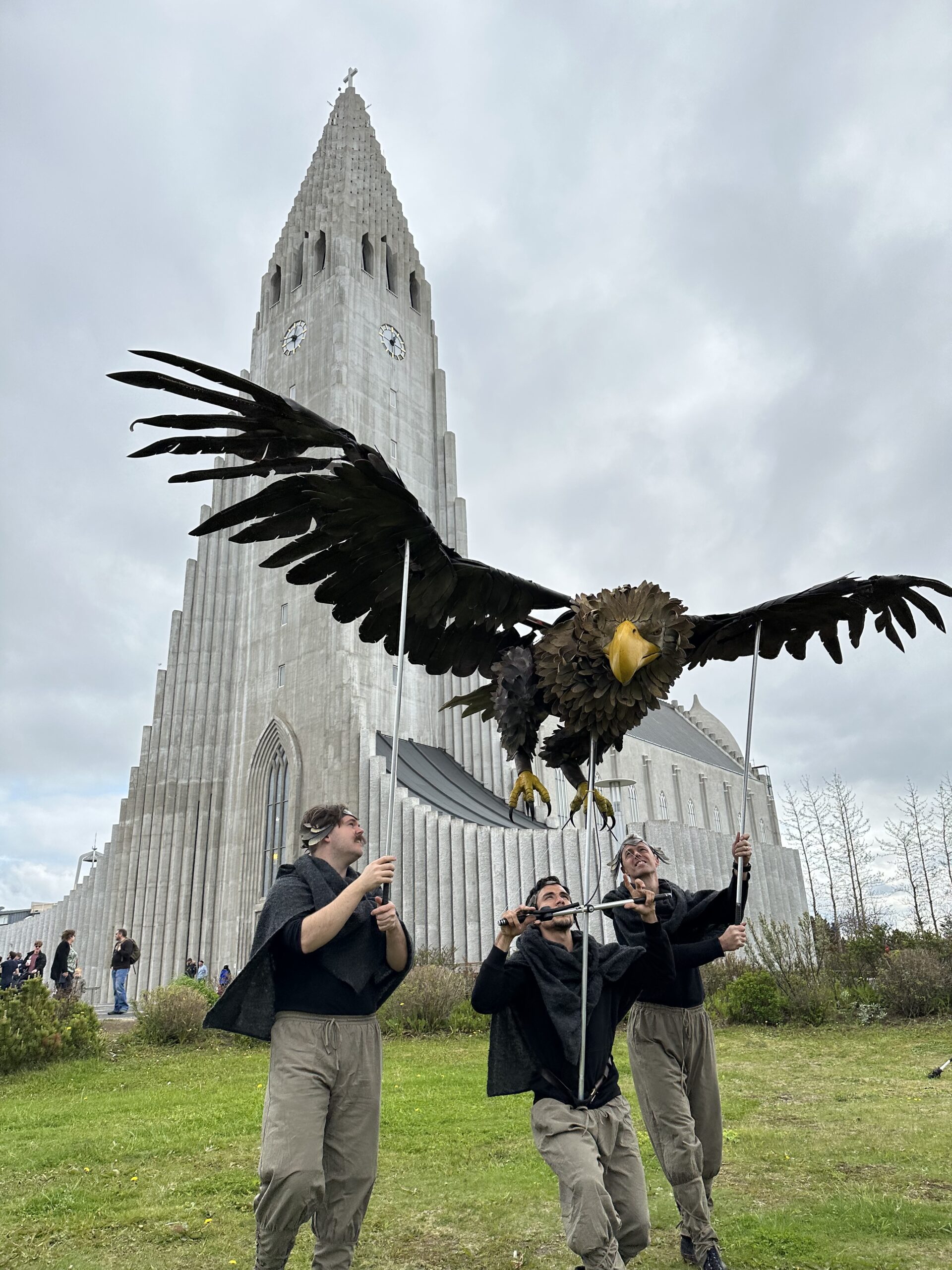 “Reykjavíkurborg came to the circus and asked if we could do something spectacular — and we accepted the challenge,” Björg recalls. “We can be tall because we can do stilts. In that way we can also extend the limits of normal puppetry.” This helped cement what has become the signature of Pilkington Props: large scale puppets.