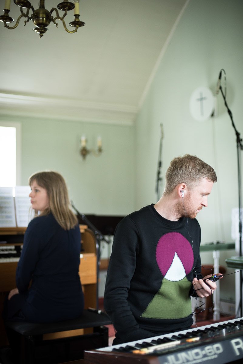 As Dagný and the string players start rehearsing the song, which none of them have heard before, Ólafur tells me that he tries to connect the songs to the location in which he records them. Thus, the song “1995” refers to an avalanche that descended upon Flateyri that year, in which 20 people lost their lives. “‘1995’ is darker than the other songs from the series,” he says, “which is why I immediately connected it to the avalanche and the impact it had on the locals.”