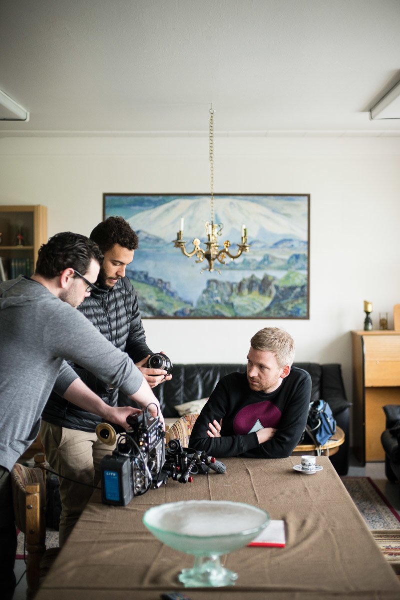 There’s tangible excitement in the air as we take off for Ísafjörður. The weather is beautiful, and as we soar over Reykjavík, the crew exchanges stories from many of their previous projects together.