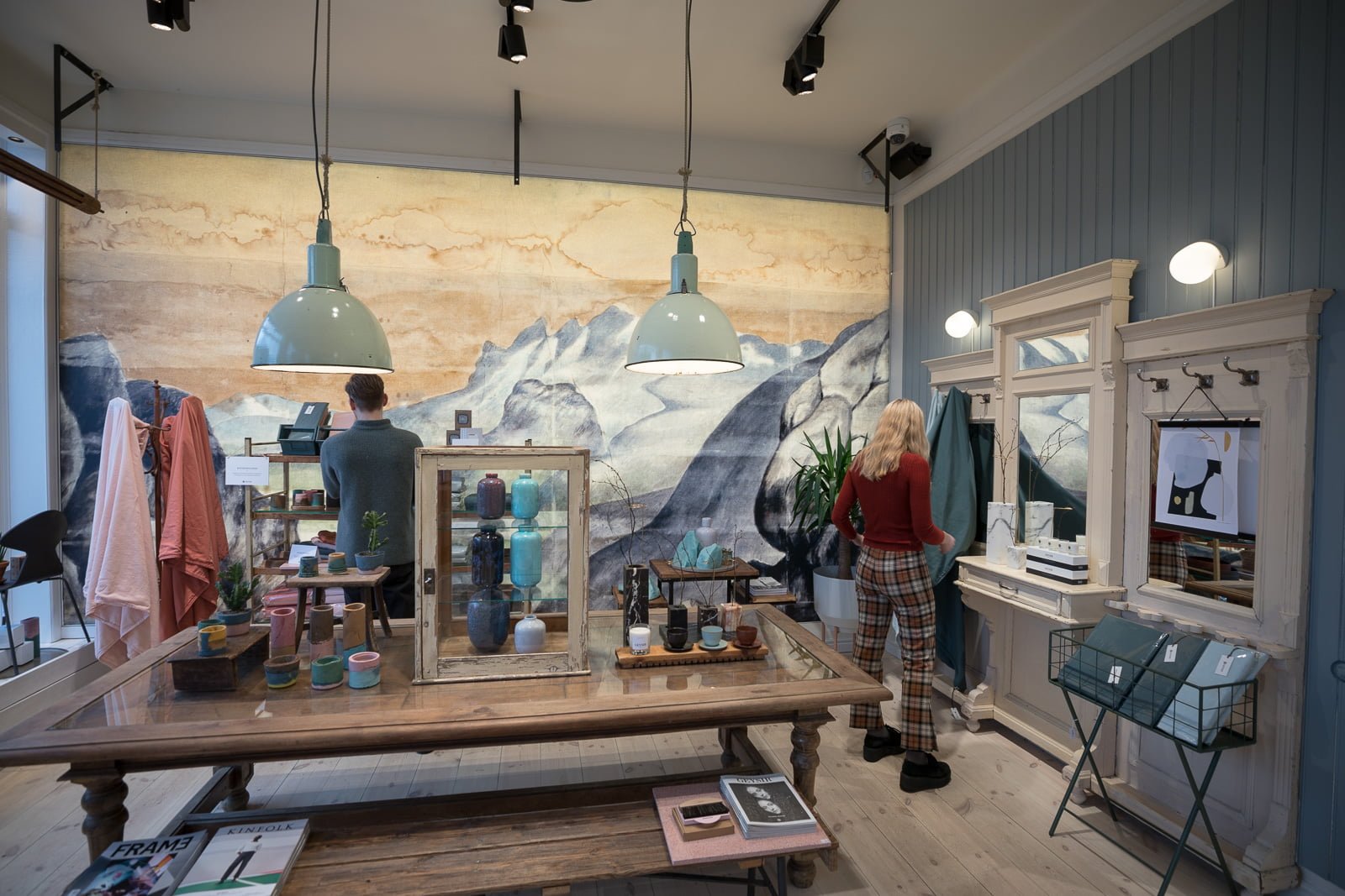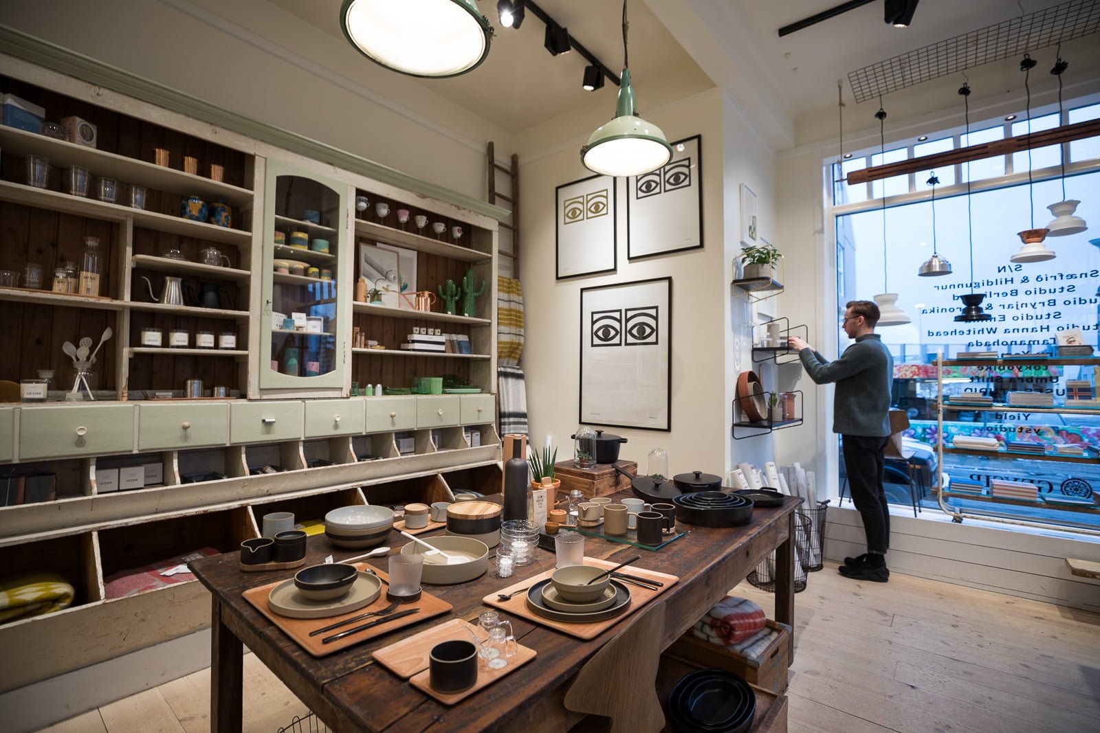 They sell a uniformly desirable selection of geometric furniture, fancy shelving, vases and crockery, wall prints, toiletries, bikes and more. A diverse range of designers are on sale, including Andrée Jardin, Angústúra, Atelier Dottir, Auður Ómarsdóttir, Hasami Porcelain, Korkimon, Minimum Design, Usee, WDLND, Yield and ystudio. There’s also an art gallery on the basement floor.