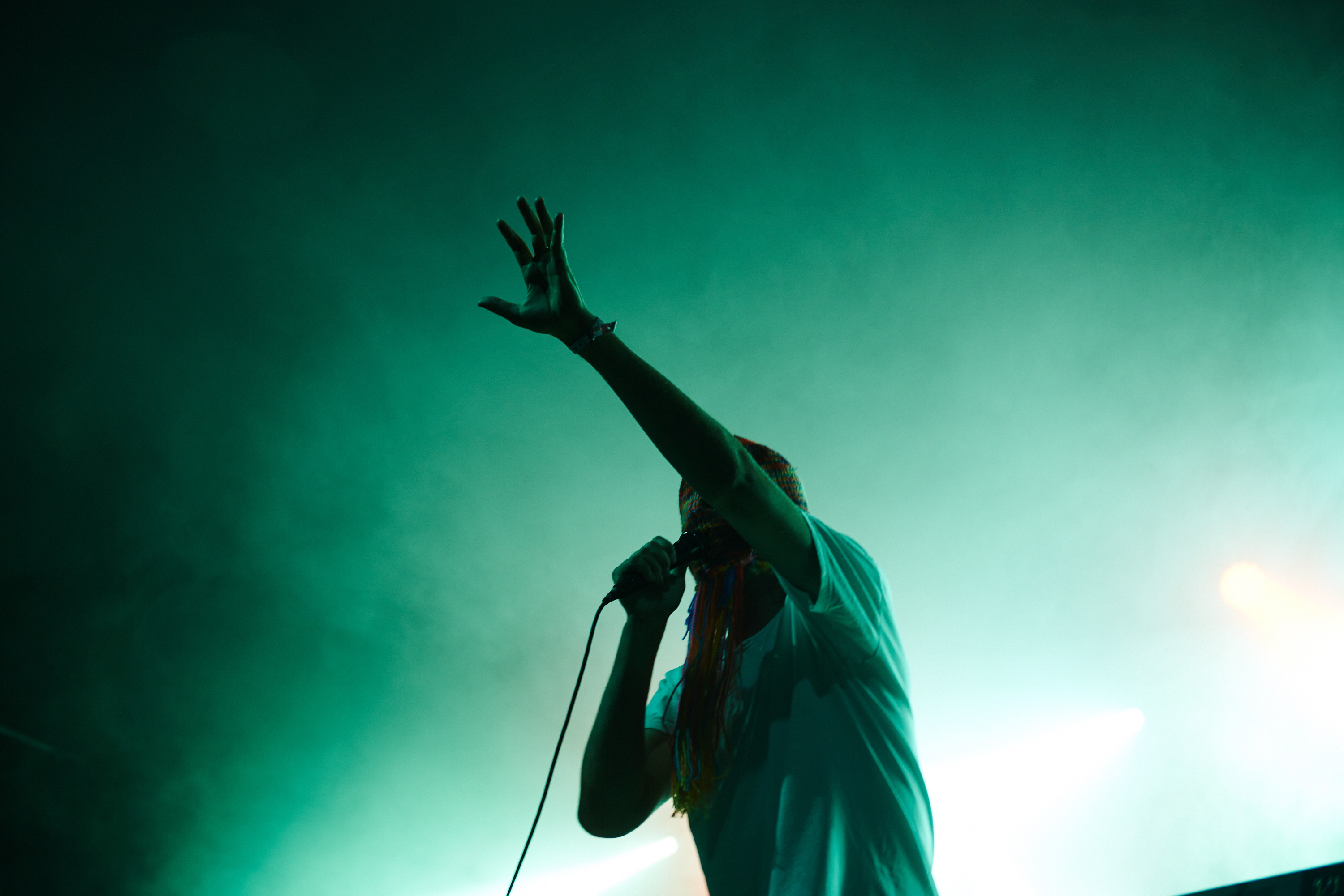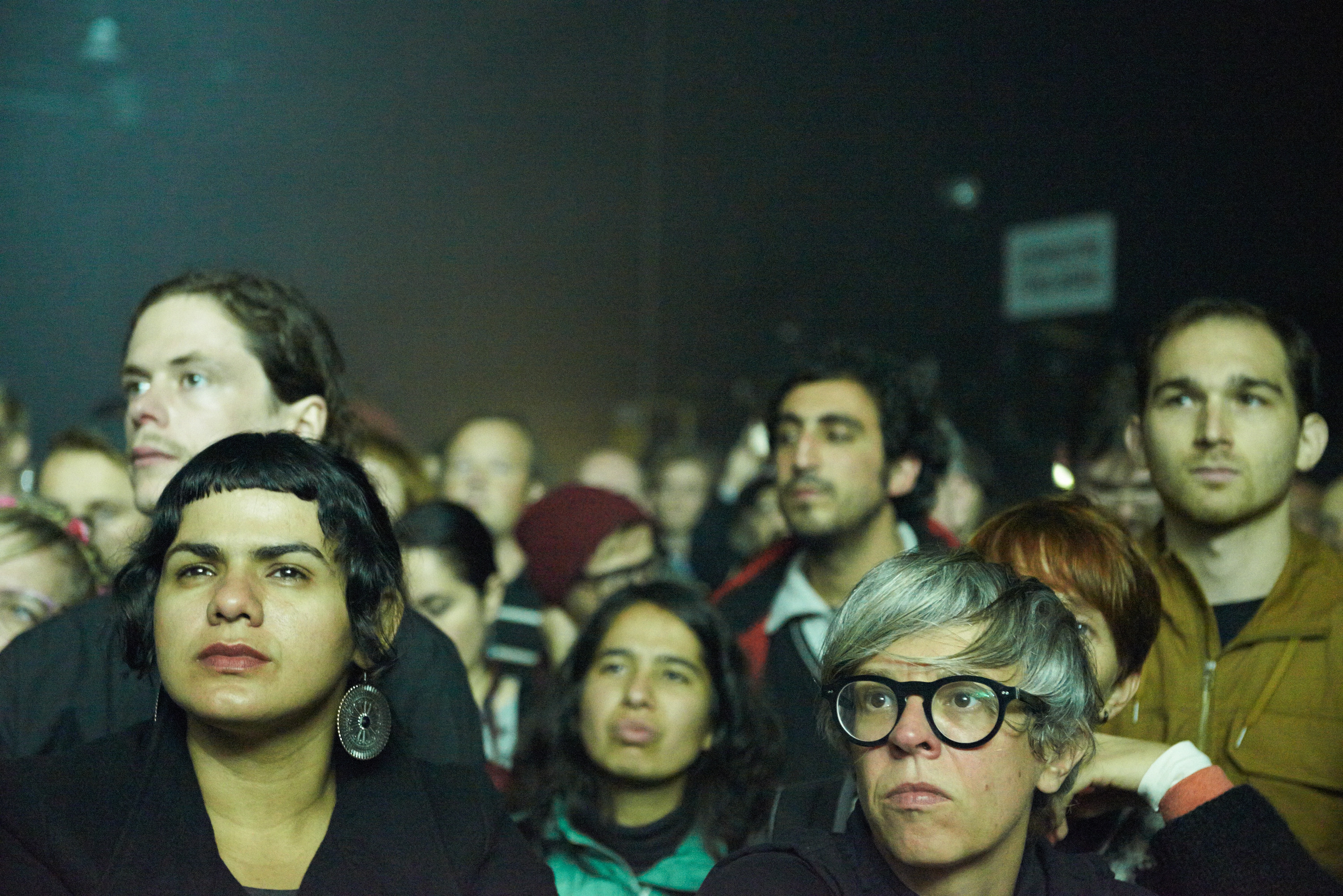 Hebronix at the Andrews Theater was our wild card choice as we had never heard of the band and their music. Although Liam didn’t think that much of it, i rather enjoyed their musical fare. It was very much in the tradition of classic US freak folk from a decade ago (Think Jandek, but with actual melodies!). The singer’s voice was the melodic rock on which low bass notes, guitar drones and double bass slaps, bangs and squeals surrounded themselves. We consoled ourselves with hip flasks of spirits in the dark.