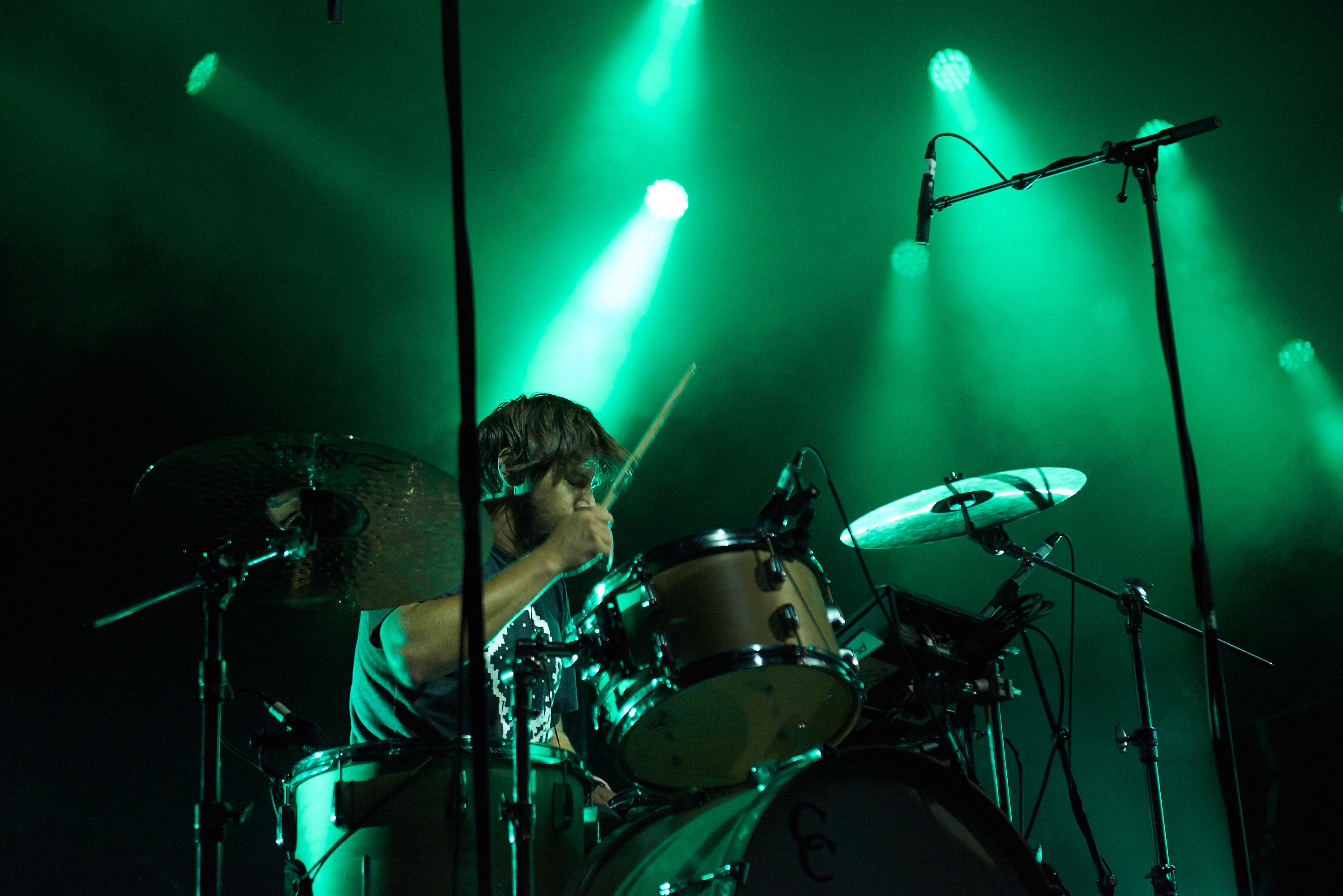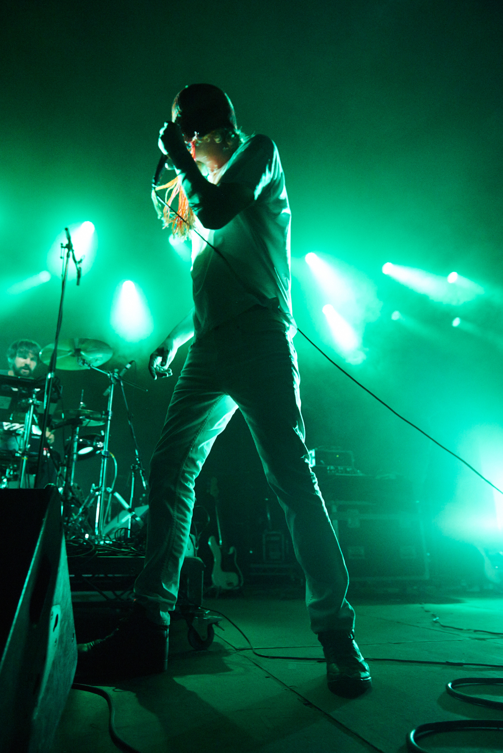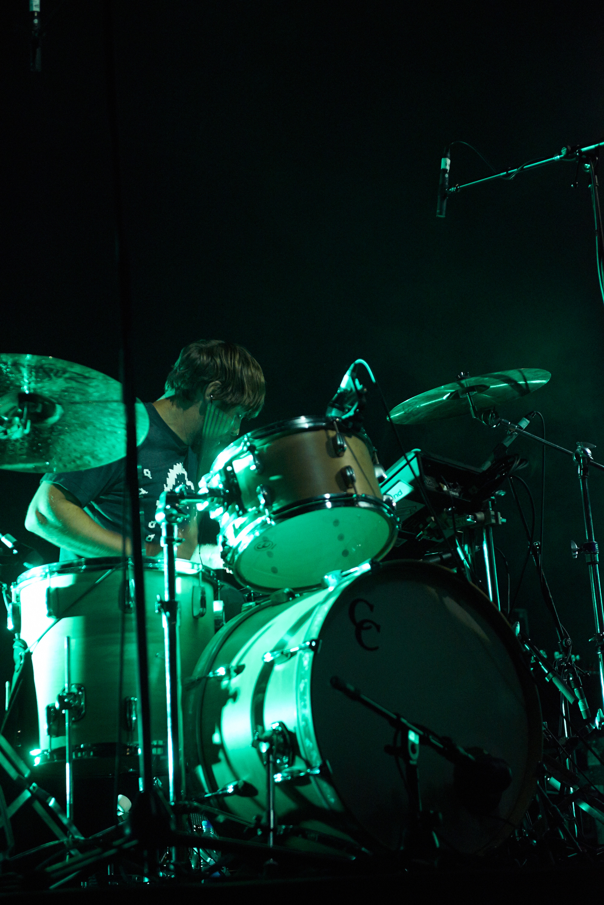 Ben Frost kicked off the evening with his usual heaving blocks of abstract electronic noise. Helped with two drummers, i dare say Ben looked so much the part of your typical rock star with his lovely hair, black vest and low-slung guitar. He played a set that was pretty much taken from ‘A U R O R A,’ and it was a case of music you could feel as well as hear. It all got a bit too much for one punter who had made the “wise” decision to down a half bottle of vodka and then completely lose his shit by starting a one man mosh pit, until another audience member picked him up and threw him out.