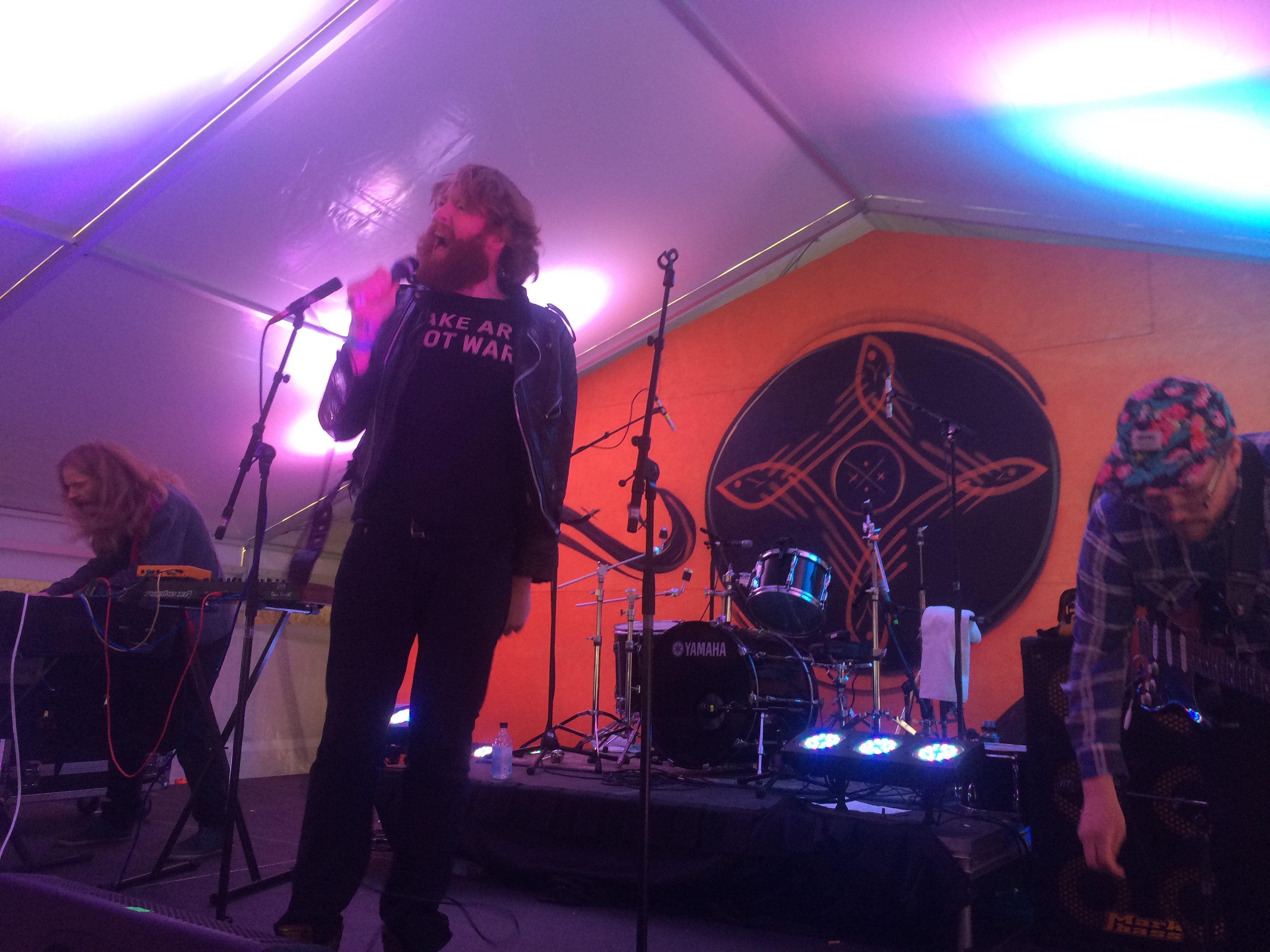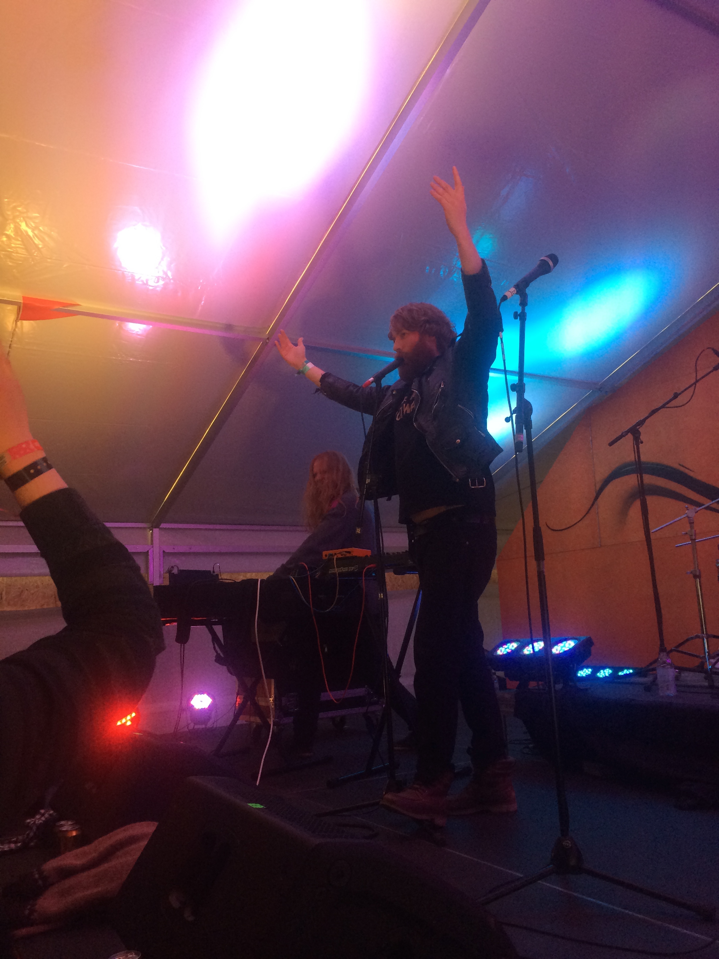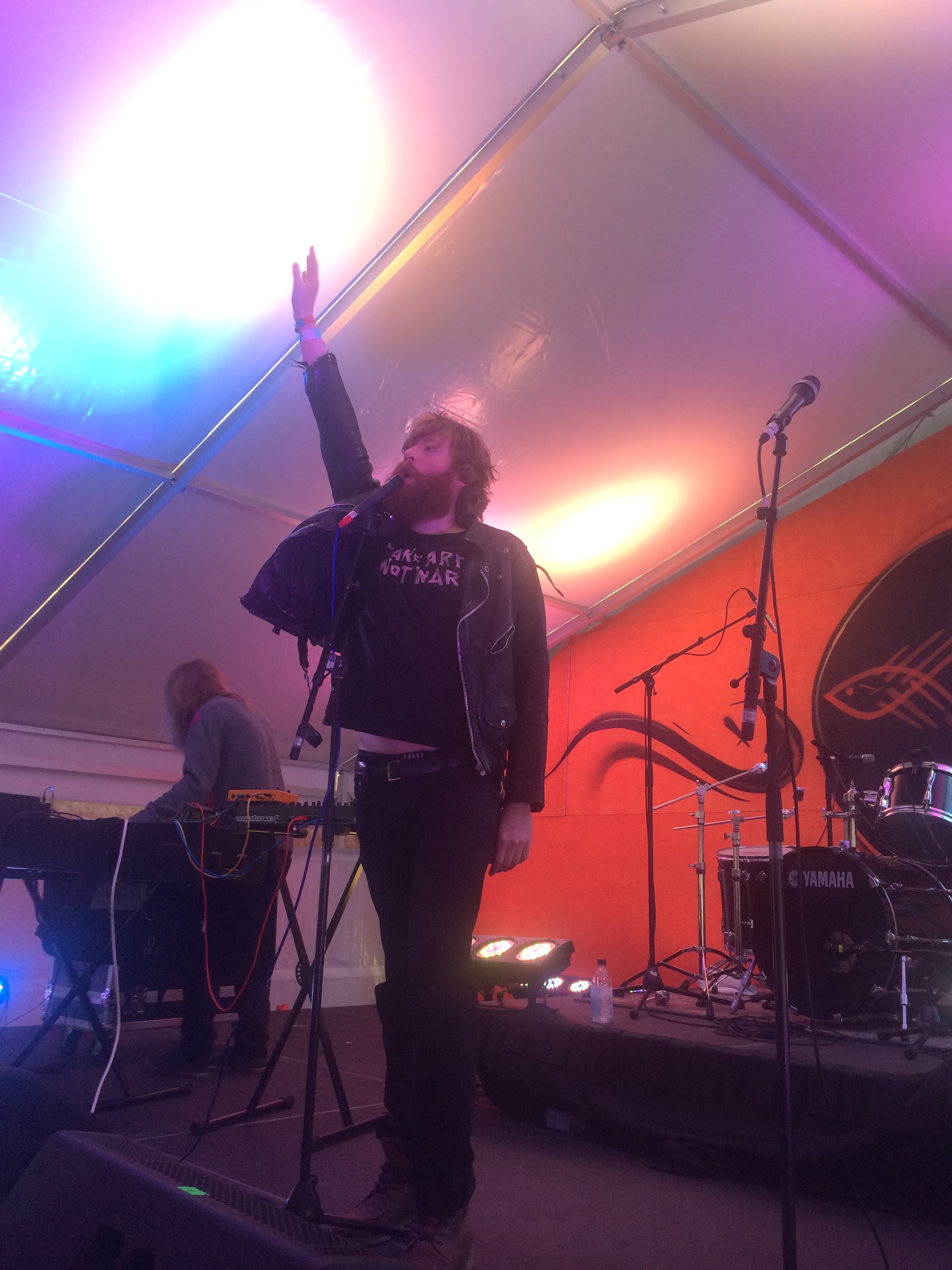 I next headed over to Ragnarök tent to catch Berndsen and dj. flugvél og geimskip back-to-back. I was pleasantly surprised by Berndsen, a burly, beardy red-headed man in black leather and a “FAKE ART NOT WAR” t-shirt, who makes music that’s nothing like what he looks like. In this cosy tent, I got an hour of cheesy, unabashed, ’80s-inspired pop from the three grown men that make up Berndsen. But it wasn’t about Berndsen’s music so much as his performance, jazz-fingers-ing and melodramatic arm-flailing, jumping into the crowd at one point and taking off his shirt at the end of the show in a dramatic display of body positivity.