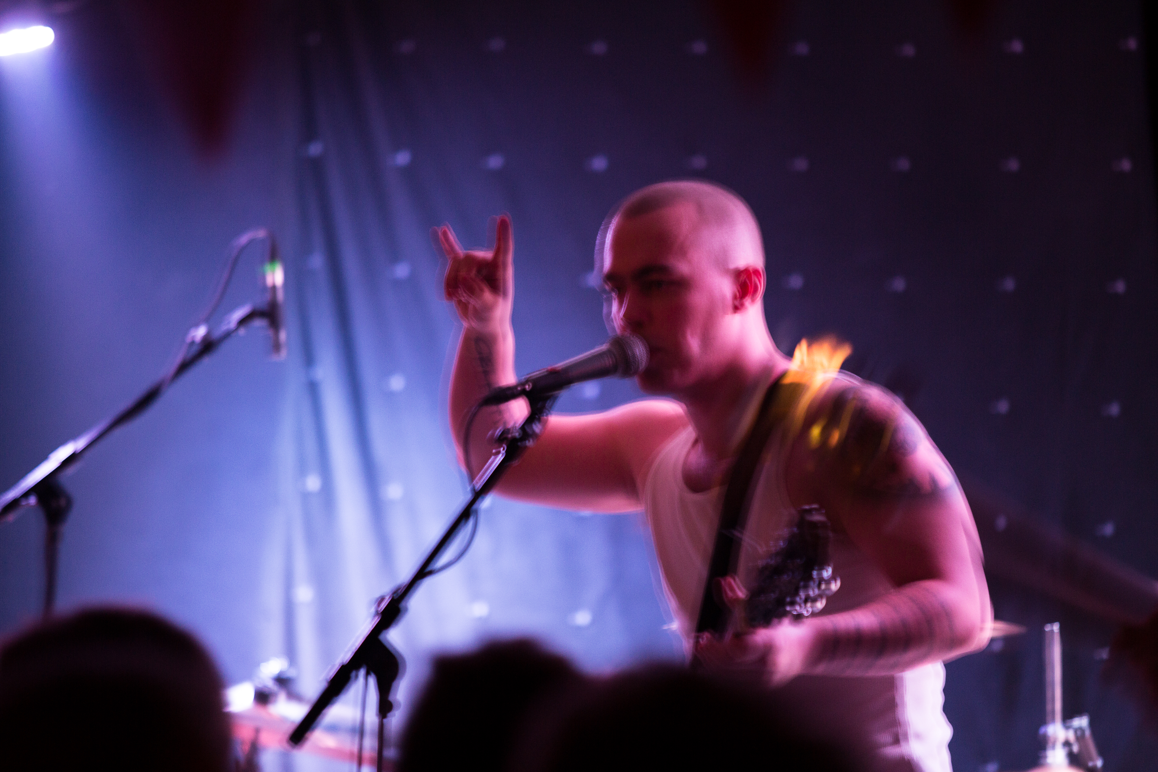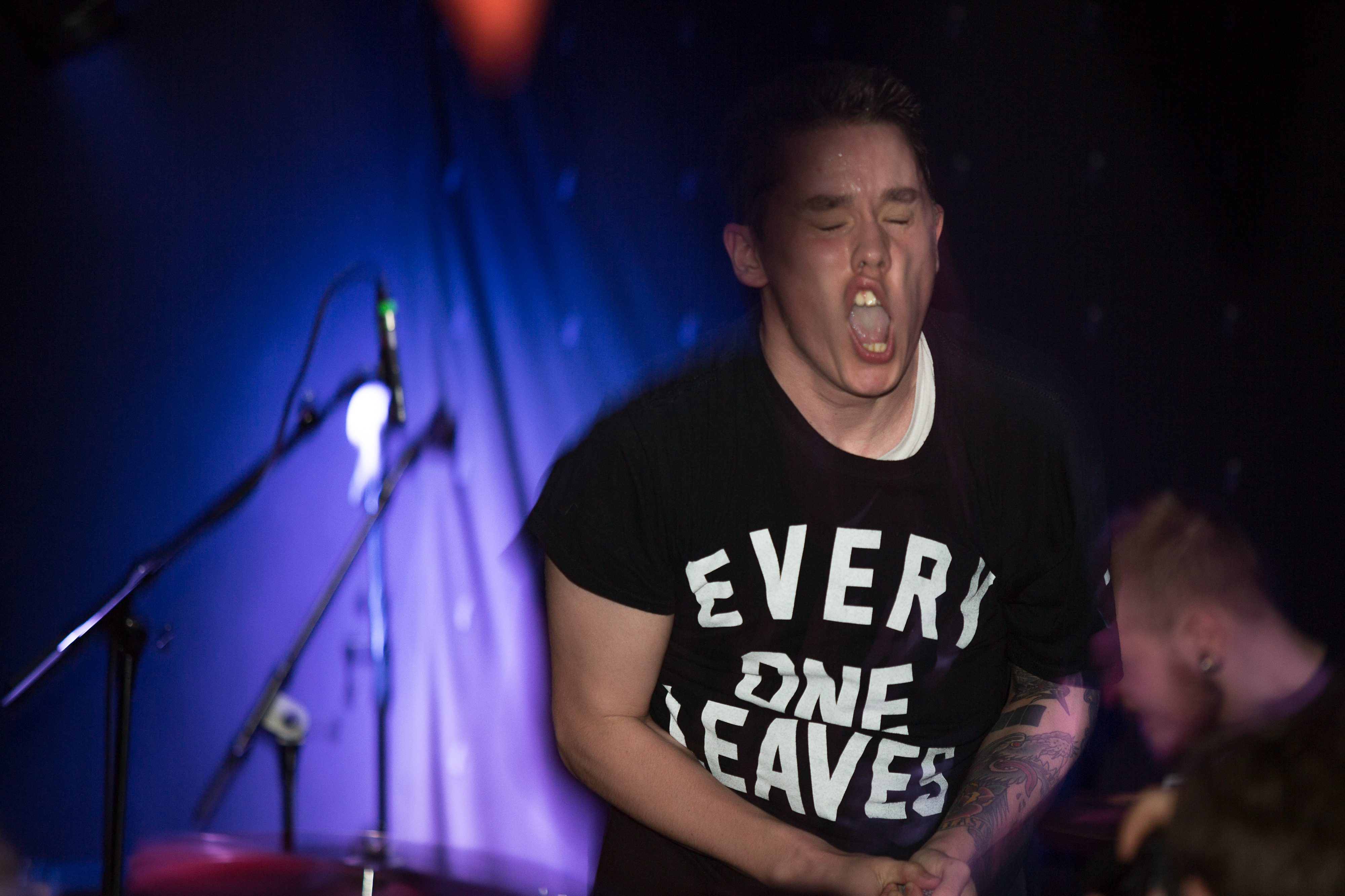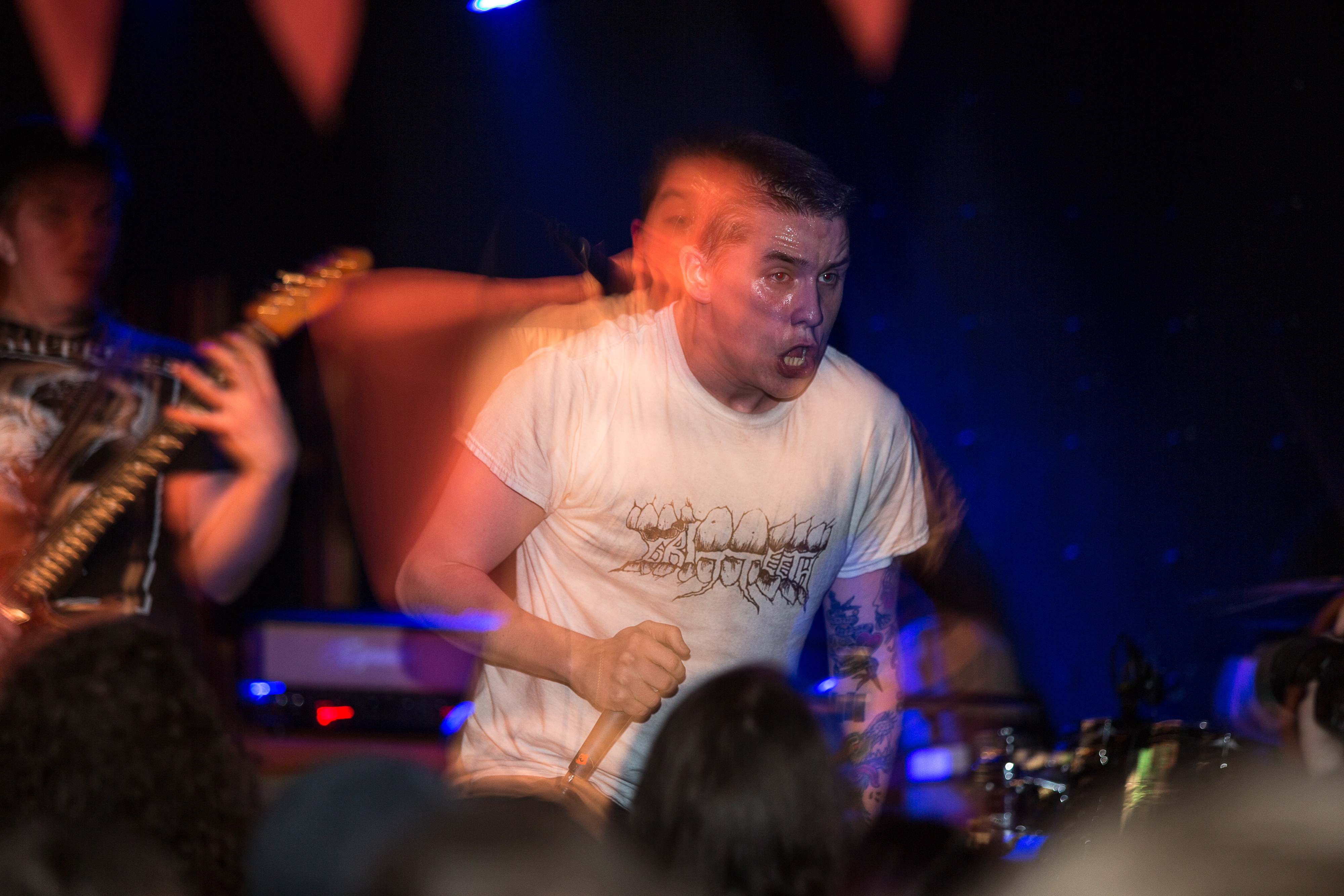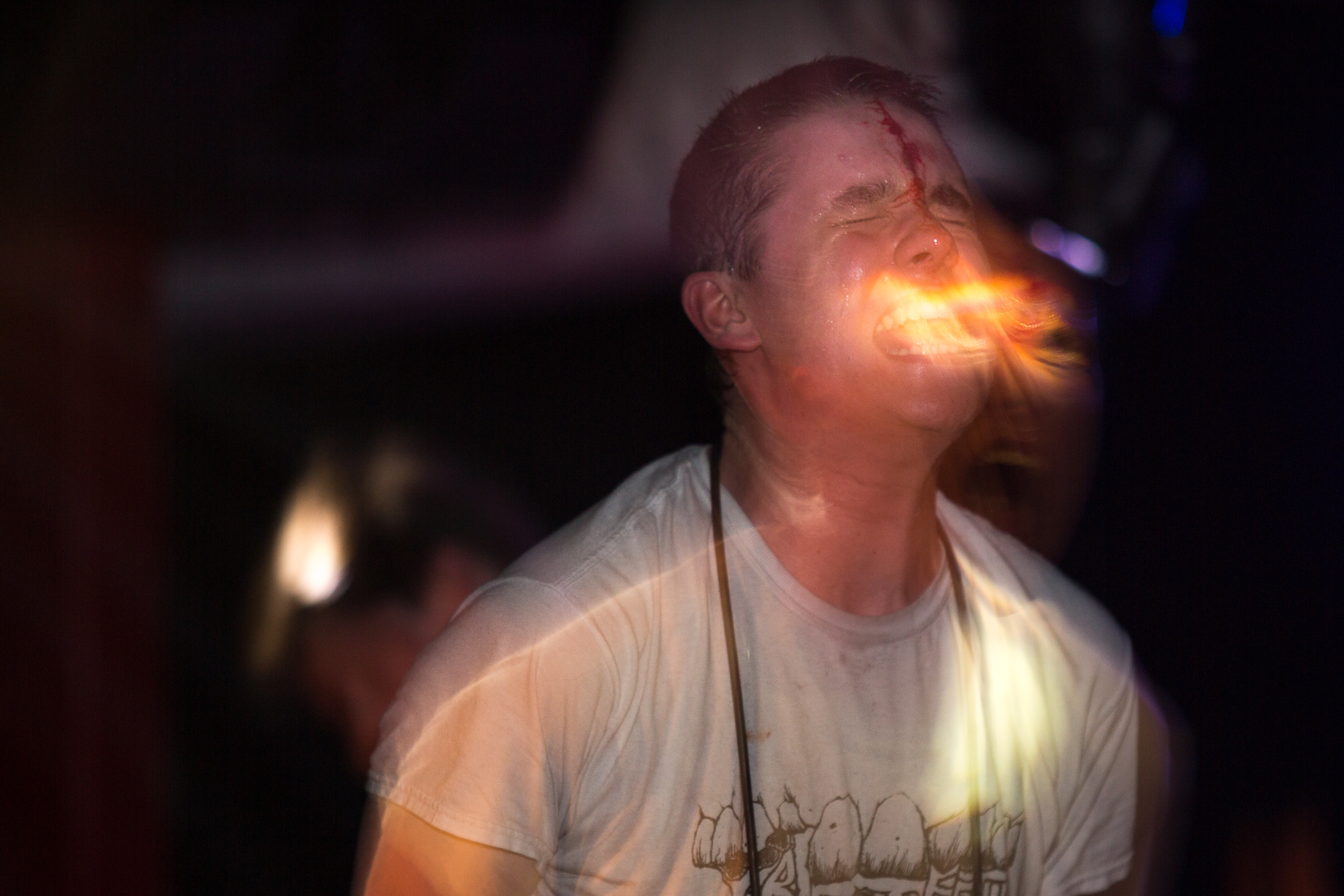 Grit Teeth start playing a few minutes after they said they would, and get a mosh pit started from the very first song, with the singer saying at one point: “if nobody gets knocked out in this mosh pit, I’ll be disappointed.” They earn their applause with dynamic guitar riffs and heaps of volatile energy. And they tell the police to fuck themselves. For me, however, the show is eerily reminiscent of the one they put on last week with ITCOM. Also, I get a lot of beer spilled on me. Oh well, rock on.