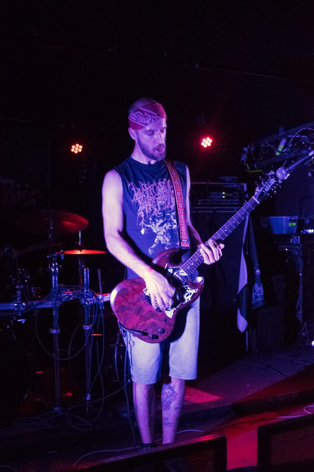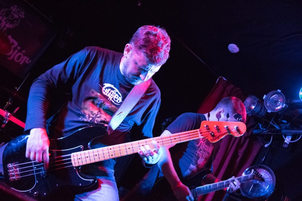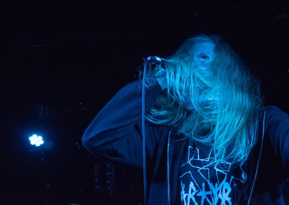 I leave to get some fresh air and when I come back inside, I am hit by a wall of sound. I’m surprised to see only two people on stage—it’s the the French duo WarFuck. Both the drummer and guitarist have energetic stage presences that make the grindcore-inspired performance enjoyable, even though the sound is very mushy and the vocals monotonous.
