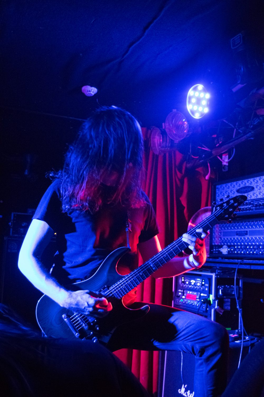 I feel breathless and take a moment outside to enjoy the fresh Icelandic air. The American band MALIGNANCY have already started playing when I return, and by now, Gaukurinn is packed. I’m punched in the face by their progressive, complex, and yet perfectly delivered guitar riffs. When I see the bassist, I catch myself staring. His fingers are flying over his six-string bass as if it was the most natural thing in the world.